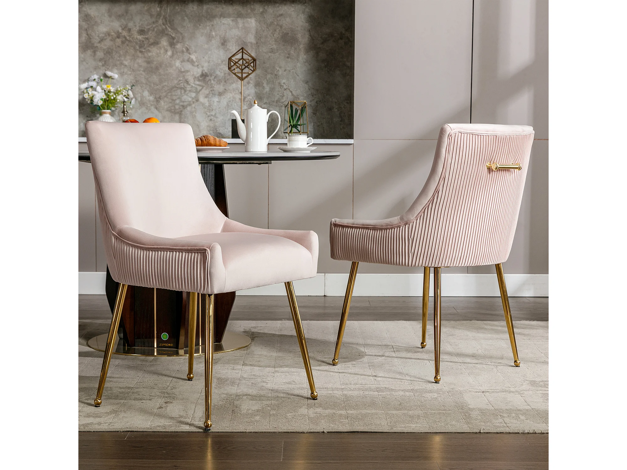 Komplet 6 krzeseł welurowych - 86 x 57 x 54 cm - fotel tapicerowany - nogi metalowe srebrne z uchwytem - różowy