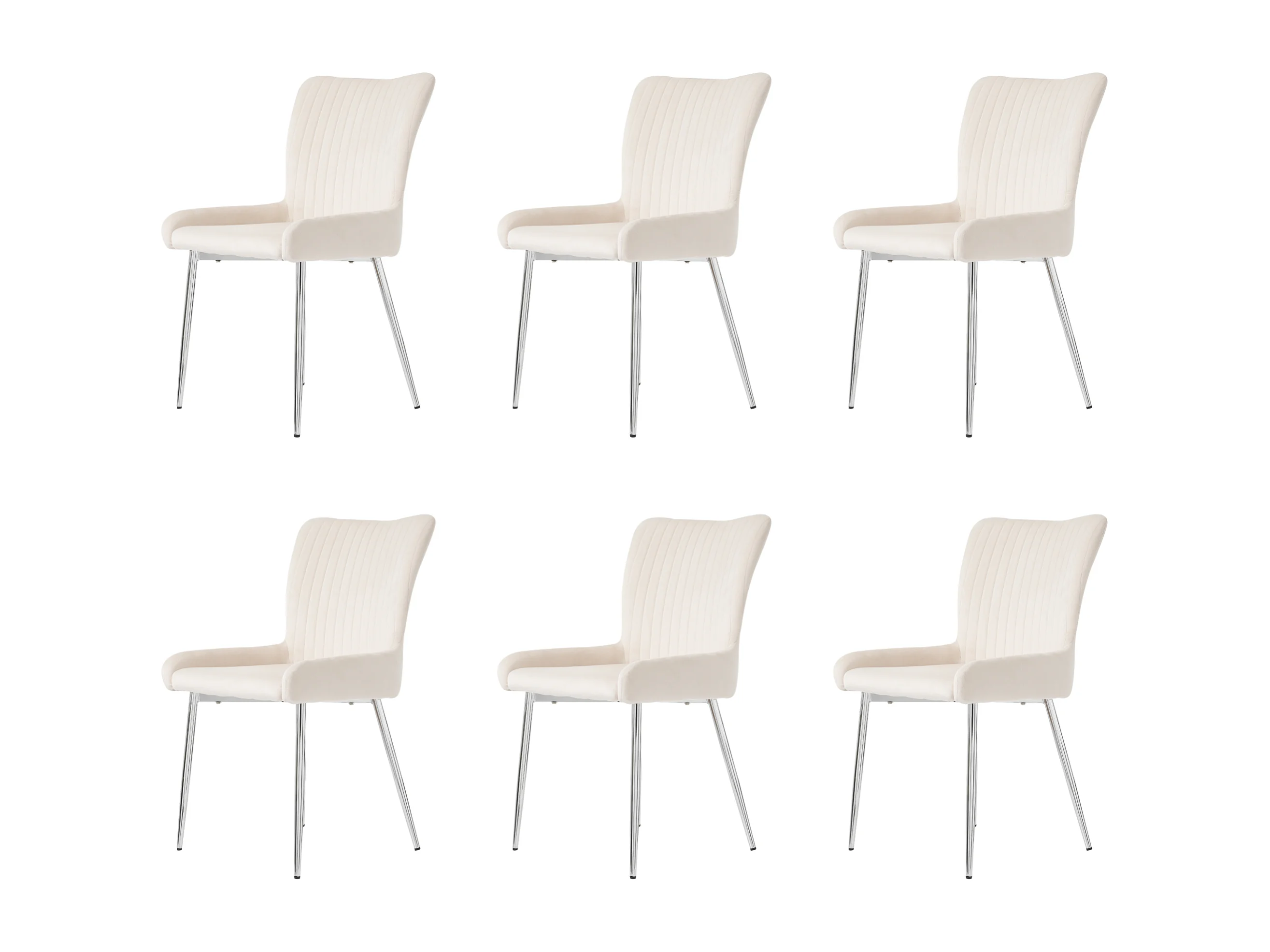Komplet 6 krzeseł welurowych - 85 x 58 x 47 cm - luksusowy fotel wypoczynkowy - cztery srebrne metalowe nogi - beżowy