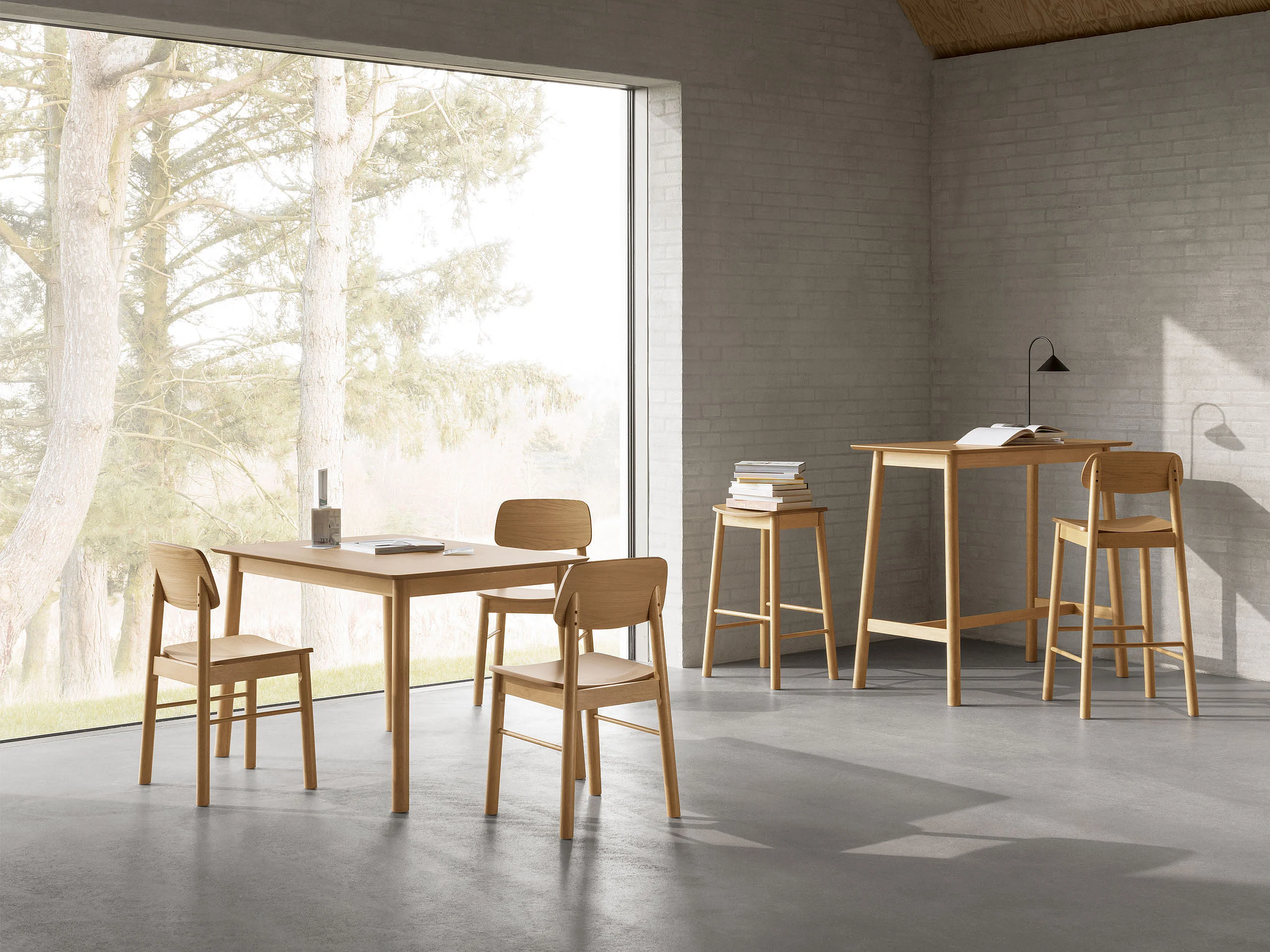 Zestaw jadalniany Lumo – stół okrągły z 4 krzesłami, kolor dębowy lakierowany