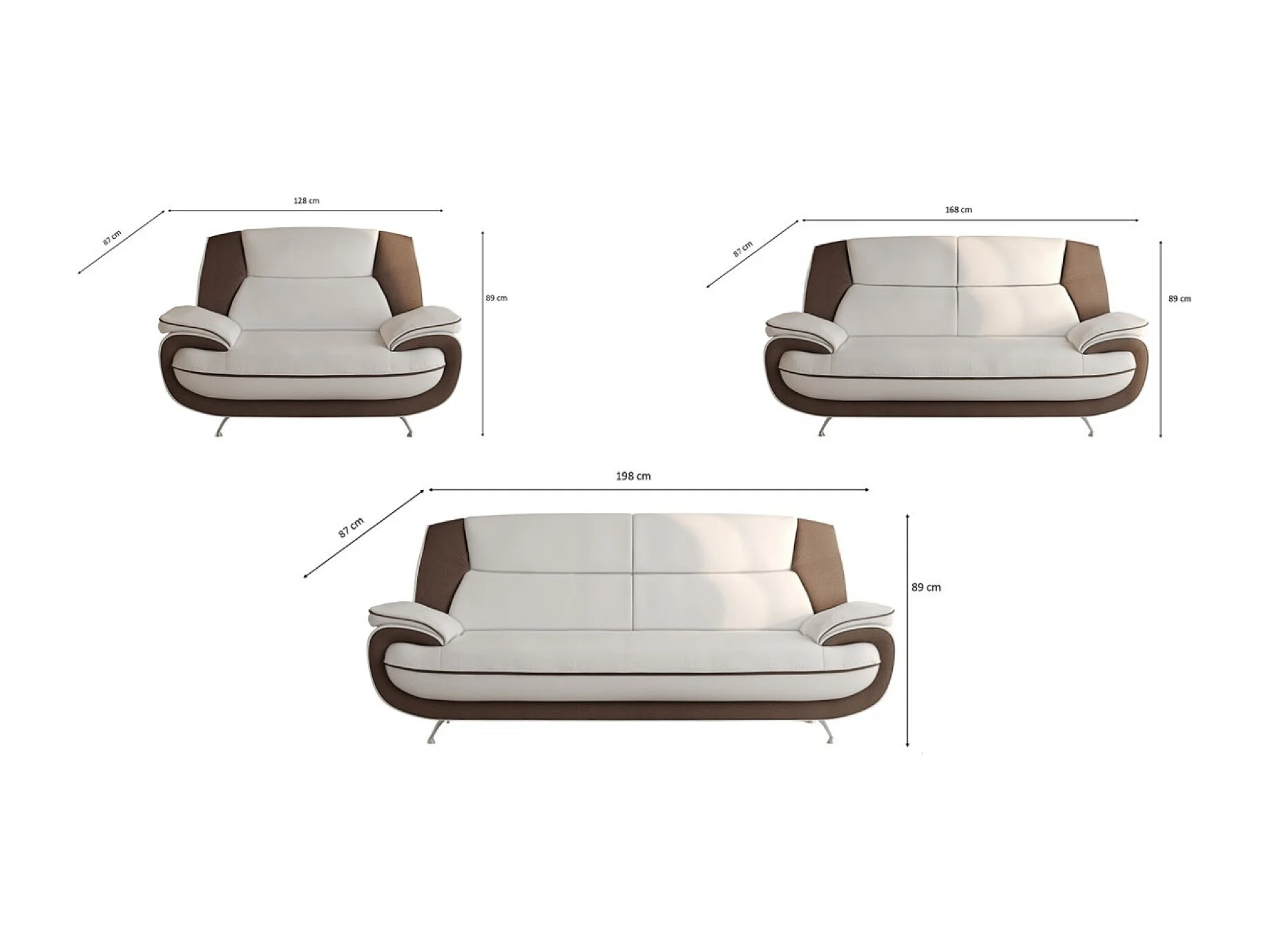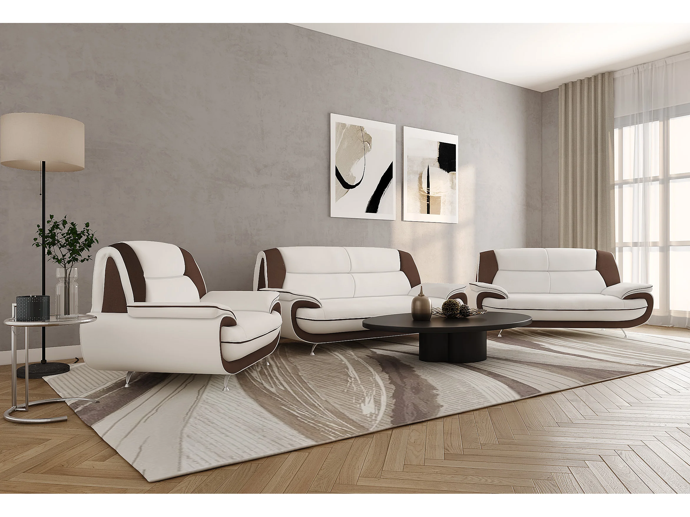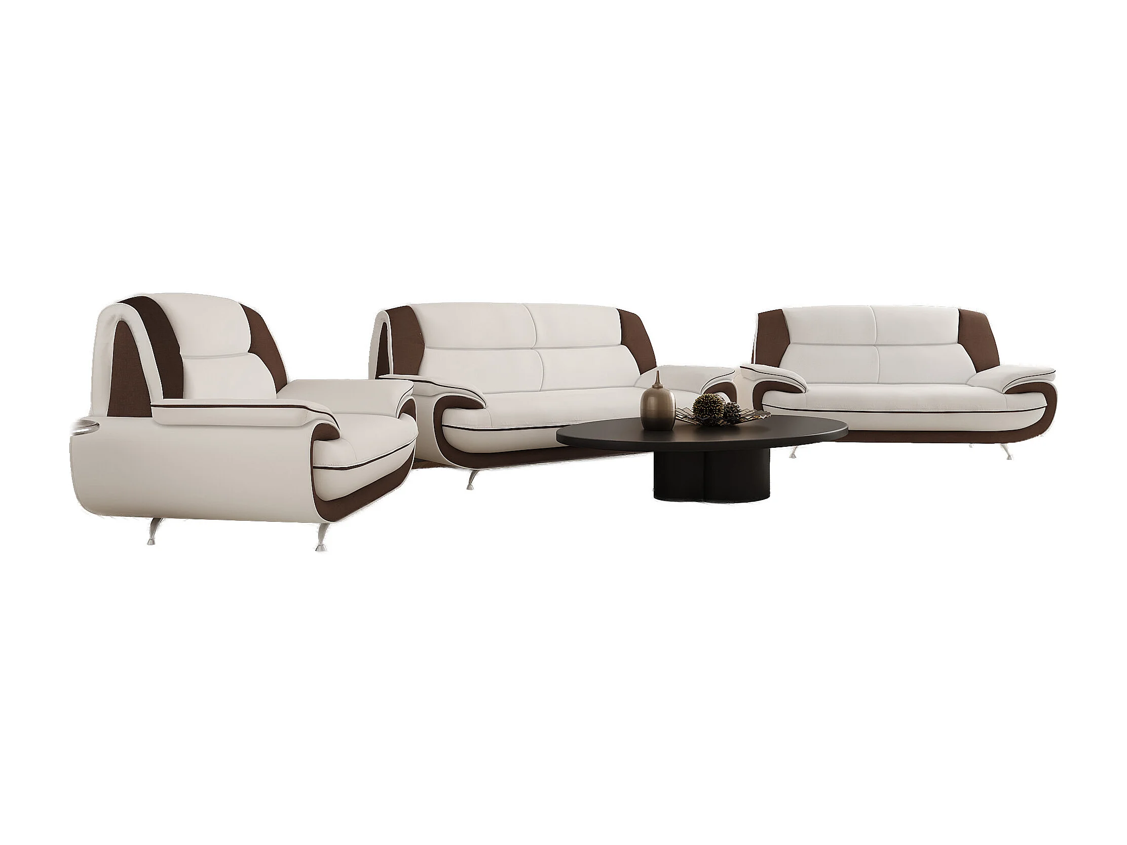 Komplet wypoczynkowy 3+2+1, tkanina Kronos, biało-brązowy, Palermo
