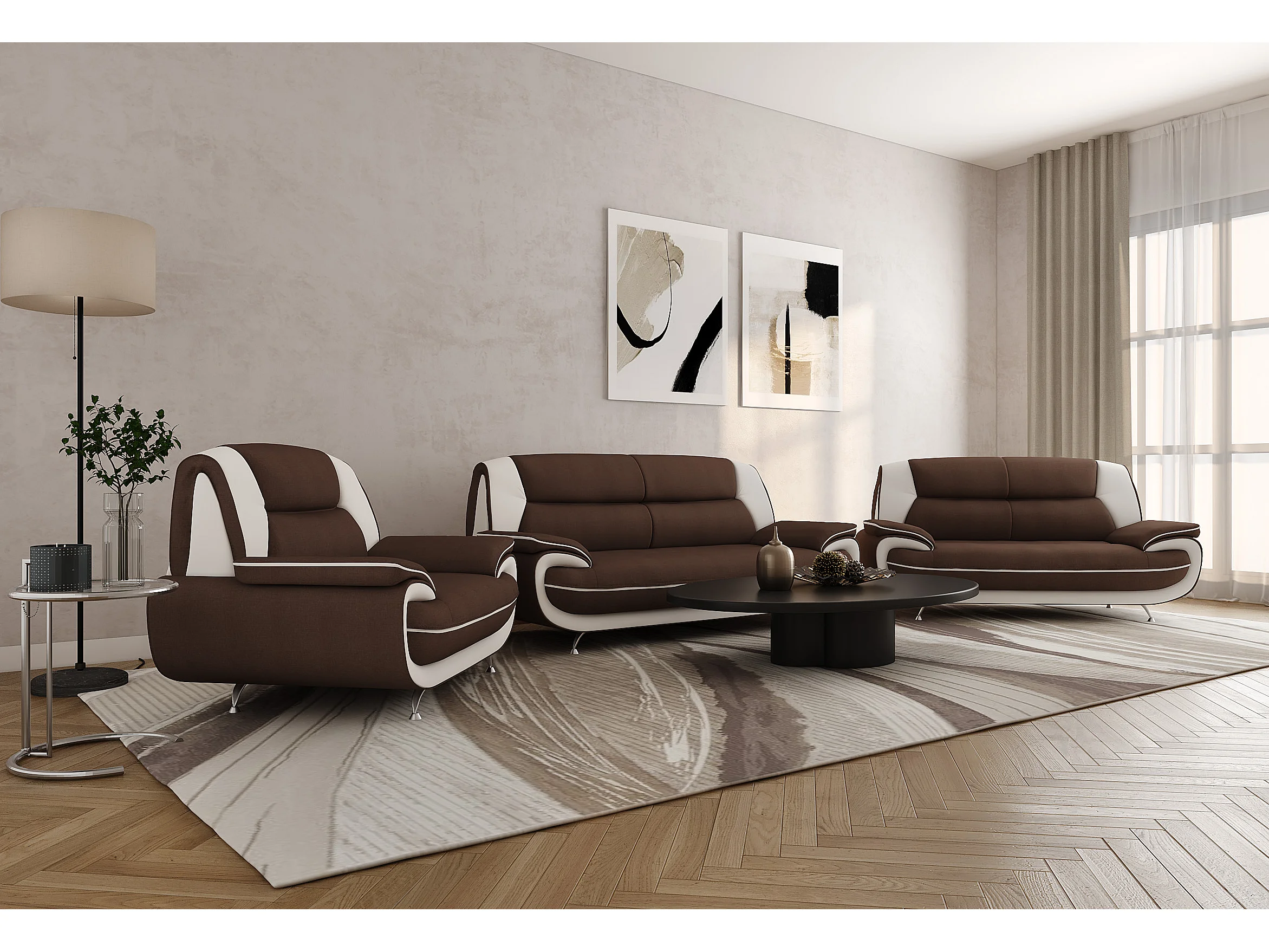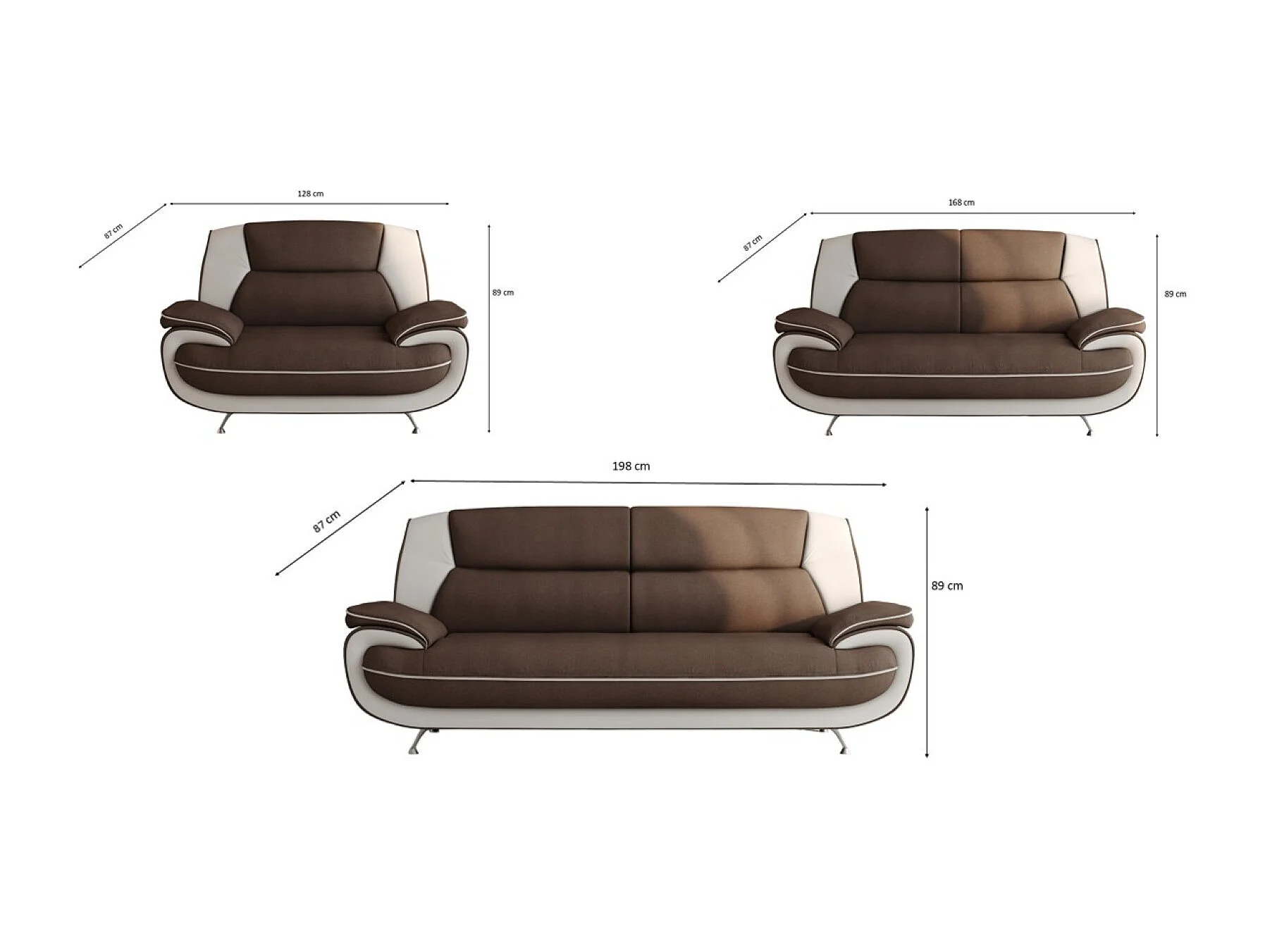 Komplet wypoczynkowy 3+2+1, tkanina Kronos, brązowo-biały, Palermo