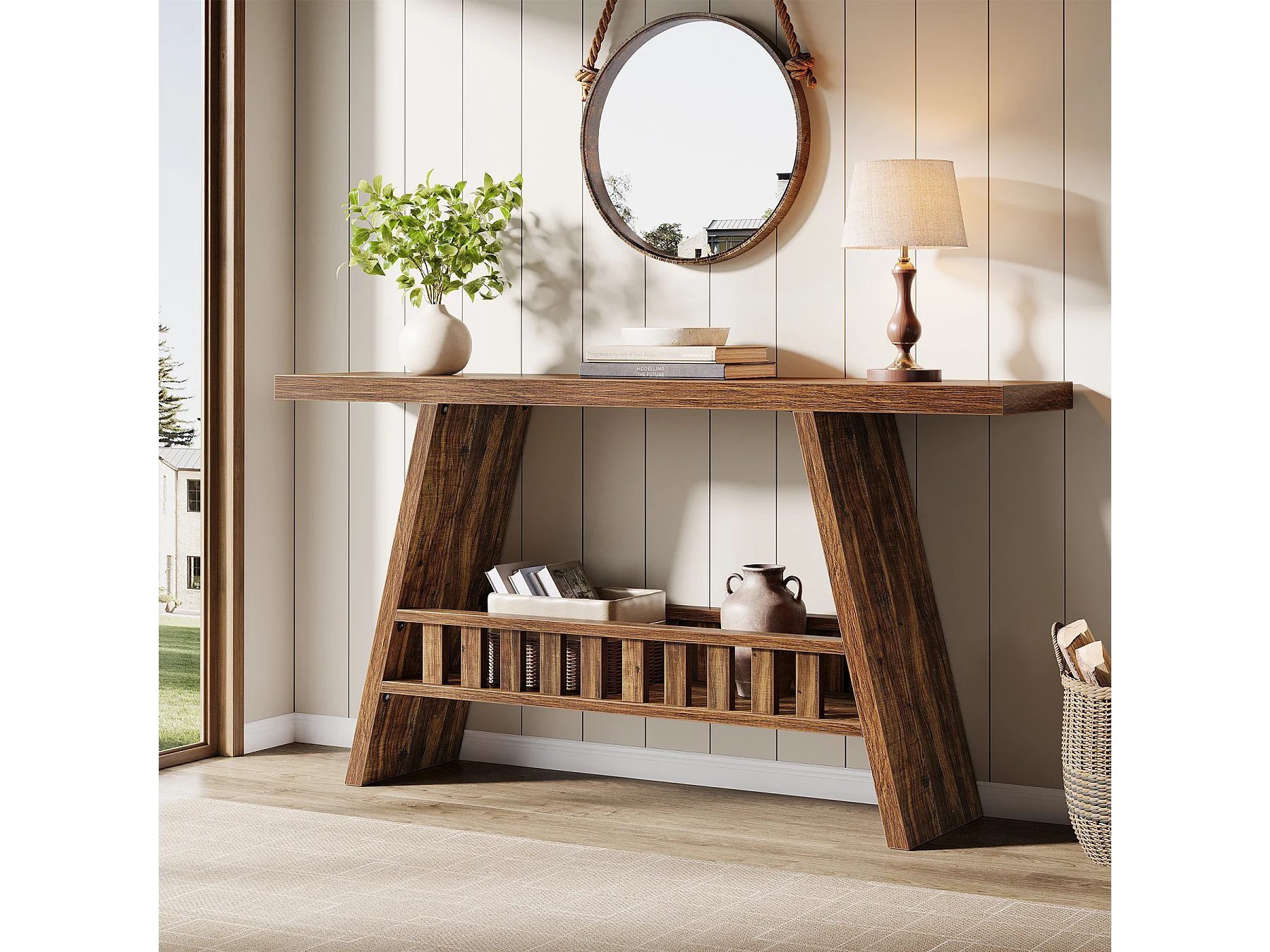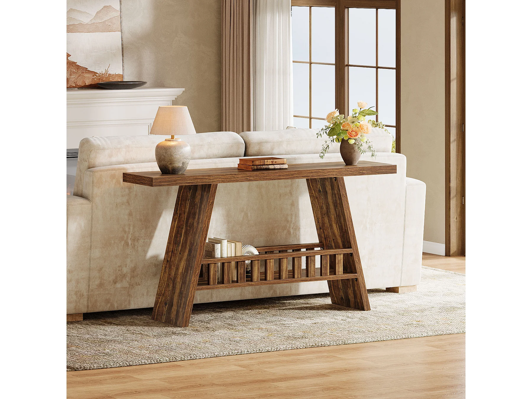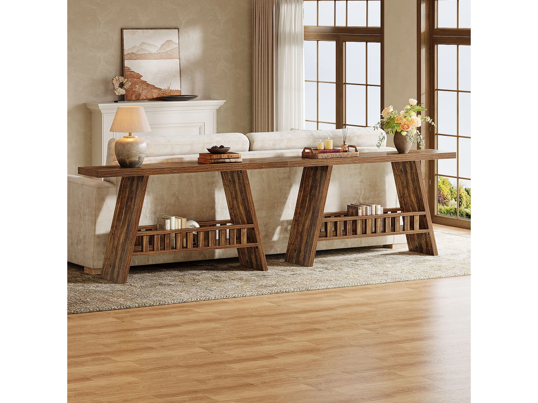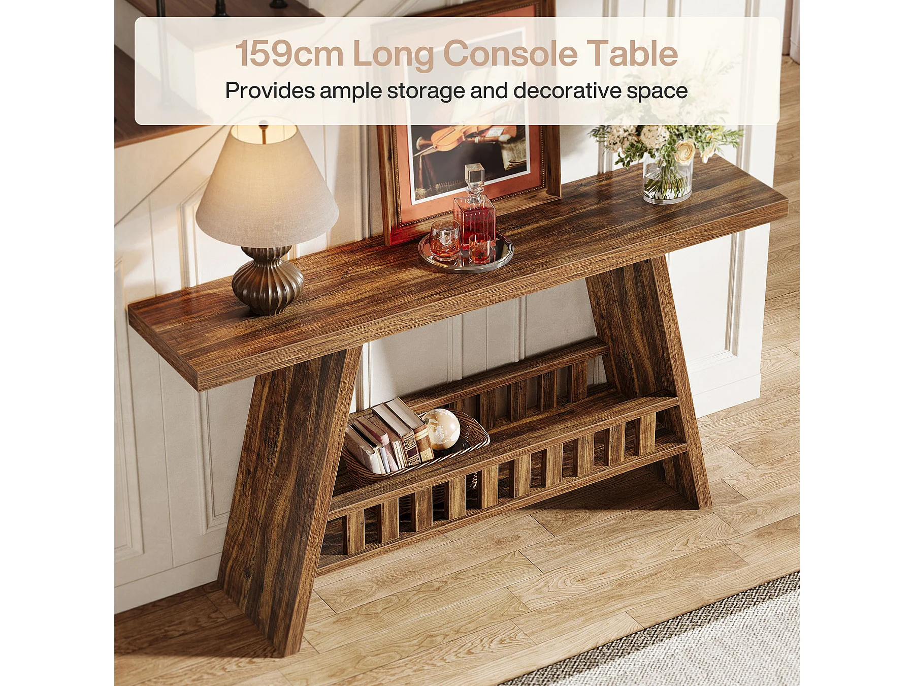 Konsola w stylu rustykalnym, 160 cm rustykalny stolik kawowy ze schowkiem, stolik w stylu industrialnym do przedpokoju