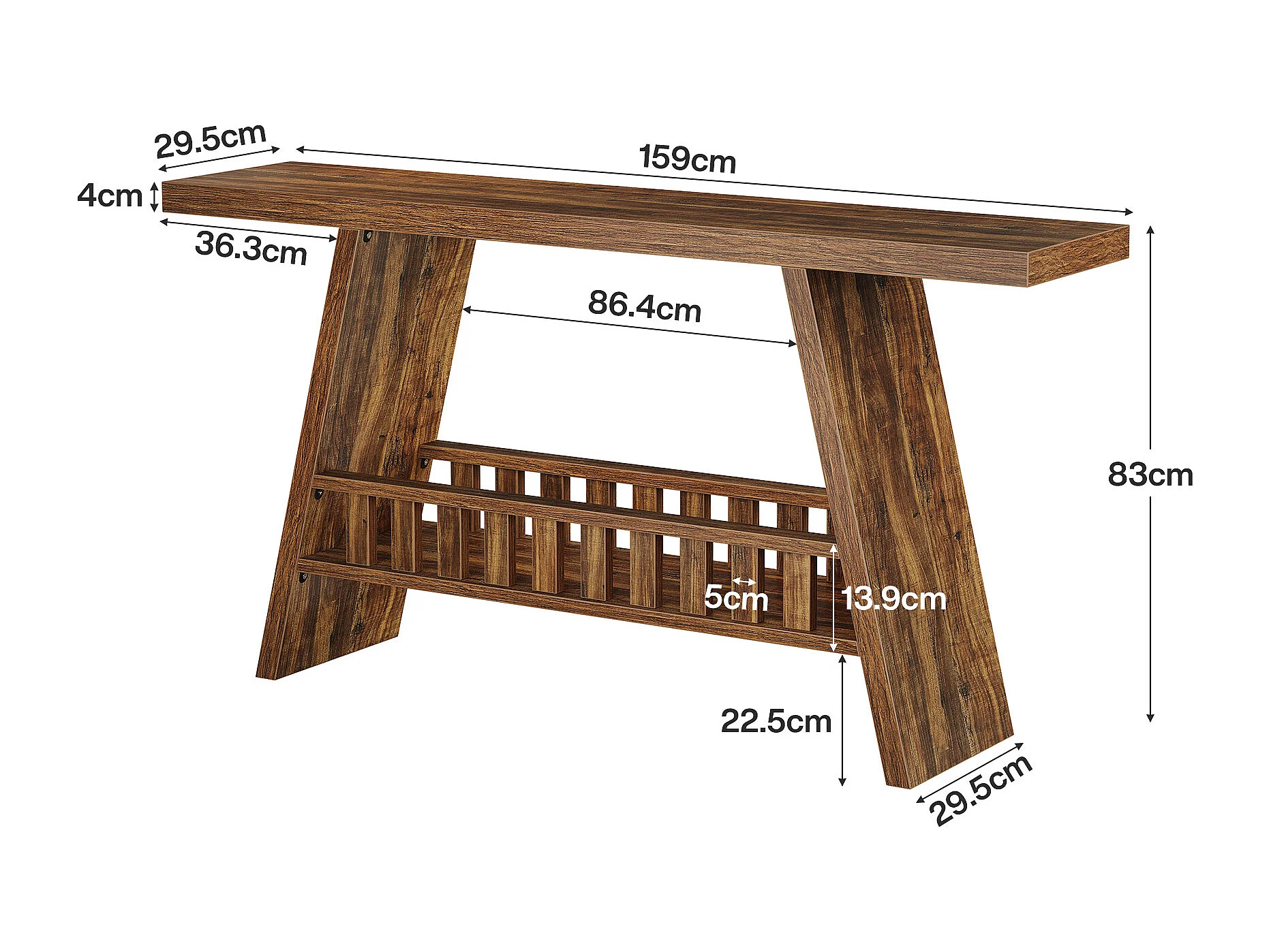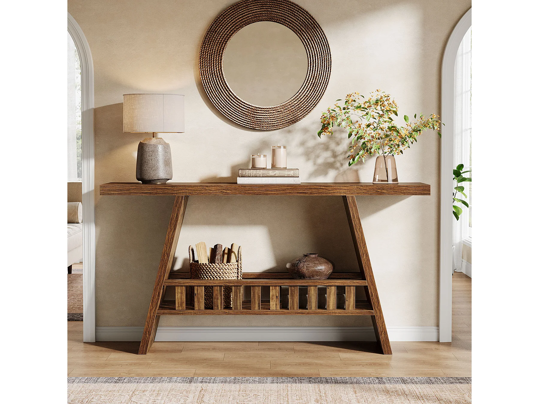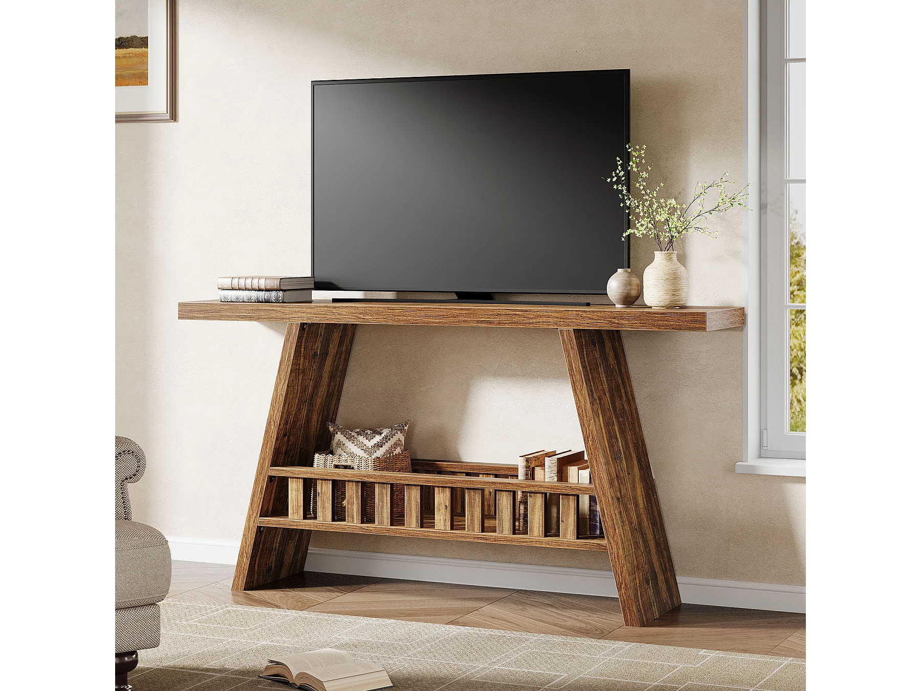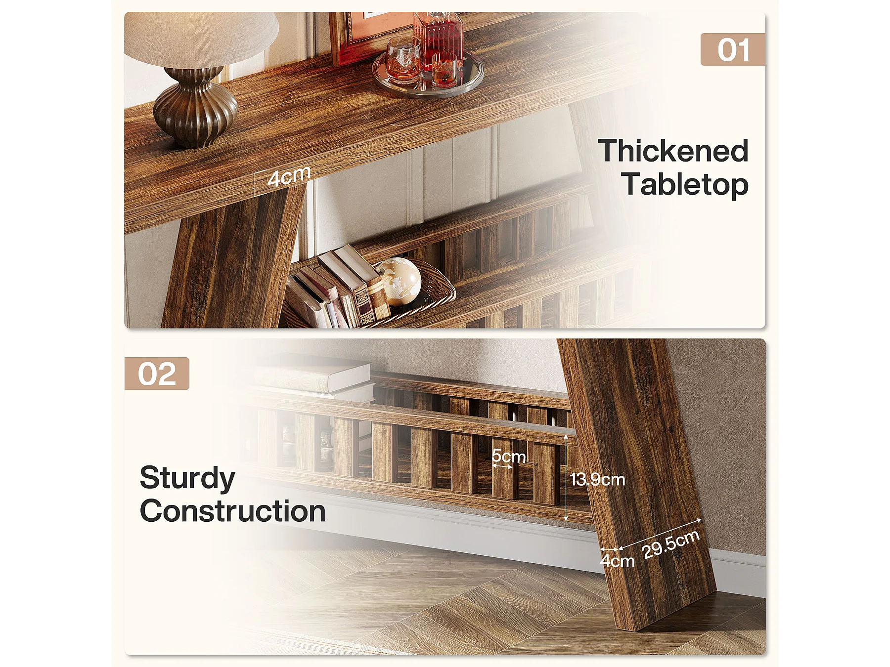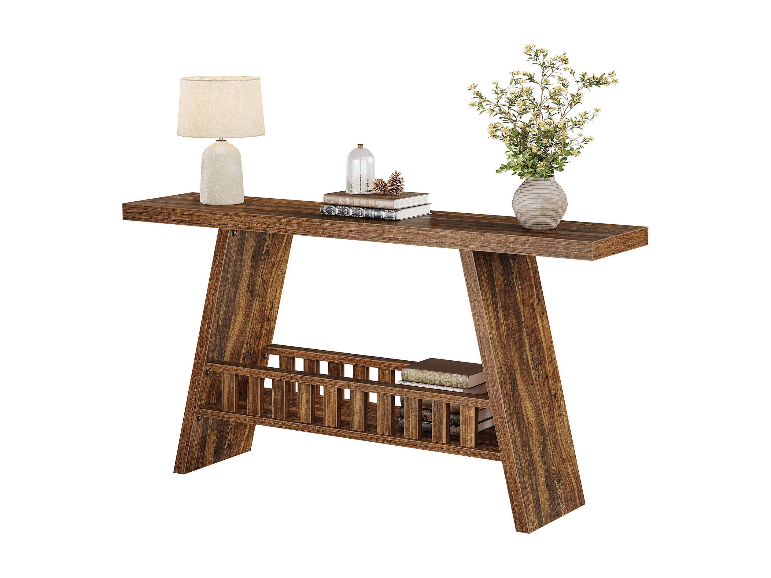 Konsola w stylu rustykalnym, 160 cm rustykalny stolik kawowy ze schowkiem, stolik w stylu industrialnym do przedpokoju