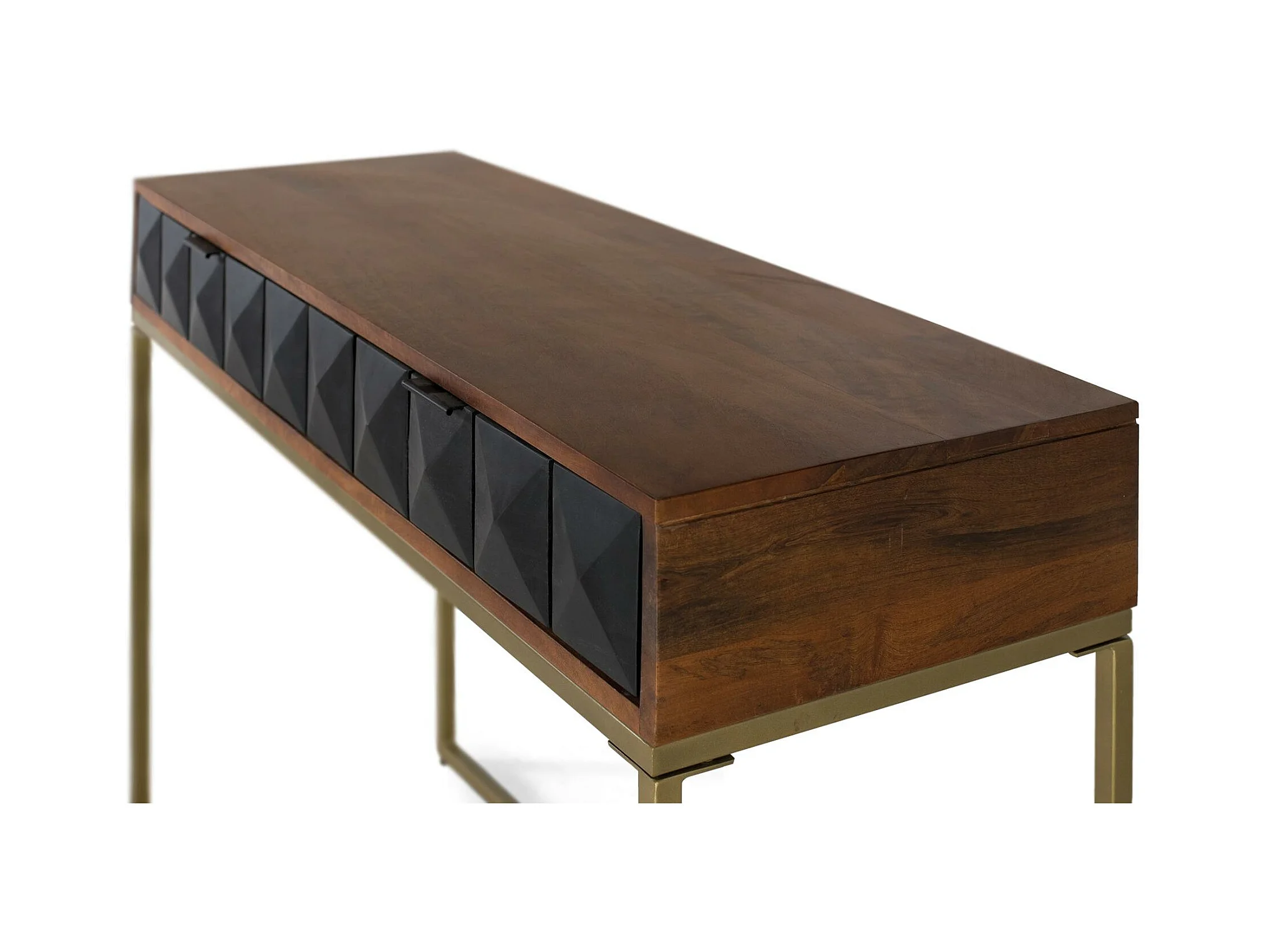 Stół do przedpokoju z drewna mango i metalowymi nogami w kolorze ciemnego orzecha