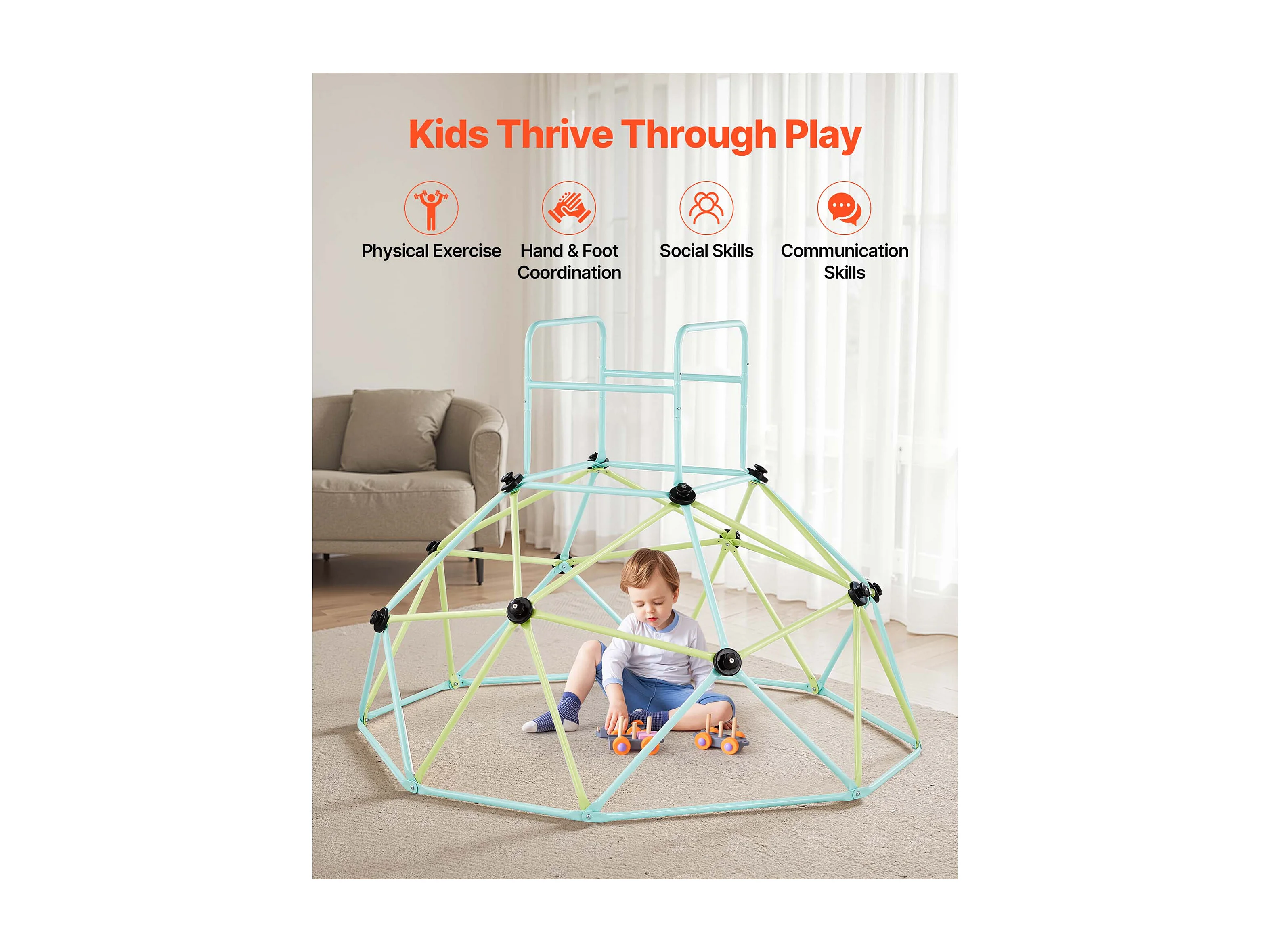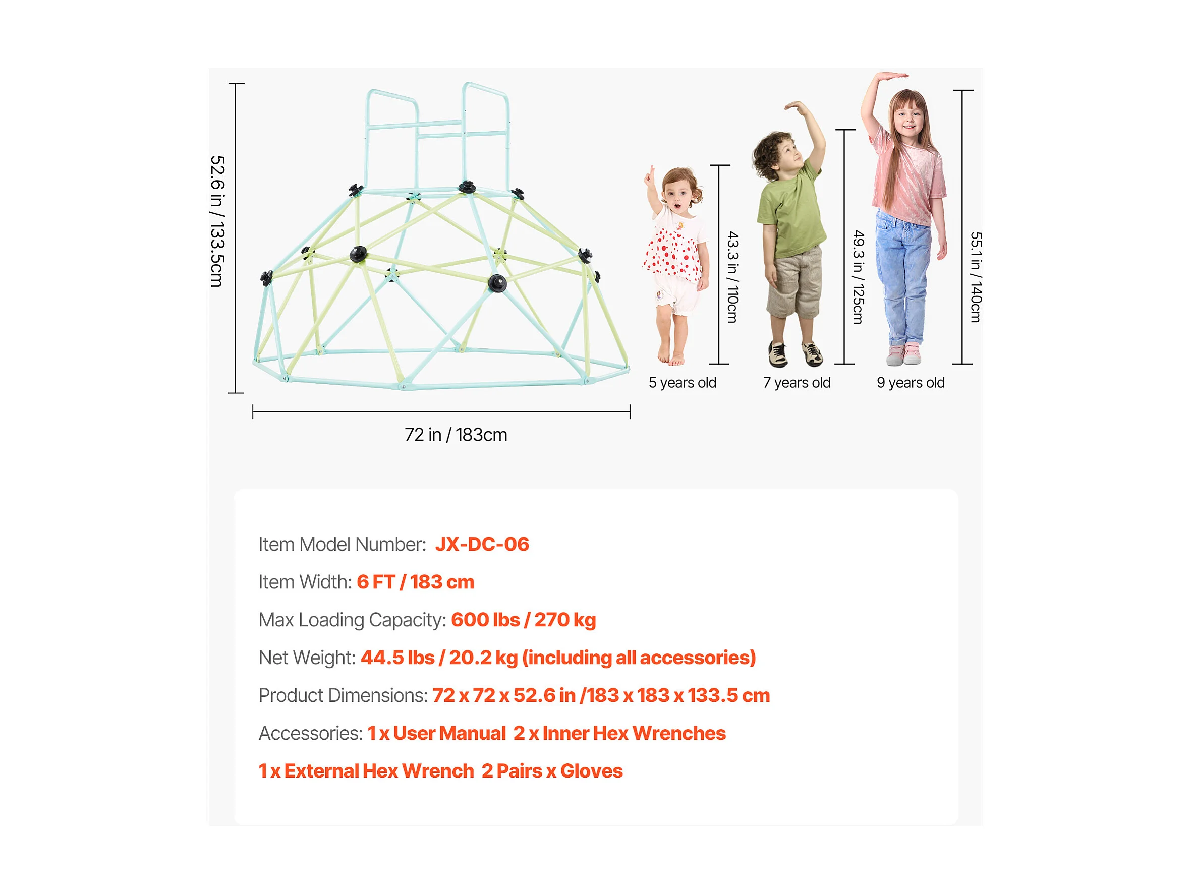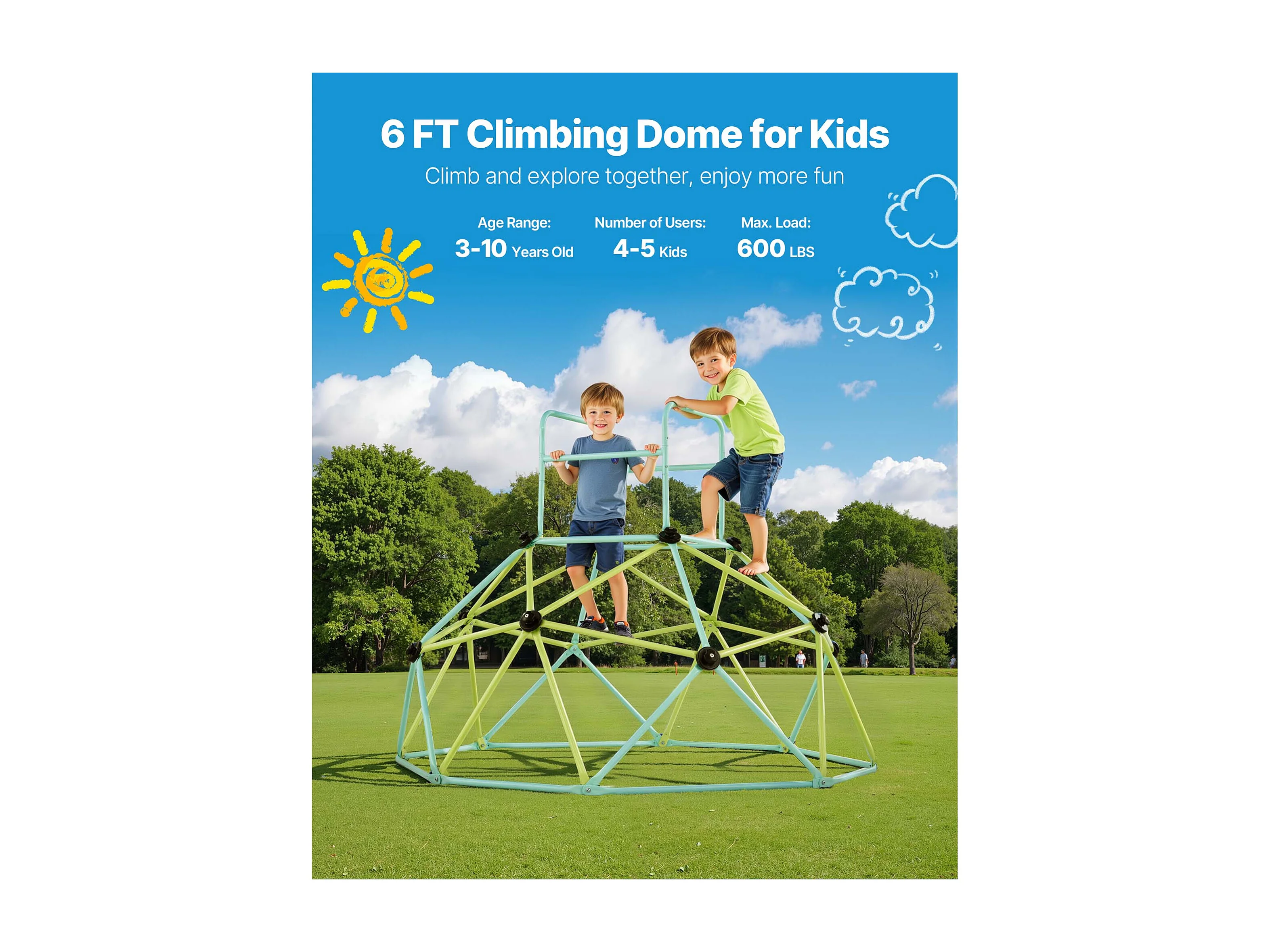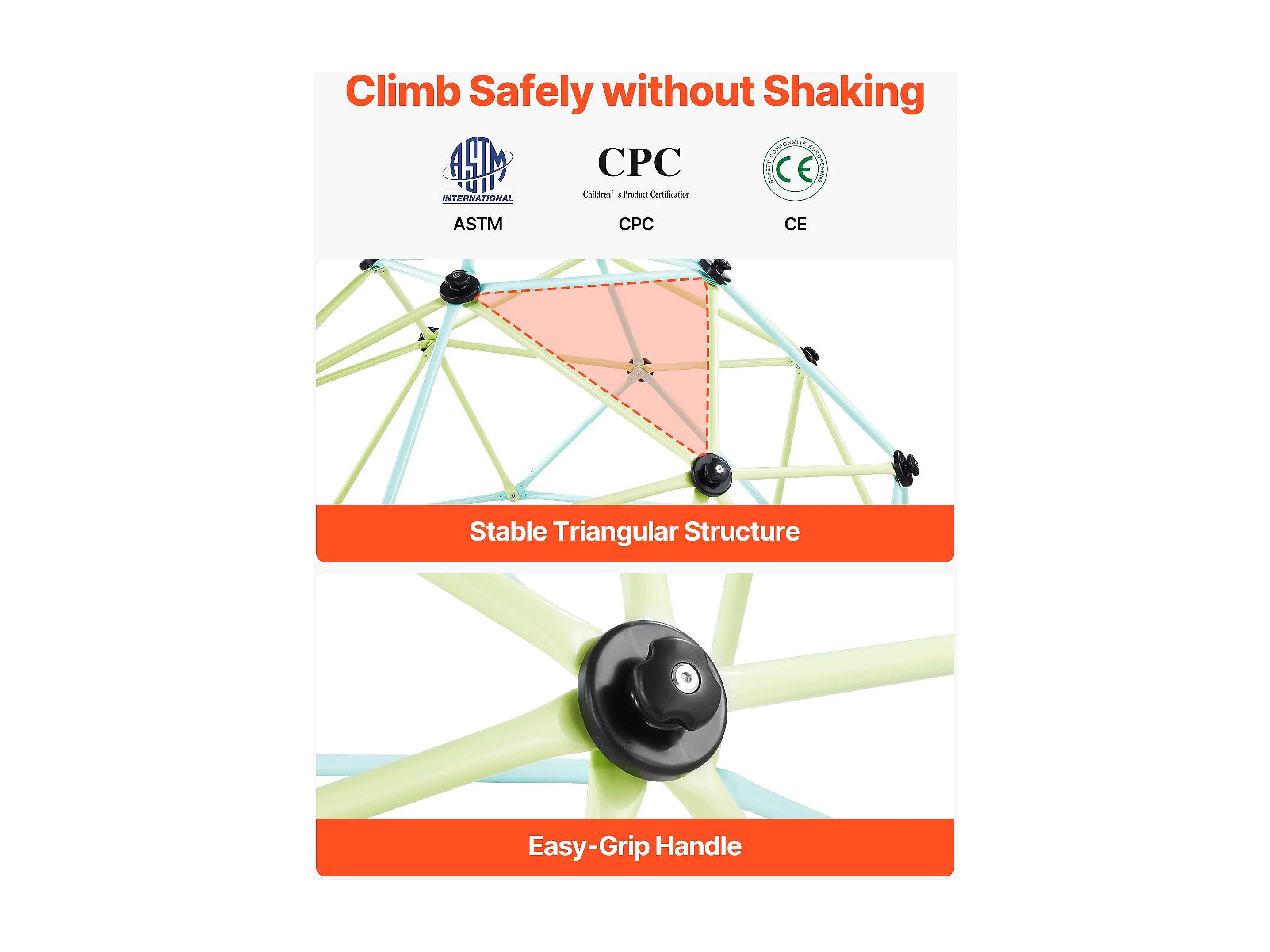 Kopuła Wspinaczkowa SucceBuy Geometryczna 183 cm, Klatka do Wspinania z Dużą Nośnością 270 kg, Solidna Klatka dla Wiewiórek, Plac Zabaw na Zewnątrz