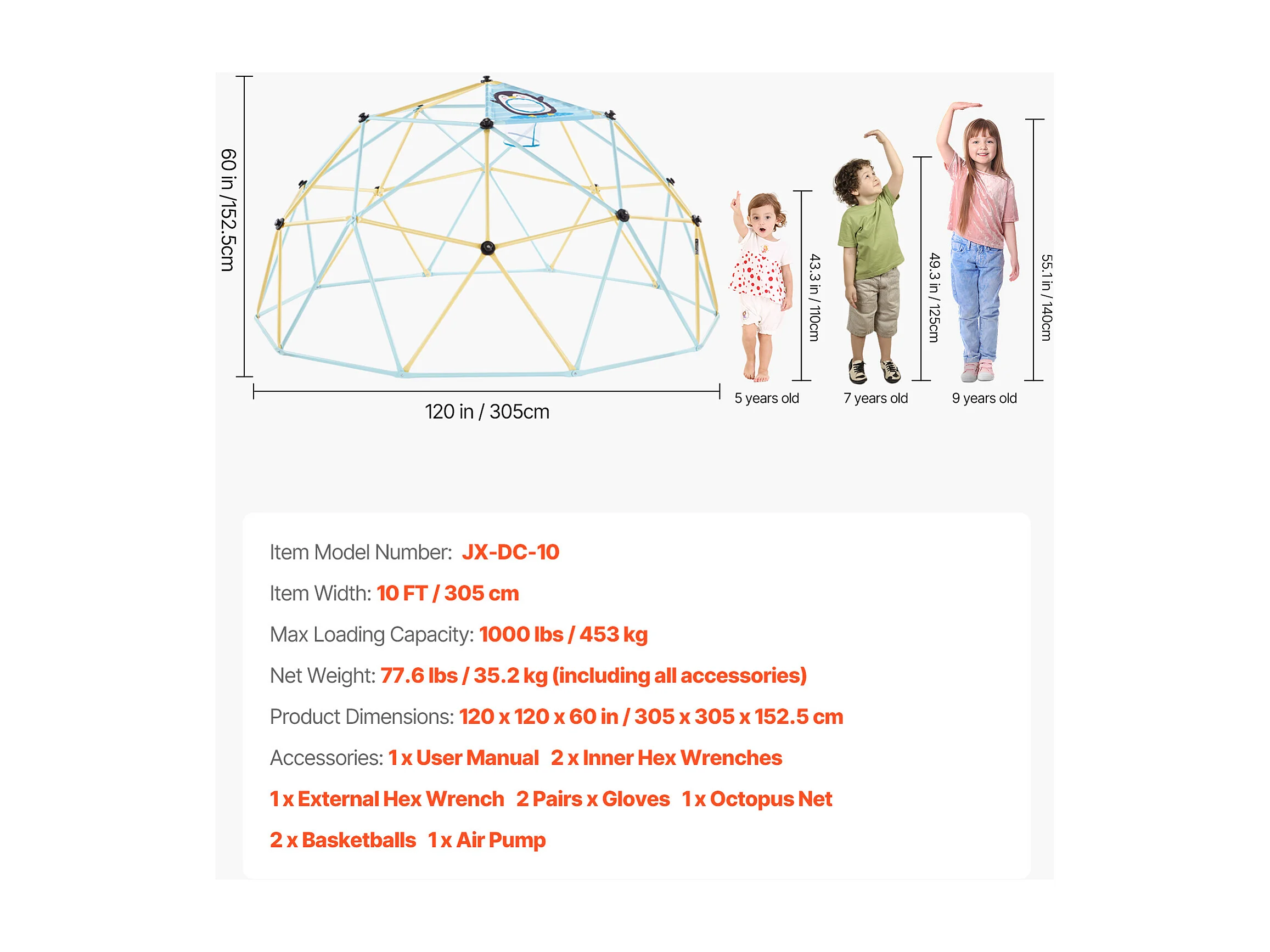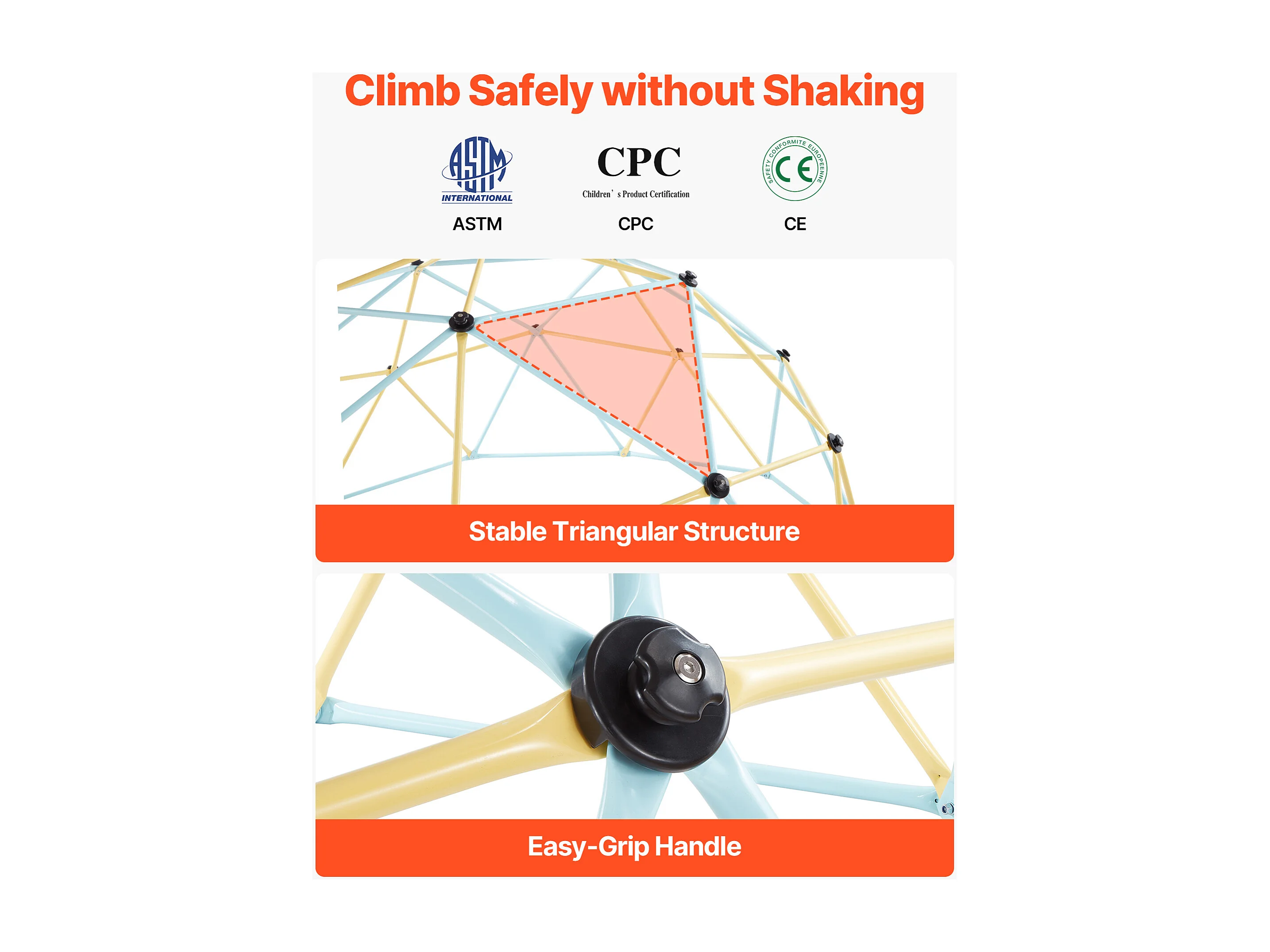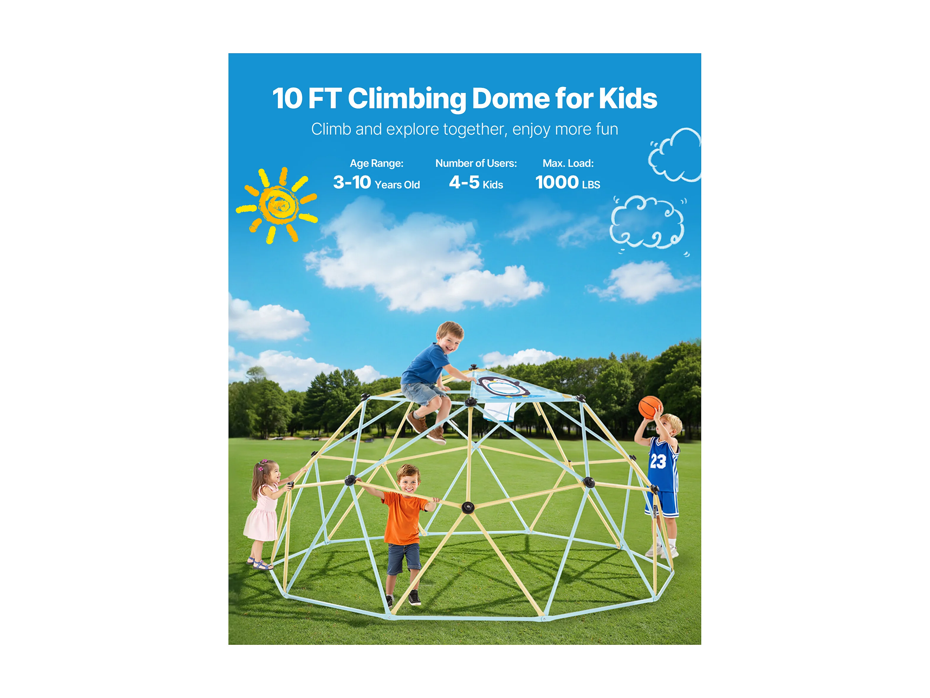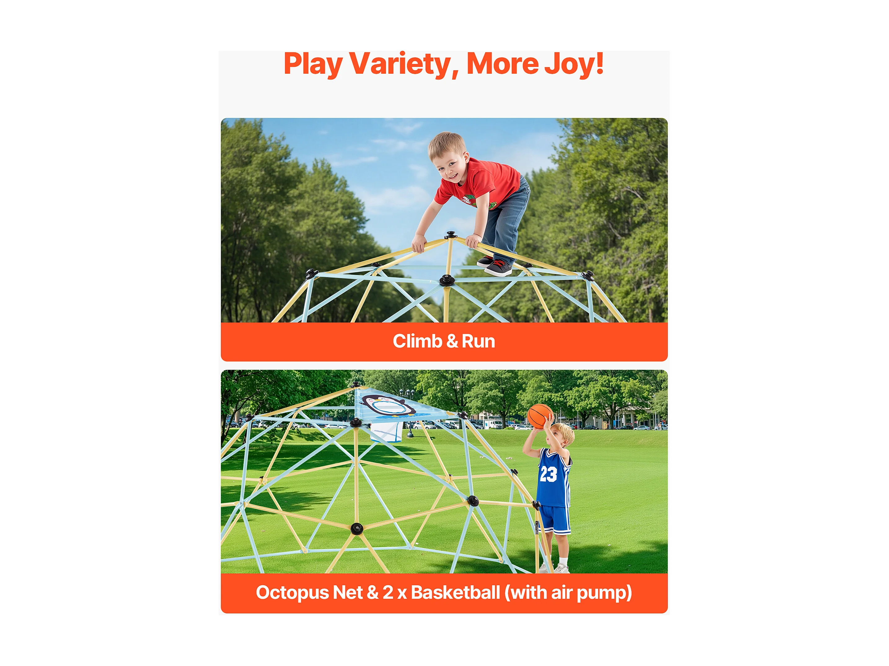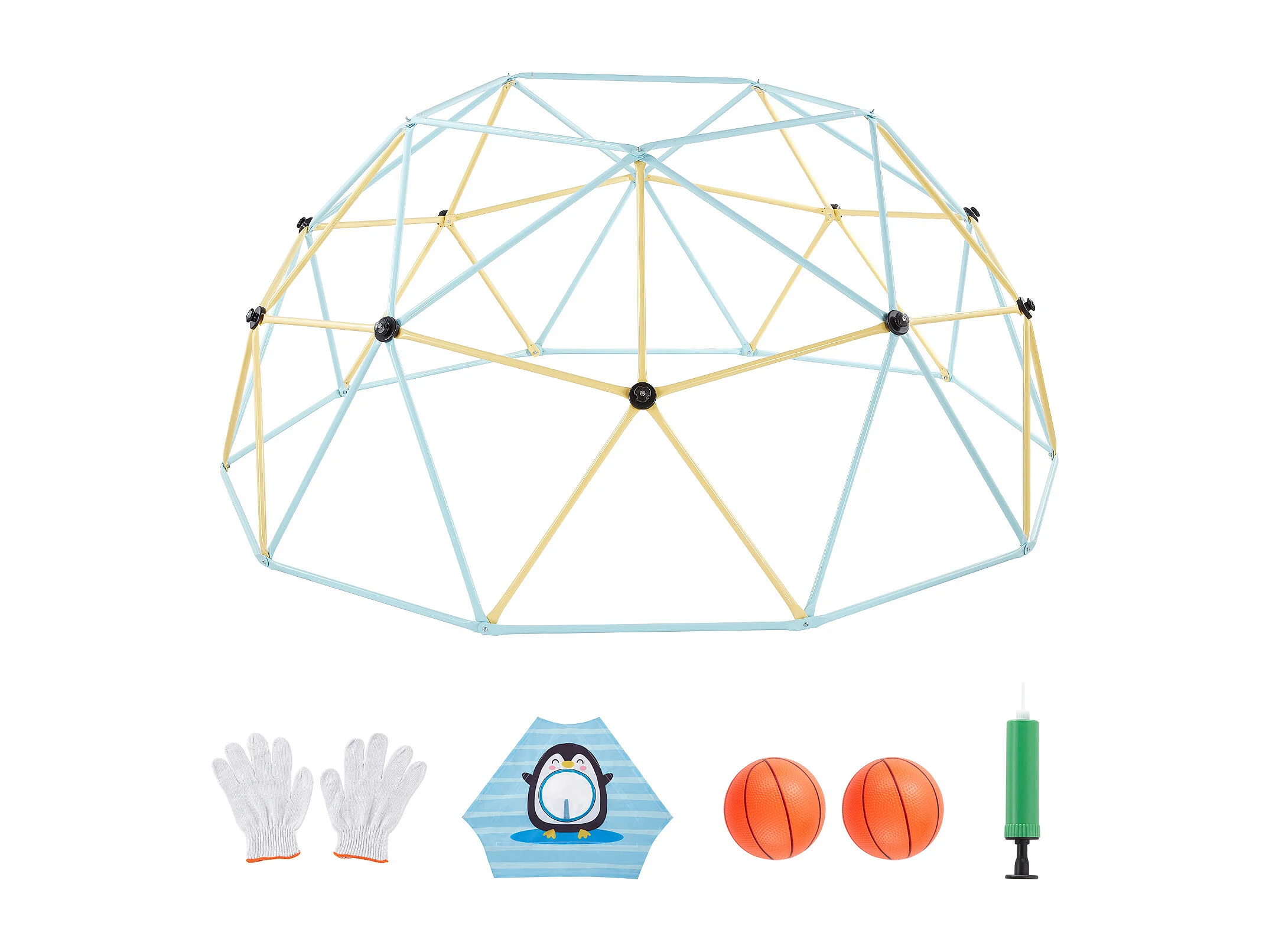 Kopuła Wspinaczkowa SucceBuy Geometryczna 305 cm, Klatka do Wspinania z Siecią i 2 Piłkami do Koszykówki, Solidna Klatka dla Wiewiórek Nośność 453 kg