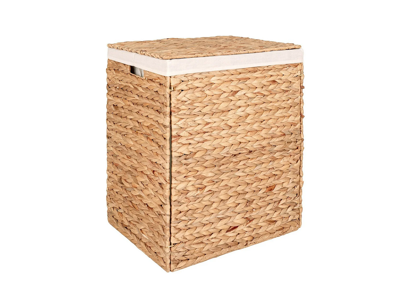 Kosz na Bieliznę w Kolorze Ciemnobrązowym z Plecionki z Pokrywą i Wyjmowaną Torbą