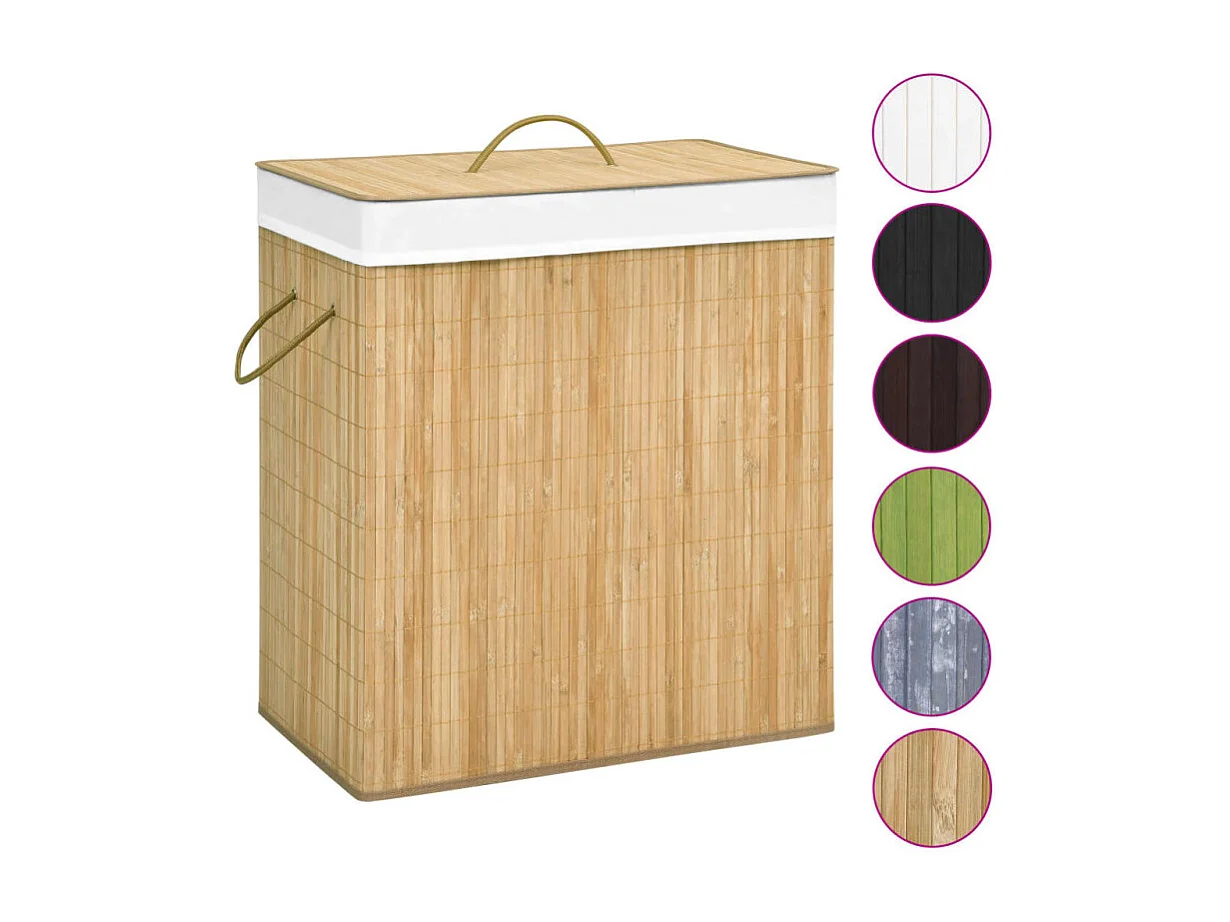 Kosz na pranie z 2 sekcjami, 100 l, bambus.