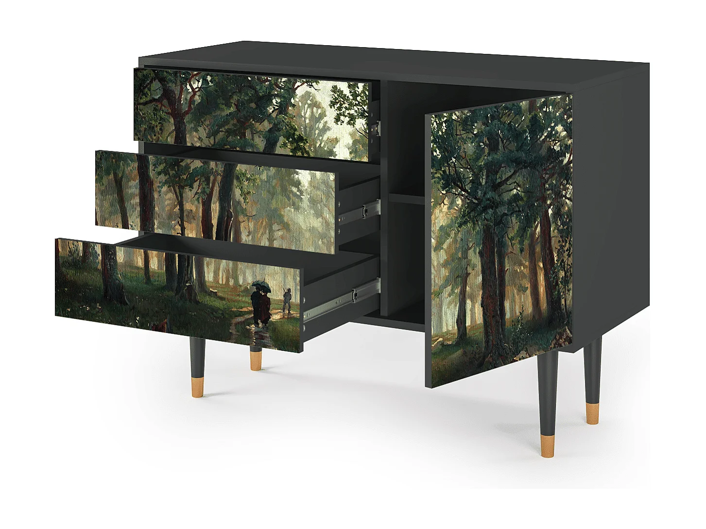 Kredens - 115х84х41 cm - S3 - Rain in the Oak Forest, Antracyt