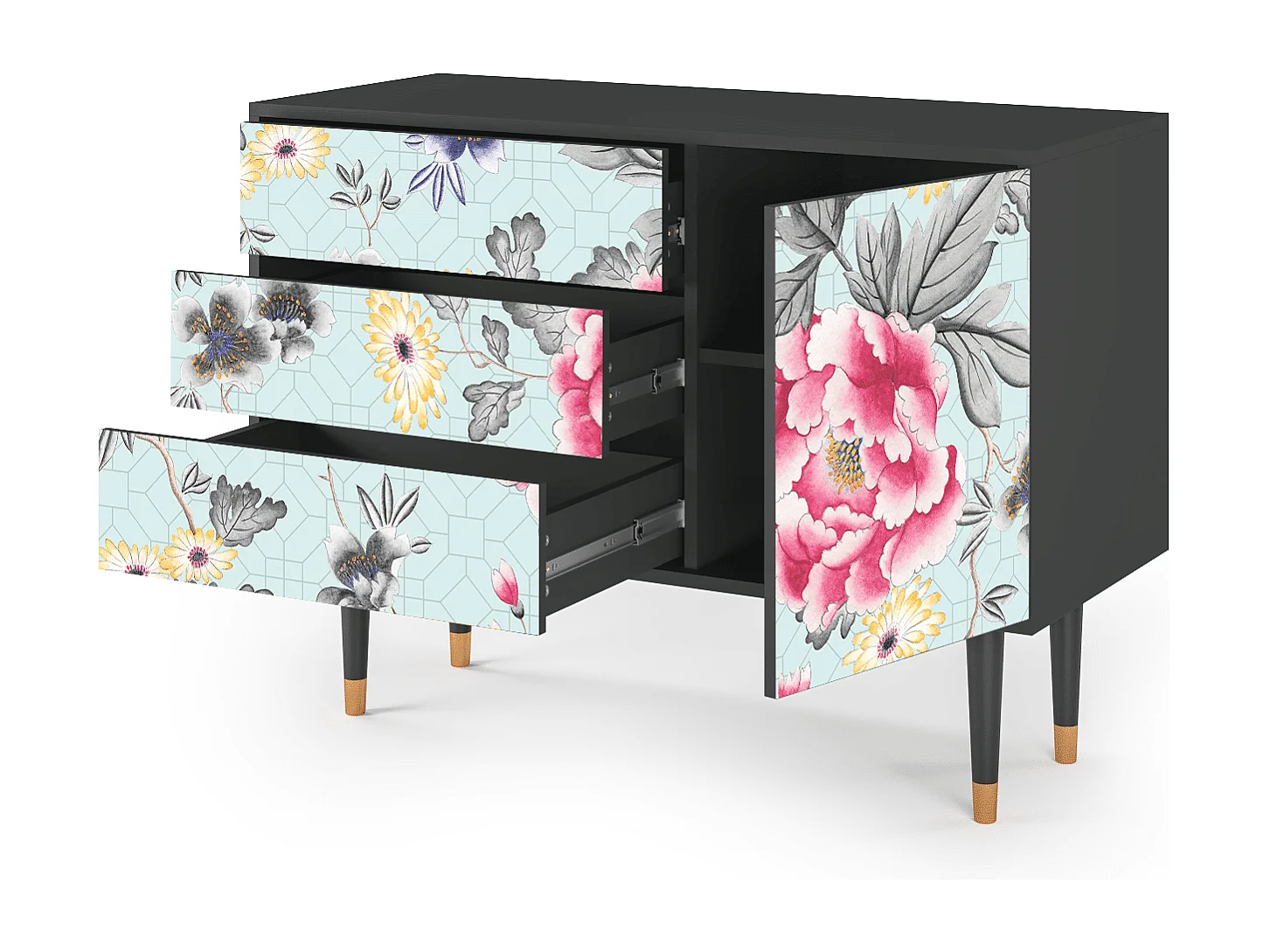 Kredens - 115х84х41 cm - S3 - Light Peonies, Szary