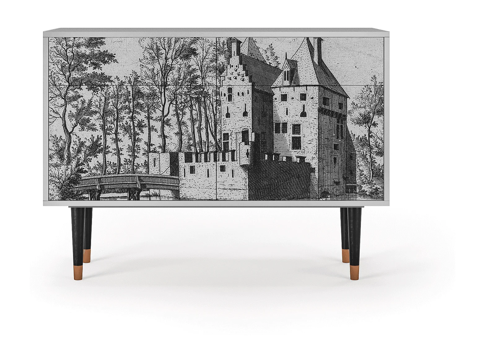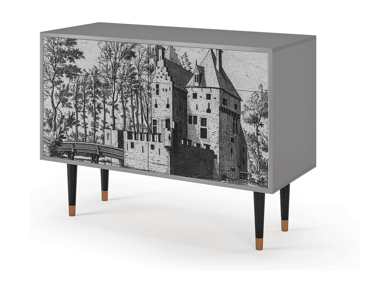 Kredens - 115x85x48 cm - BS4 - Castle with Bridge, Szary