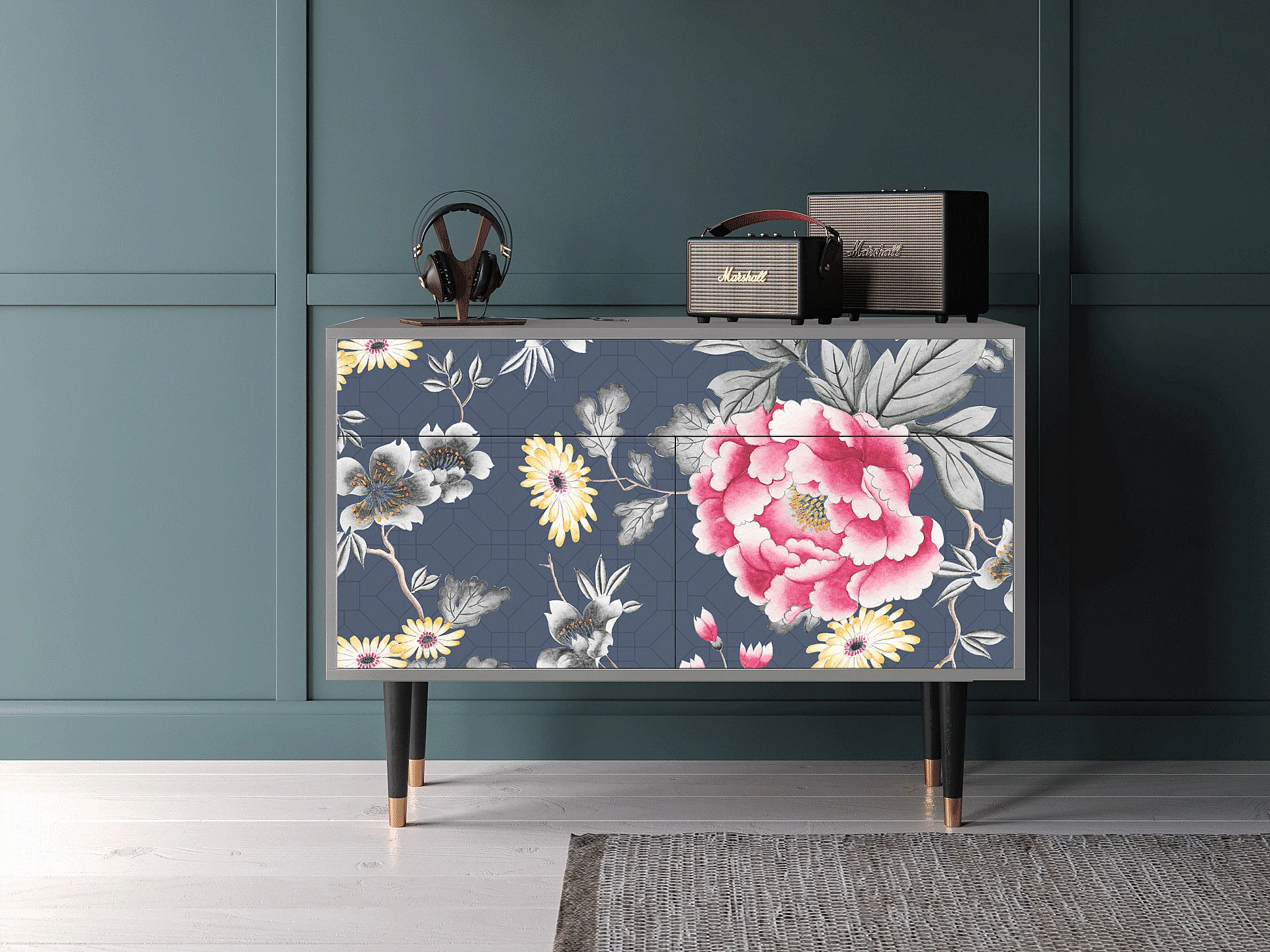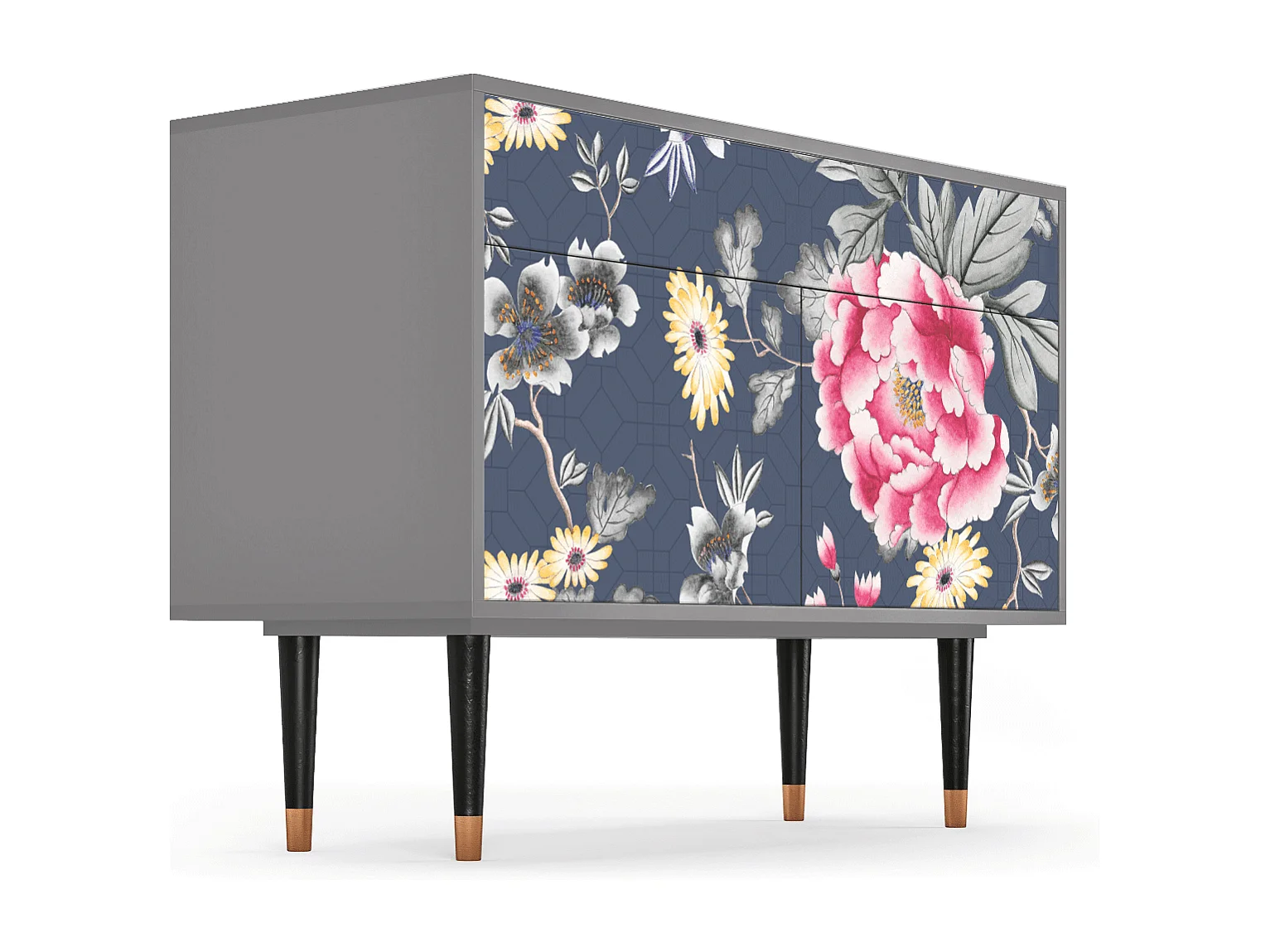 Kredens - 115x85x48 cm - BS4 - Still Life with Flowers, Szary