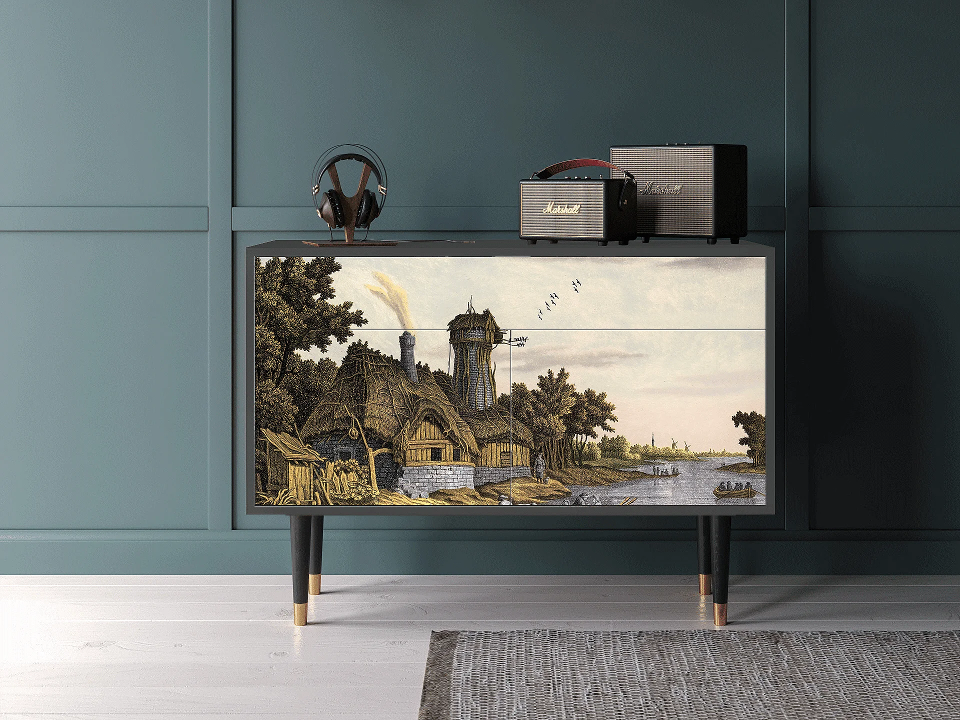 Kredens - 115x85x48 cm - BS4 - Mill along a River, Antracyt