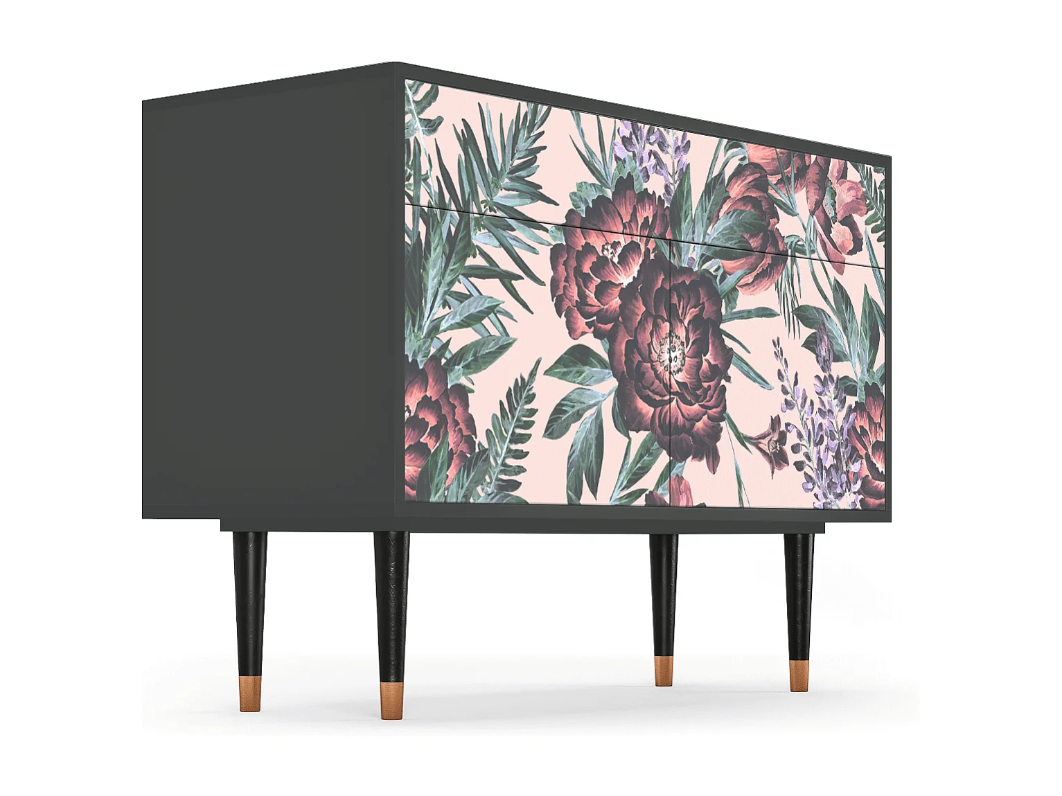 Kredens - 115x85x48 cm - BS4 - Peach Peonies, Antracyt