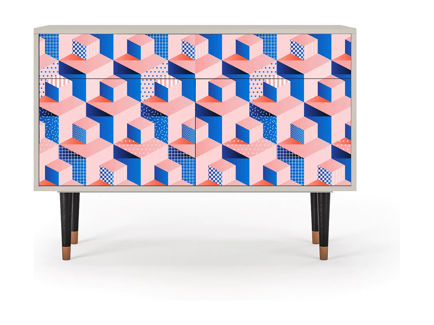 Kredens - 115x85x48 cm - BS4 - Pinky Squares, Piaskowy
