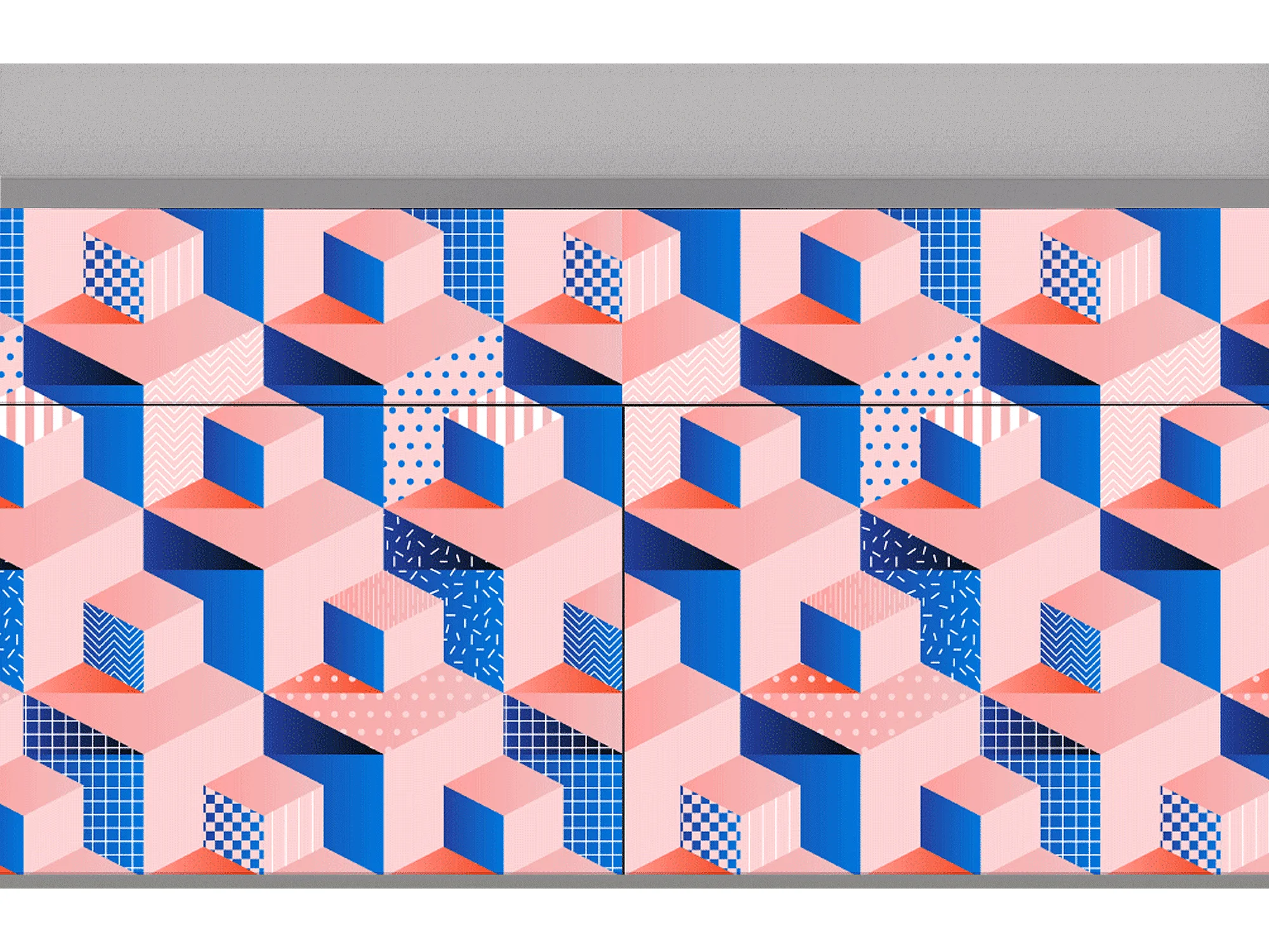 Kredens - 115x85x48 cm - BS4 - Pinky Squares, Szary