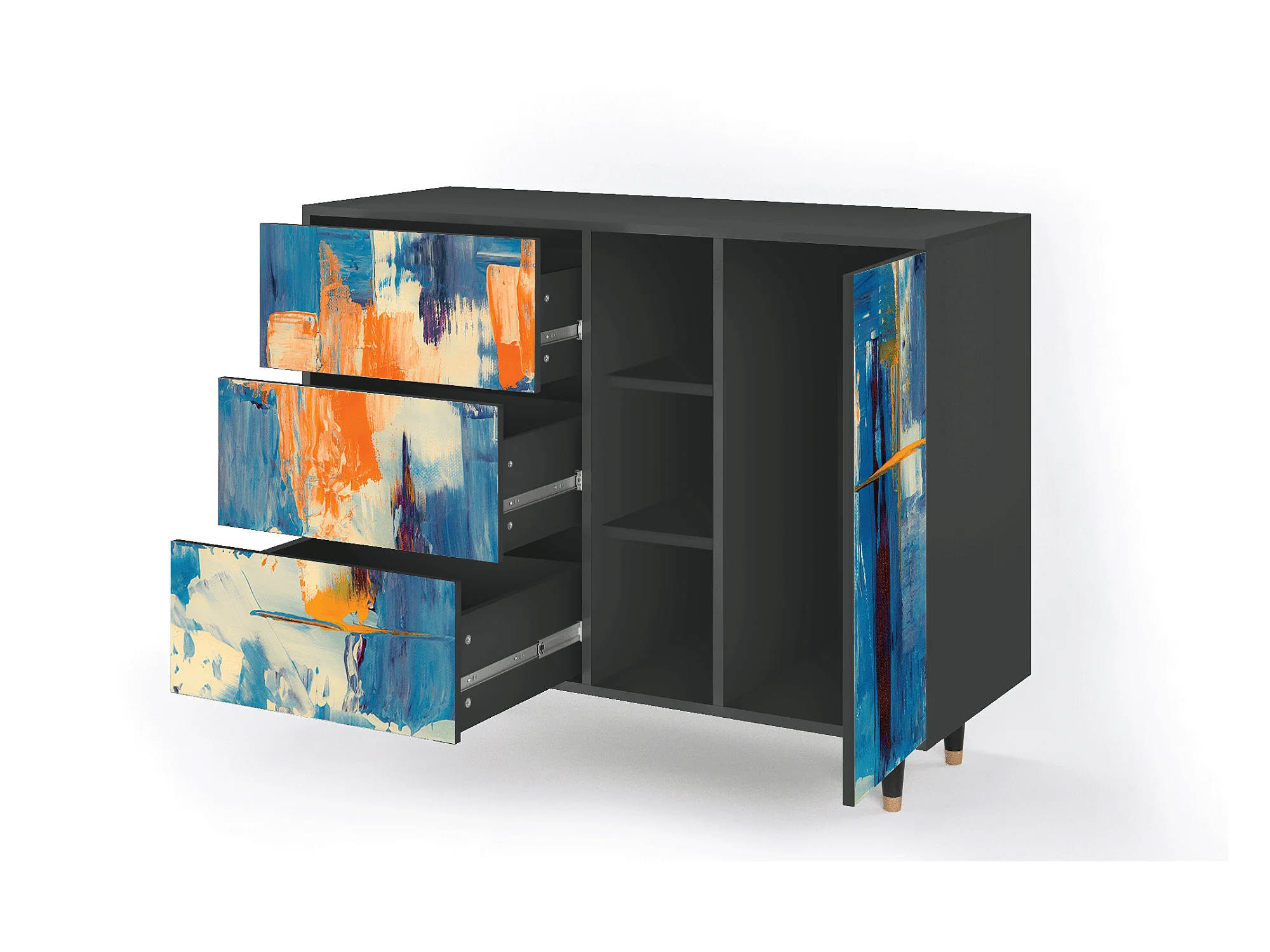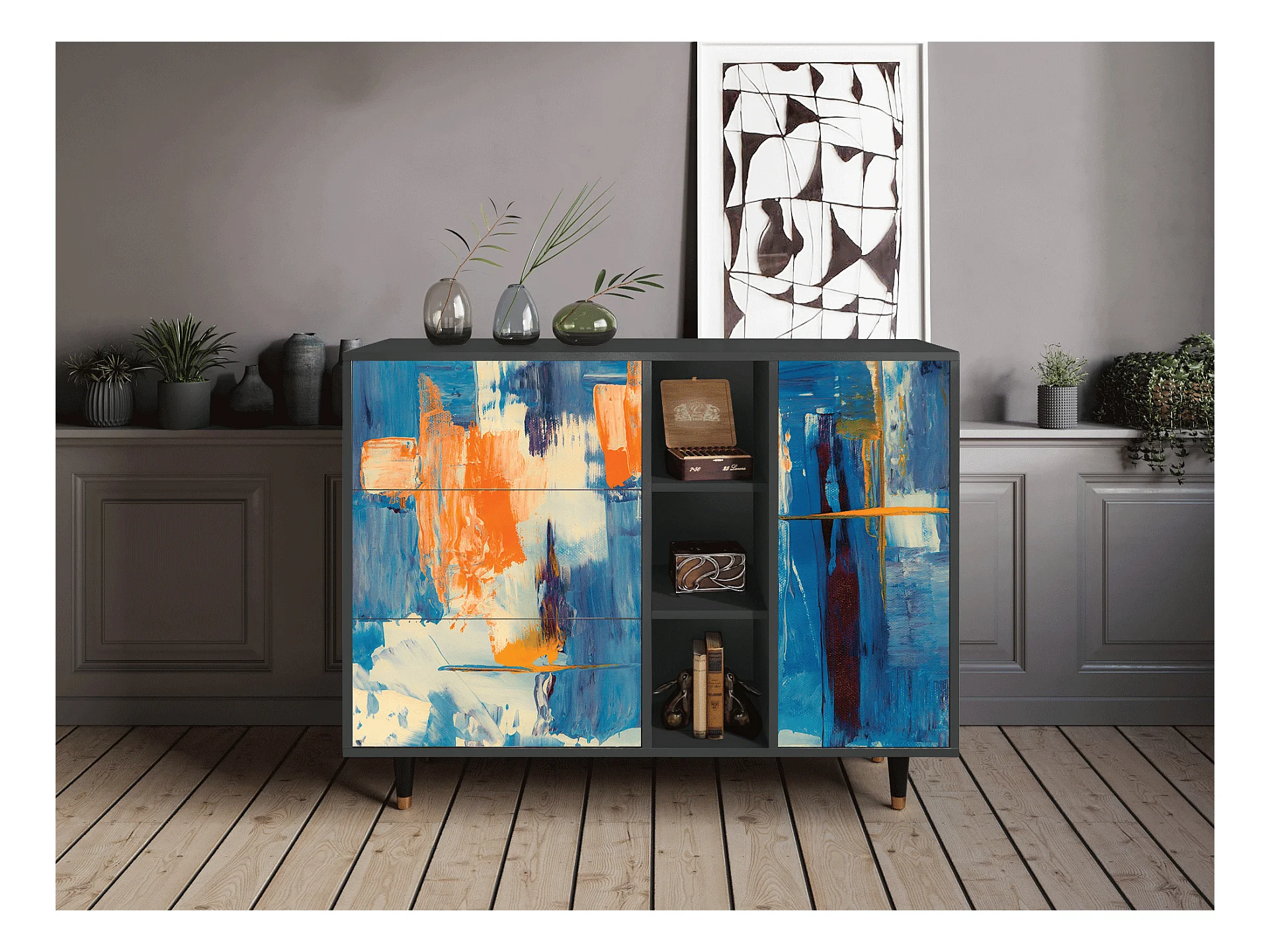 Kredens - 125x98x48 cm - BS2 - Abstract Expressionism, Antracyt