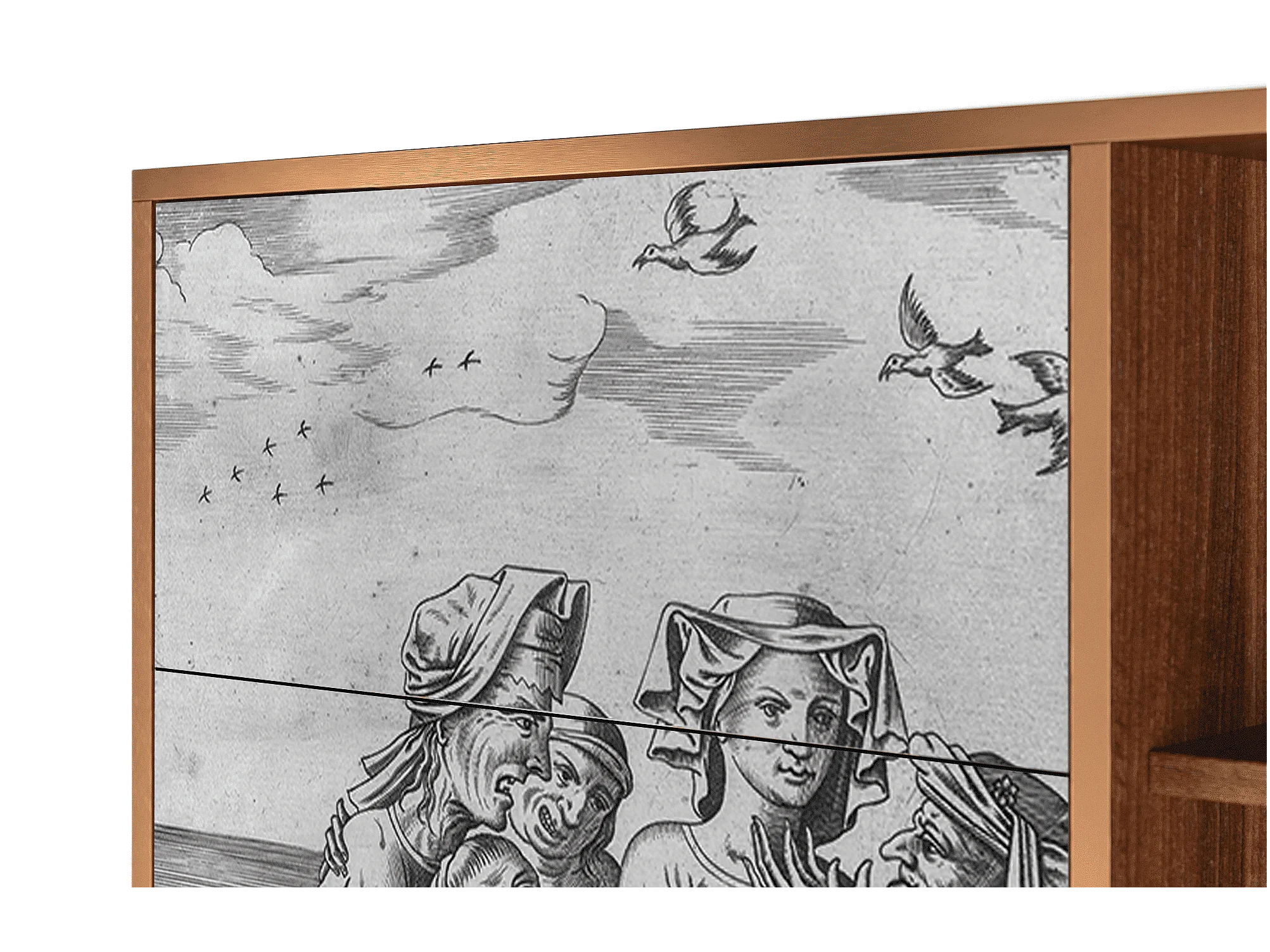 Kredens - 125x98x48 cm - BS2 - Lady with Fan by Klimt, Orzech