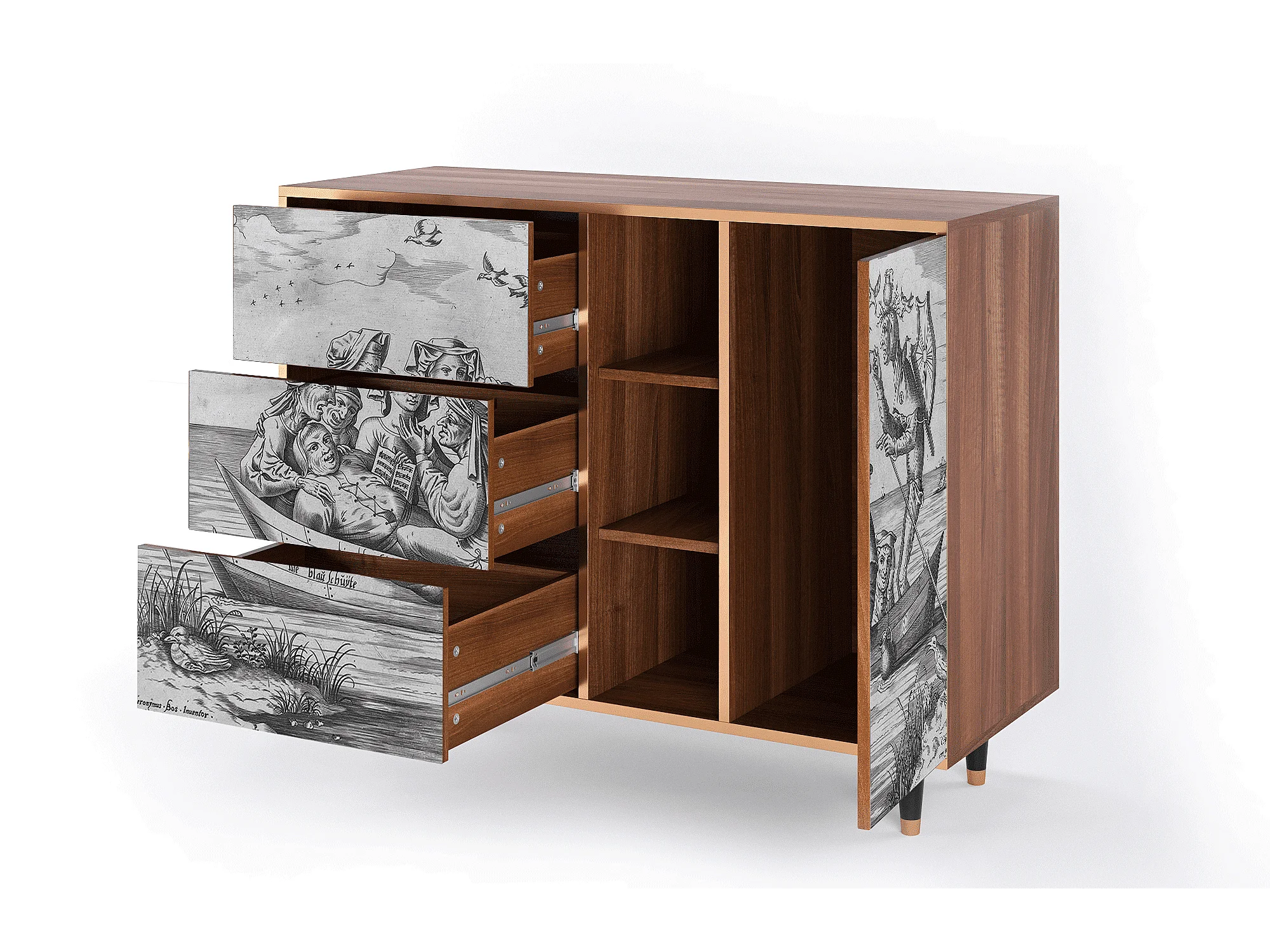 Kredens - 125x98x48 cm - BS2 - Geometric Madness, Orzech