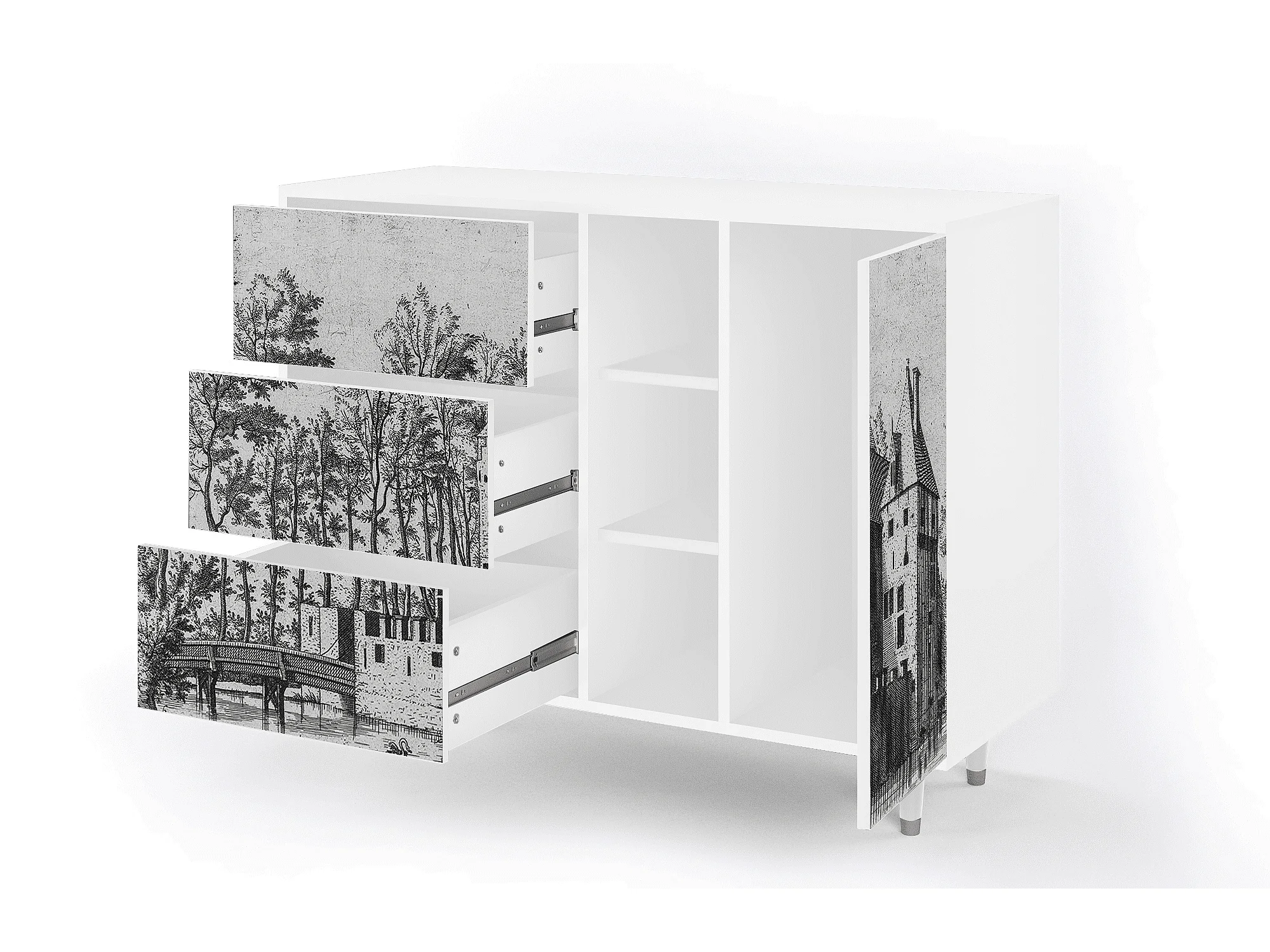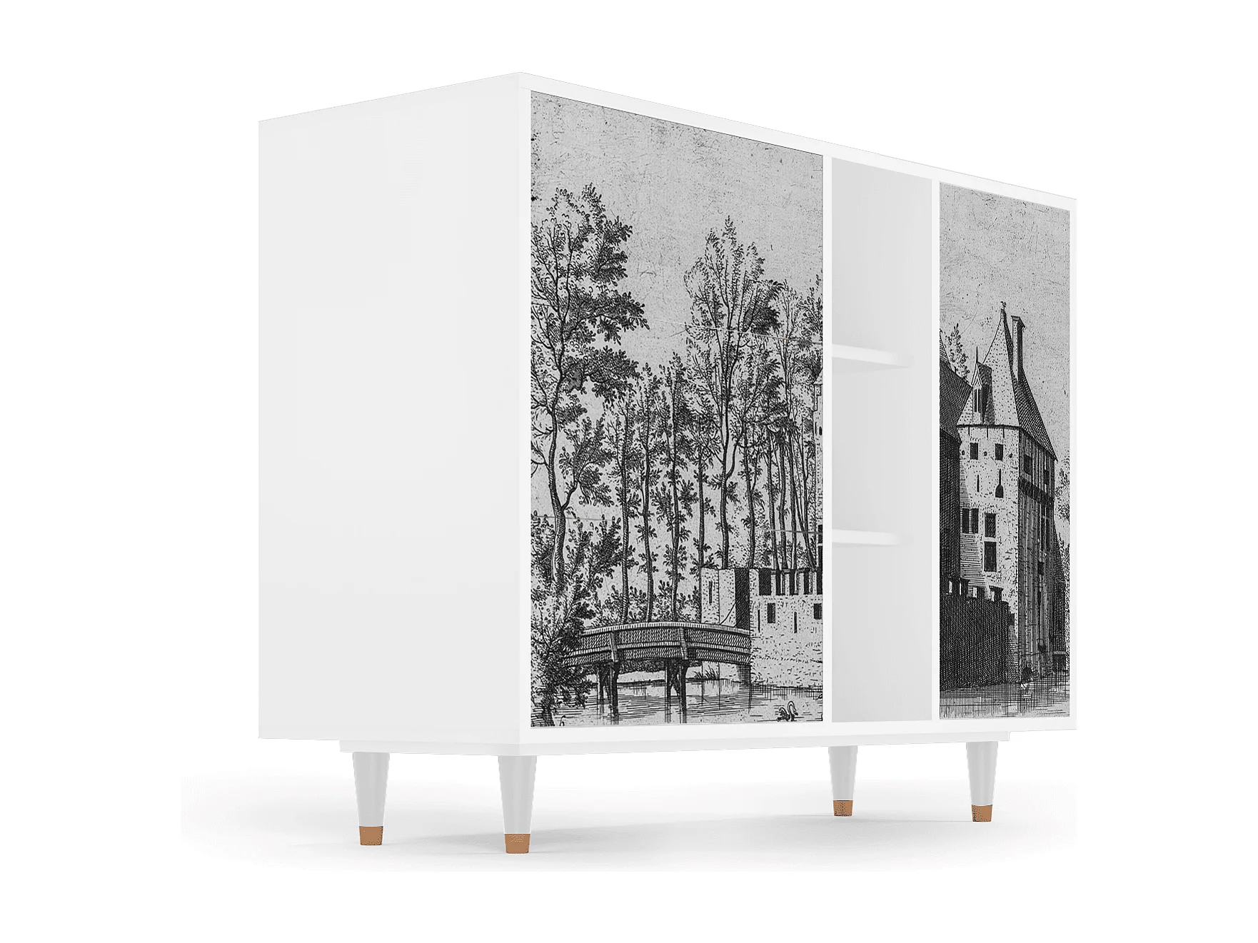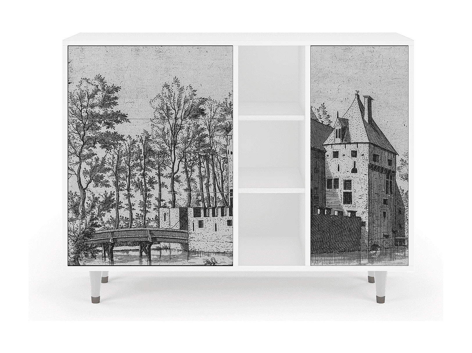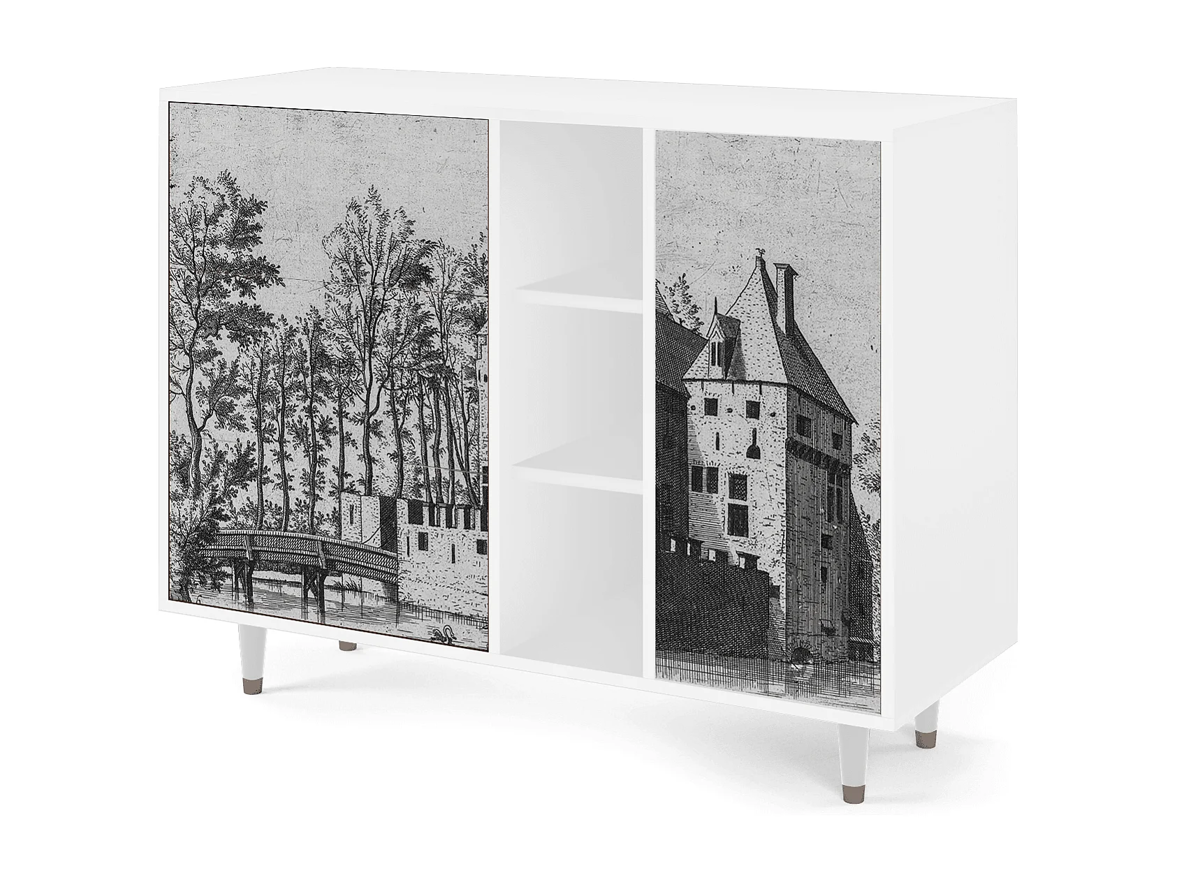 Kredens - 125x98x48 cm - BS2 - Castle with Bridge, Biały