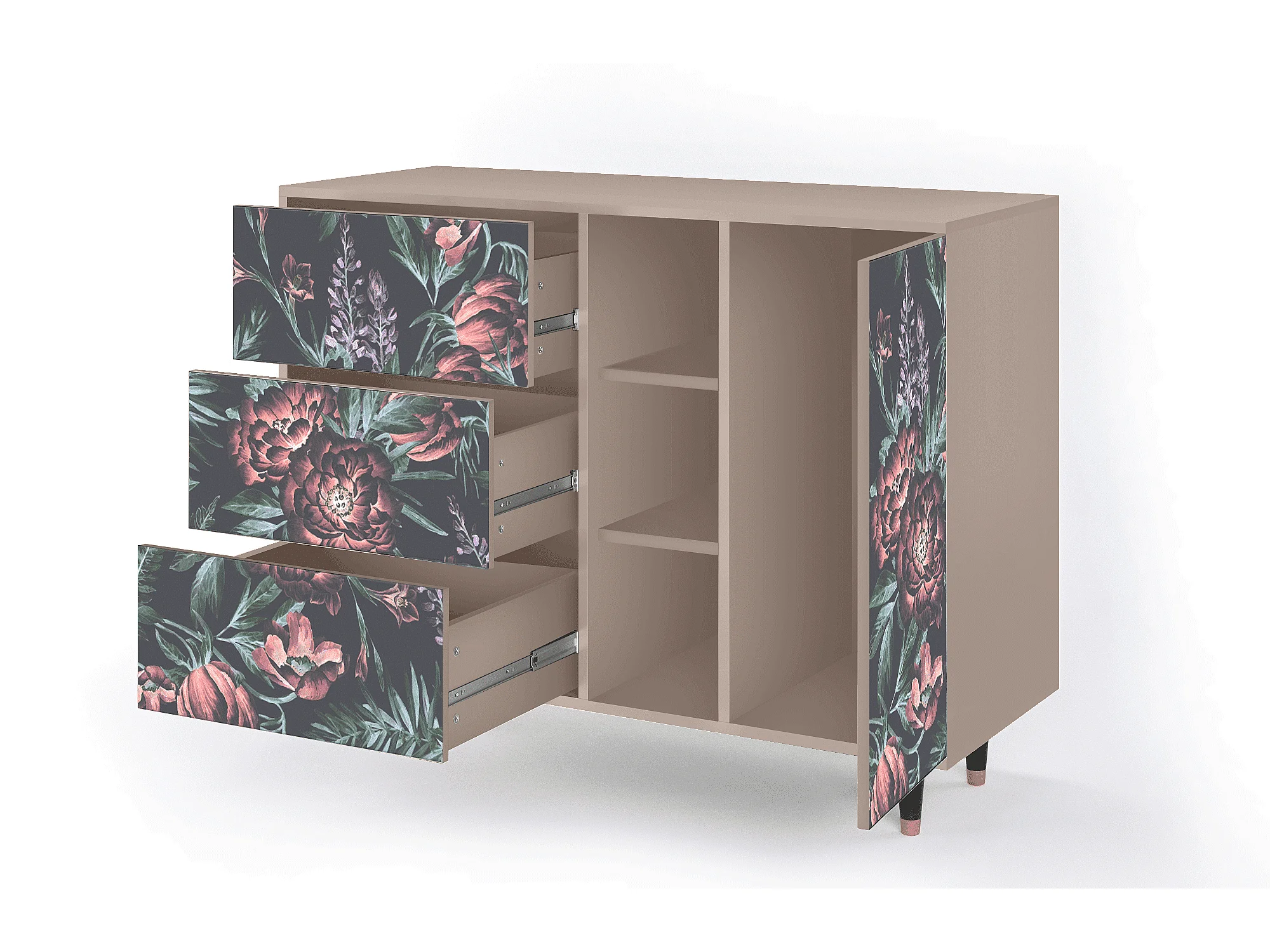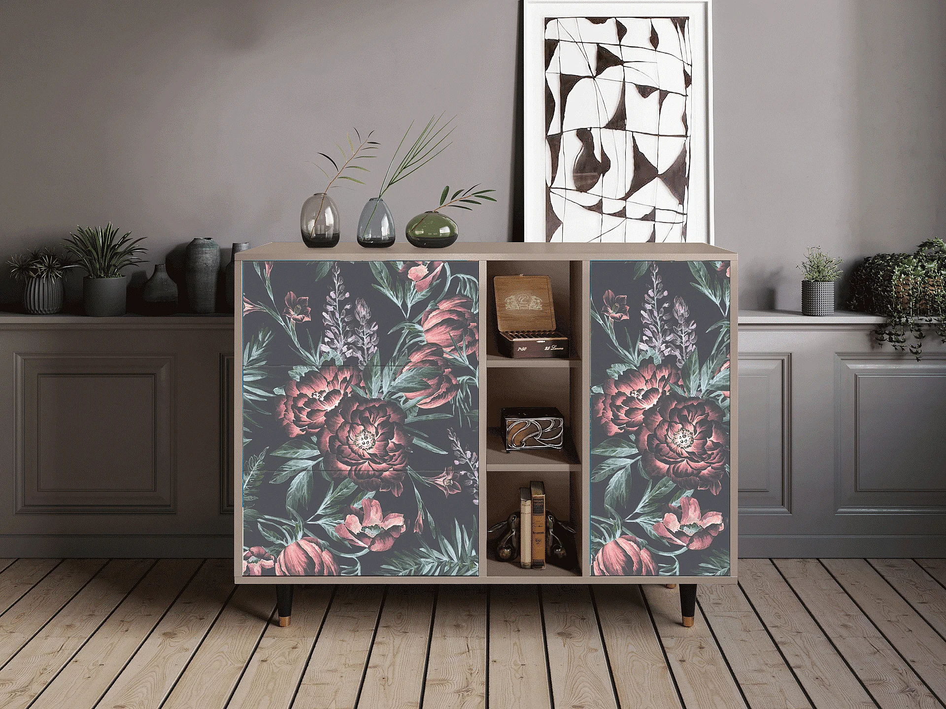 Kredens - 125x98x48 cm - BS2 - Dark Peonies, Latte
