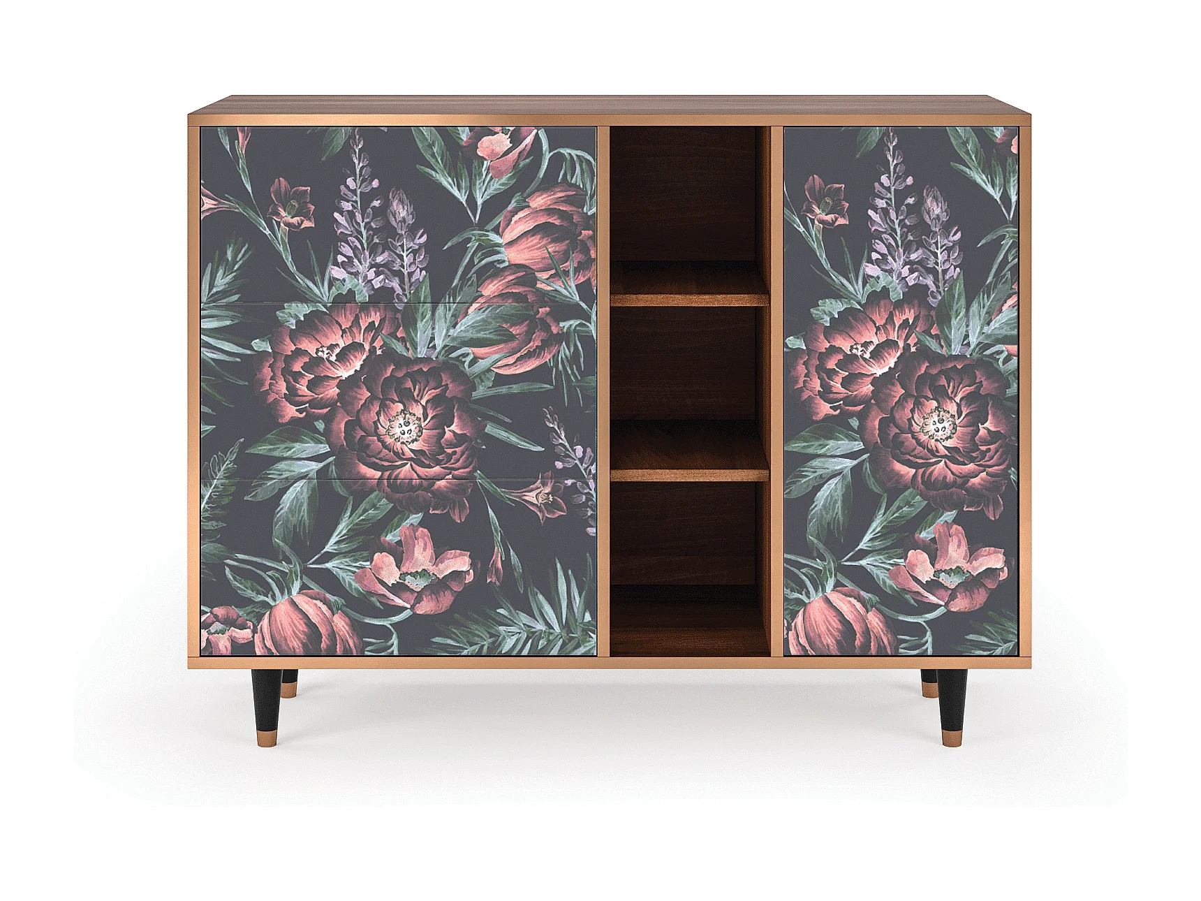 Kredens - 125x98x48 cm - BS2 - Dark Peonies, Orzech