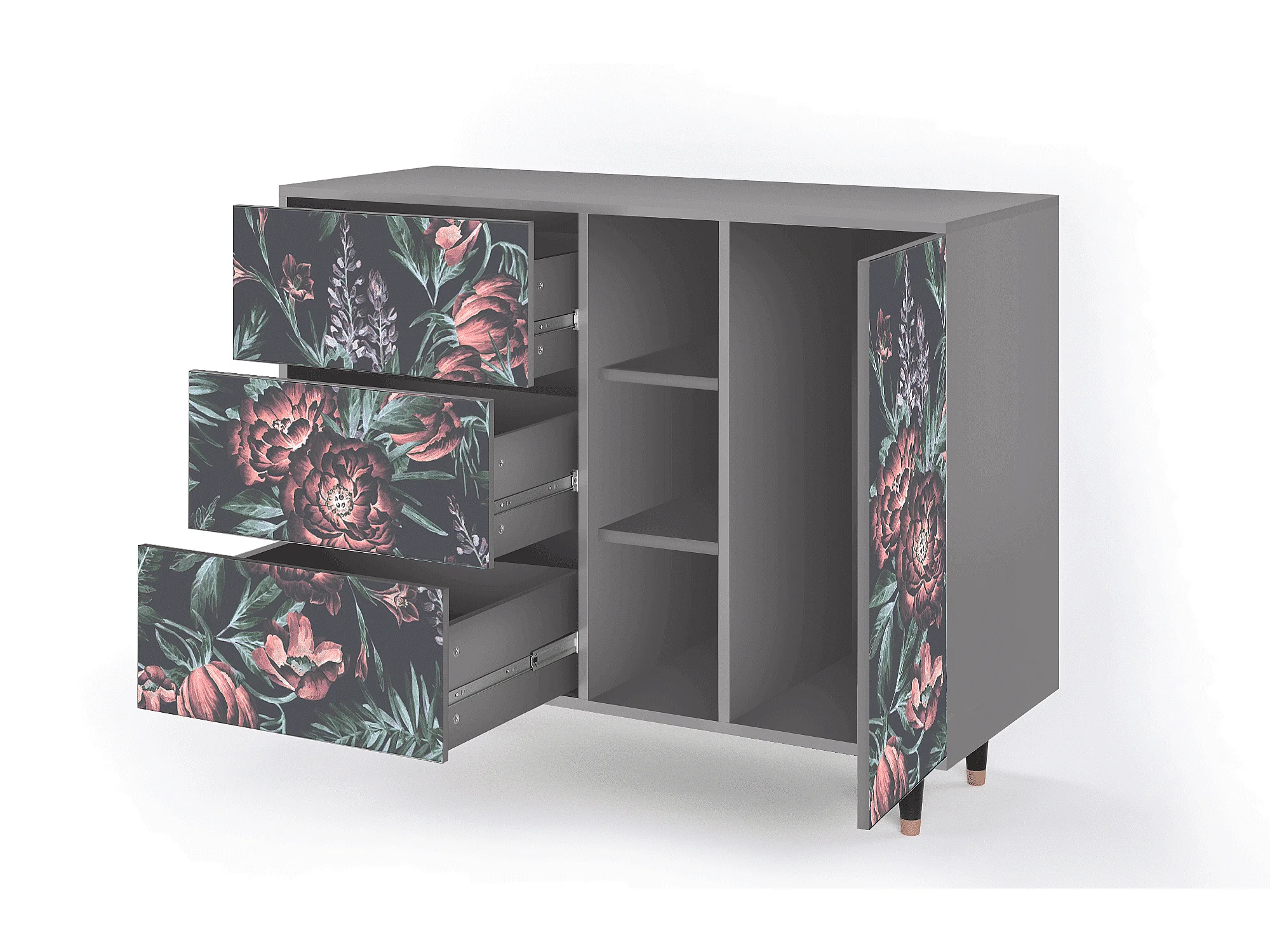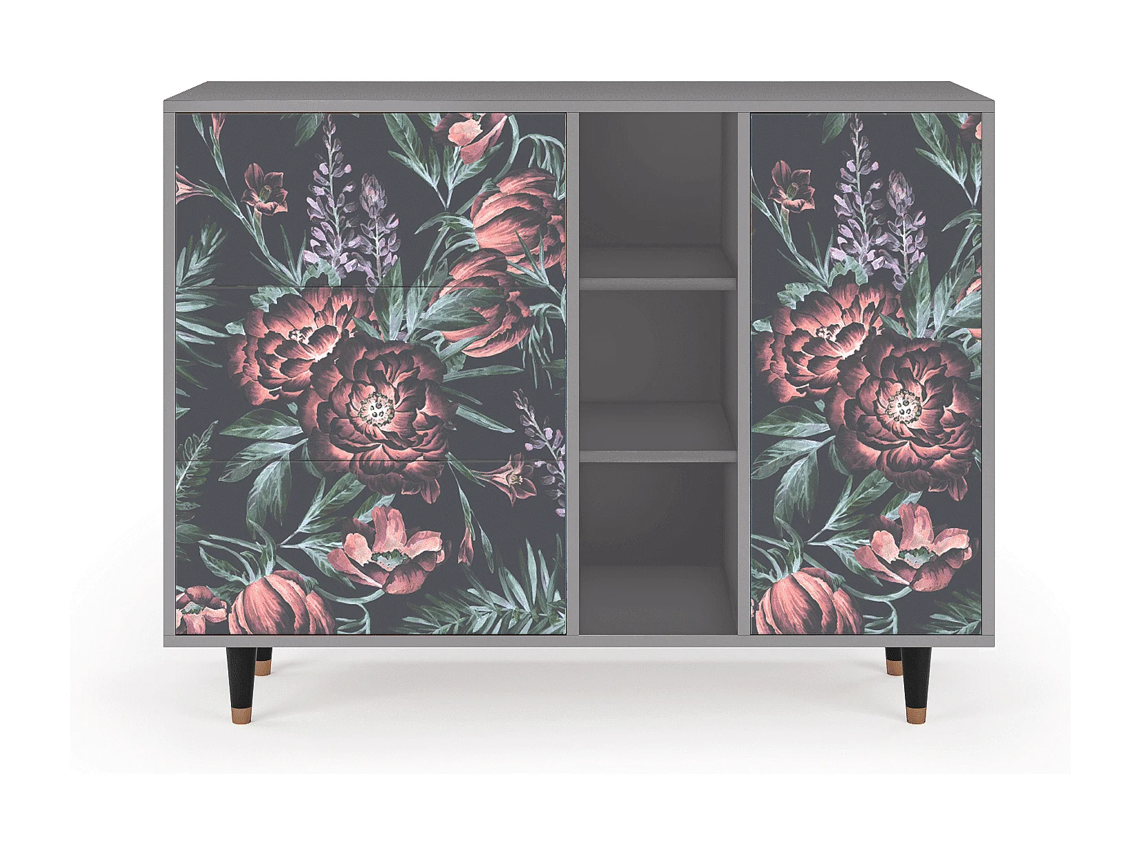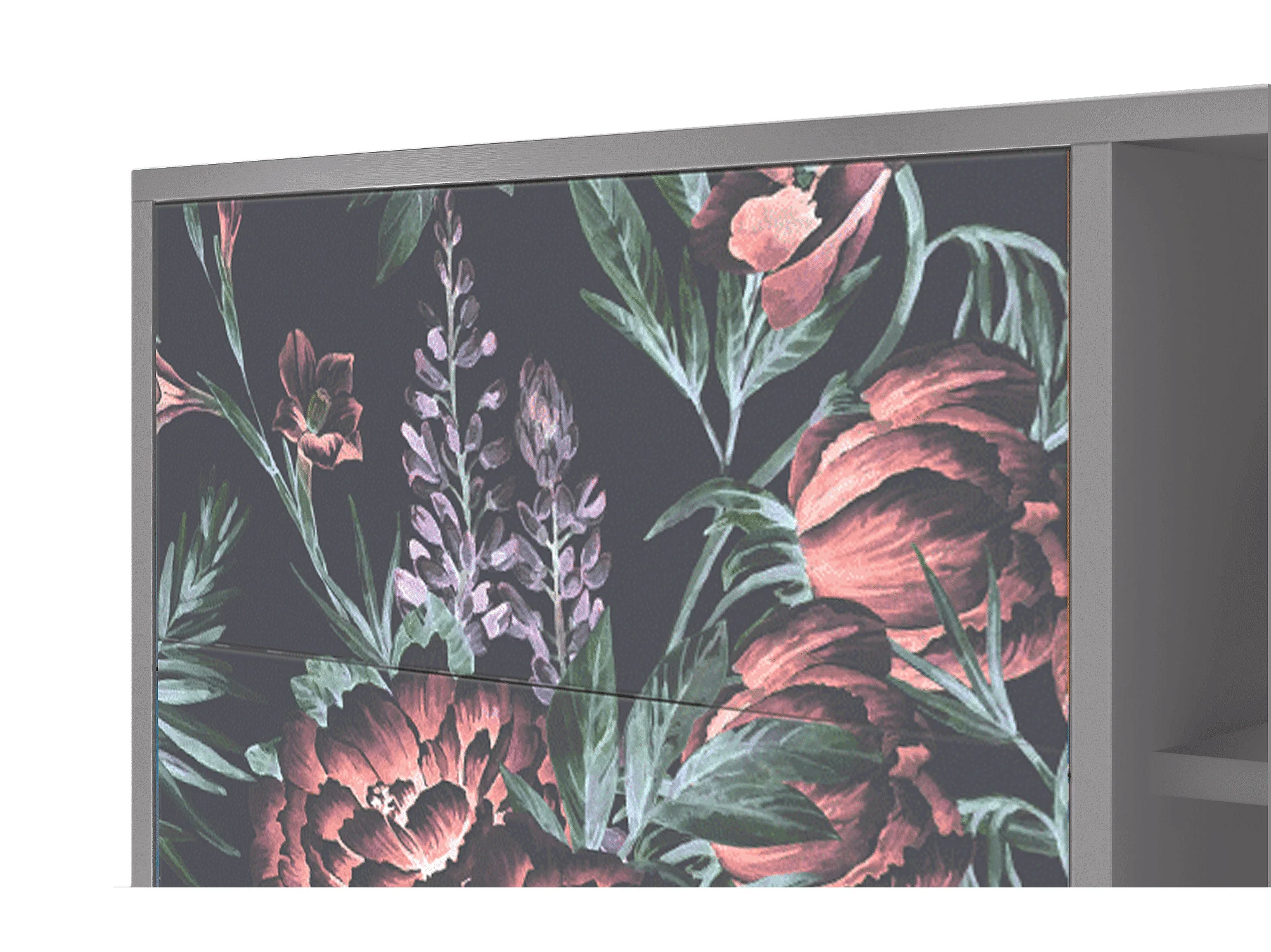 Kredens - 125x98x48 cm - BS2 - Dark Peonies, Szary