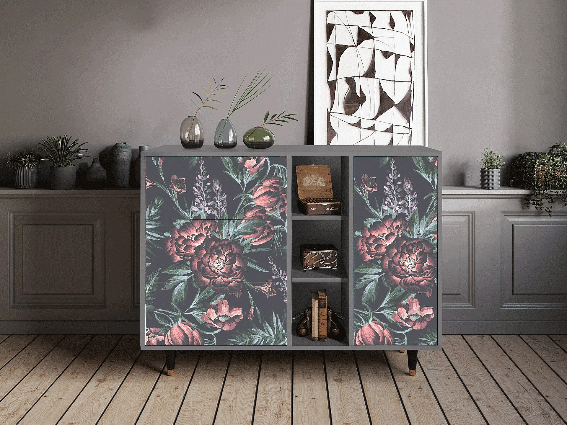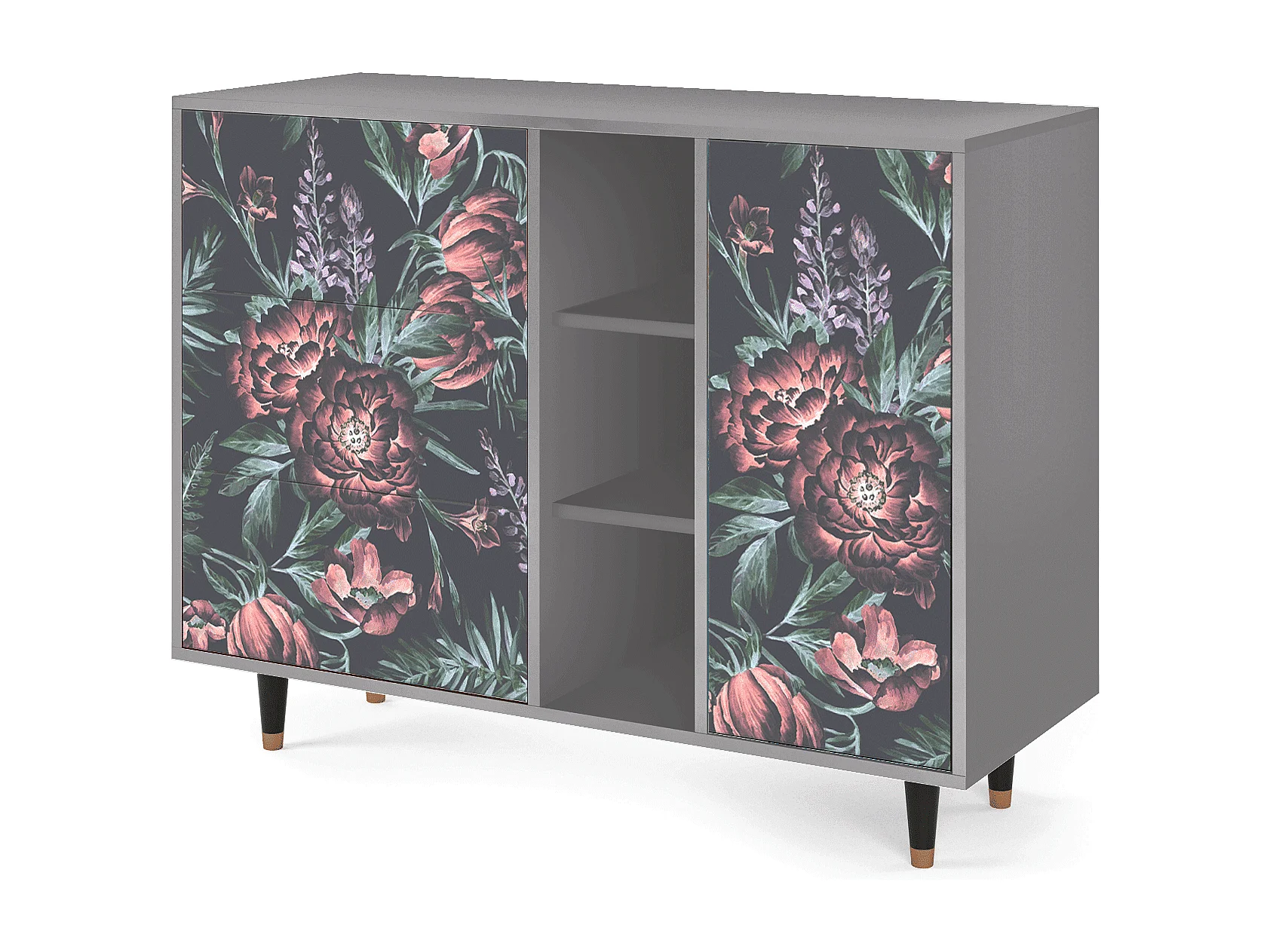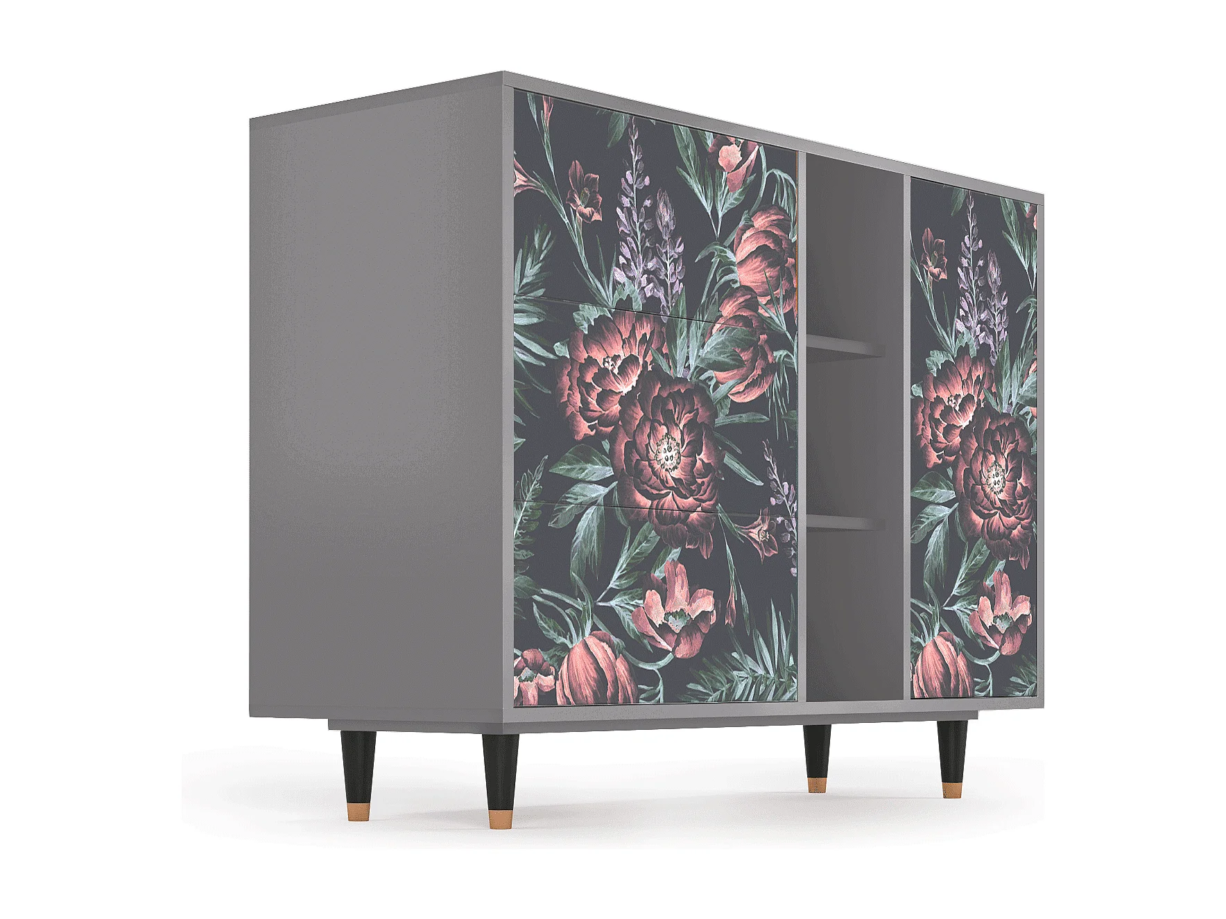 Kredens - 125x98x48 cm - BS2 - Dark Peonies, Szary