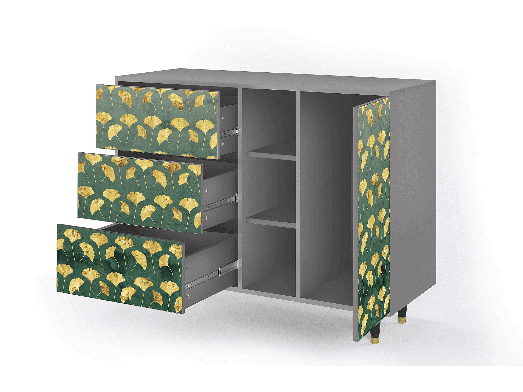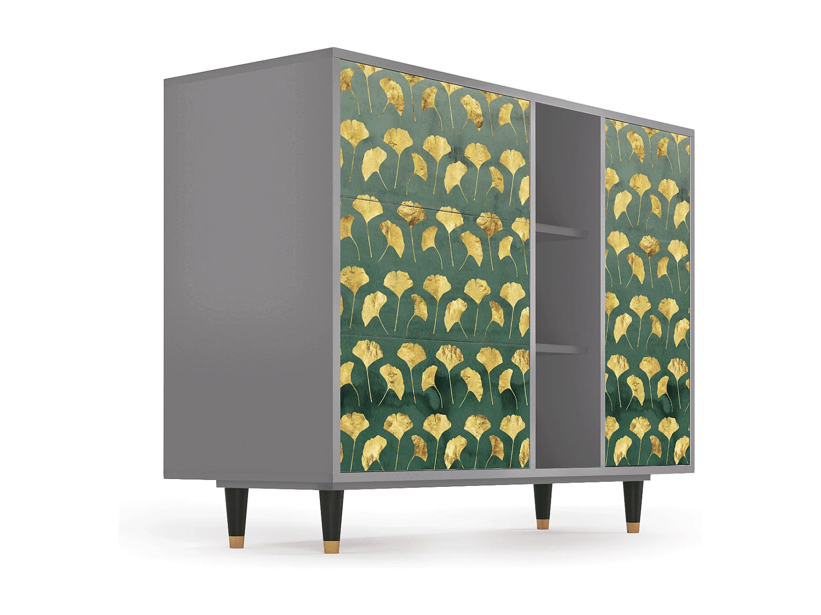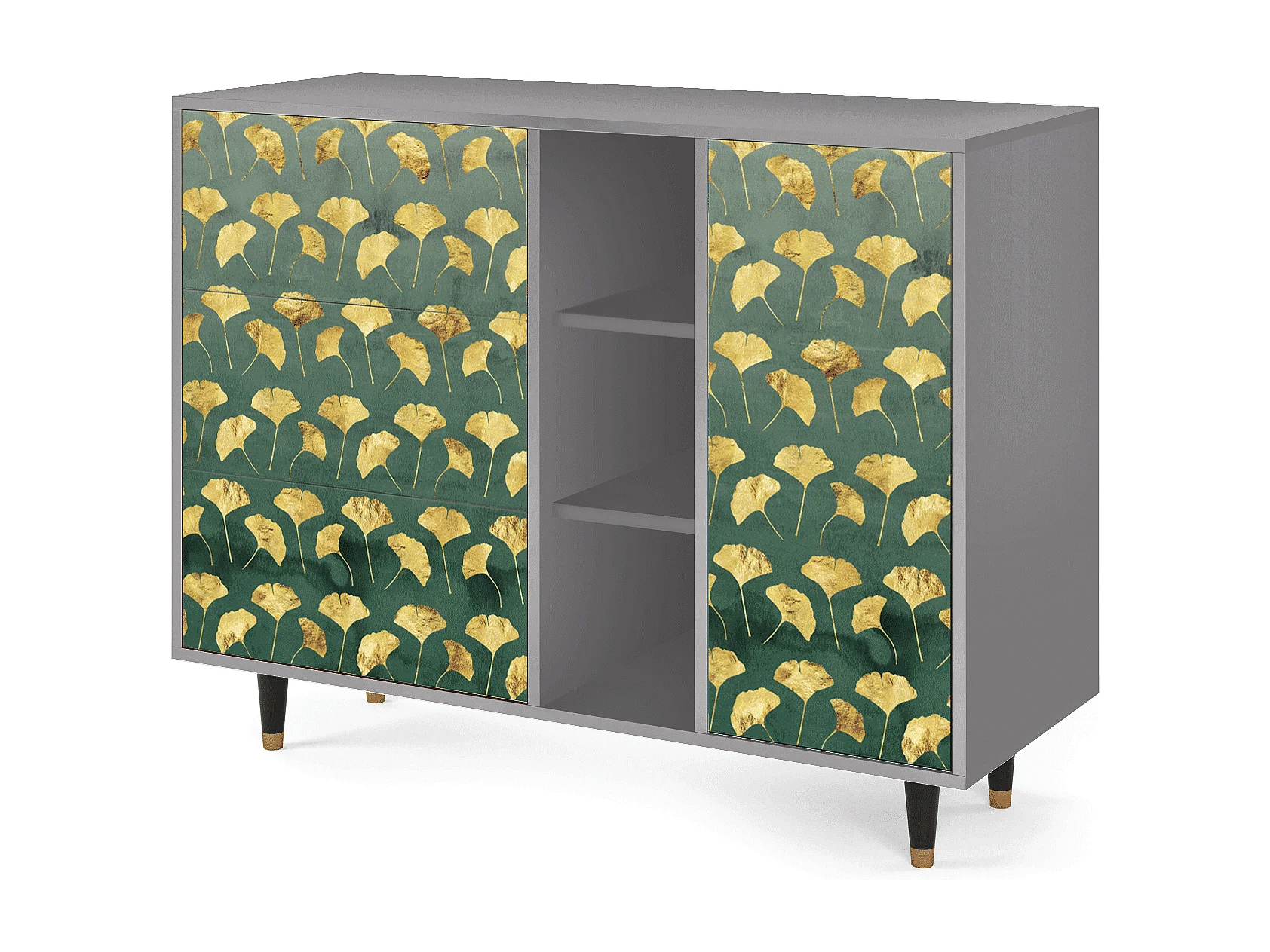Kredens - 125x98x48 cm - BS2 - Gingko leaves, Szary