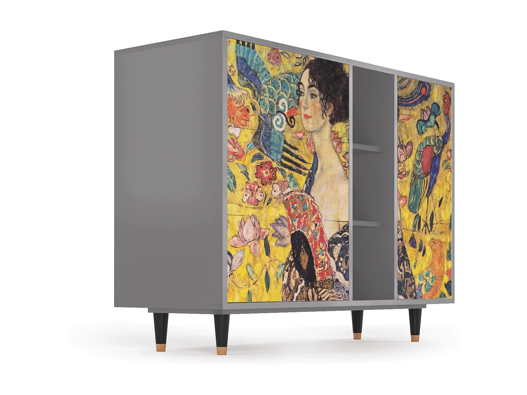 Kredens - 125x98x48 cm - BS2 - Lady with Fan by Klimt, Szary