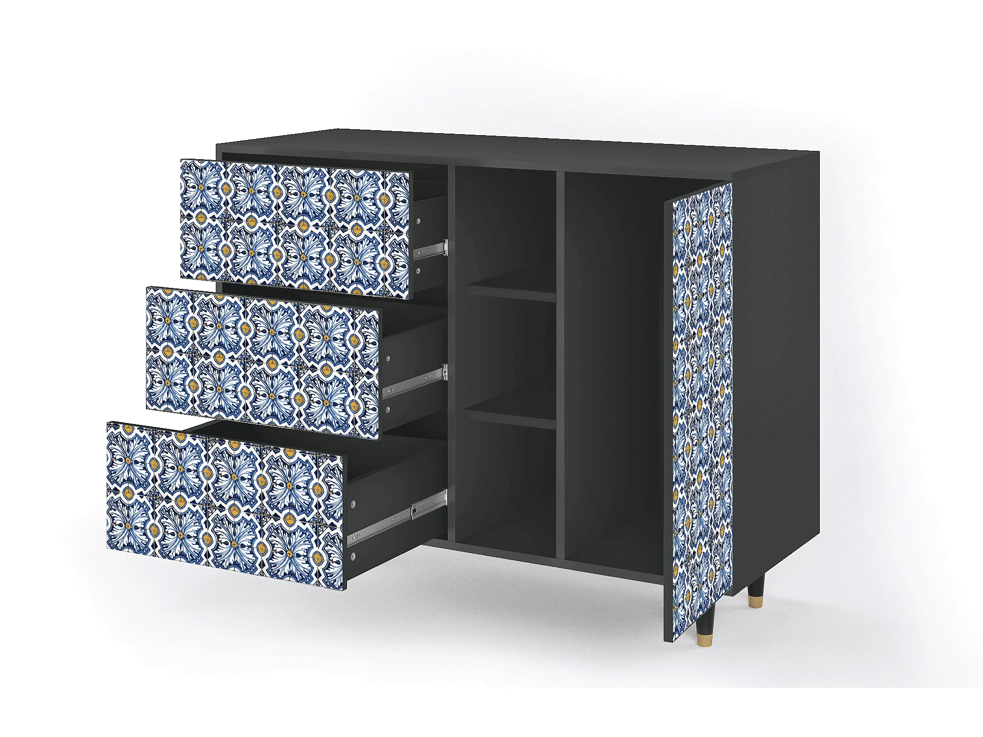 Kredens - 125x98x48 cm - BS2 - Lovely Cornflowers, Antracyt
