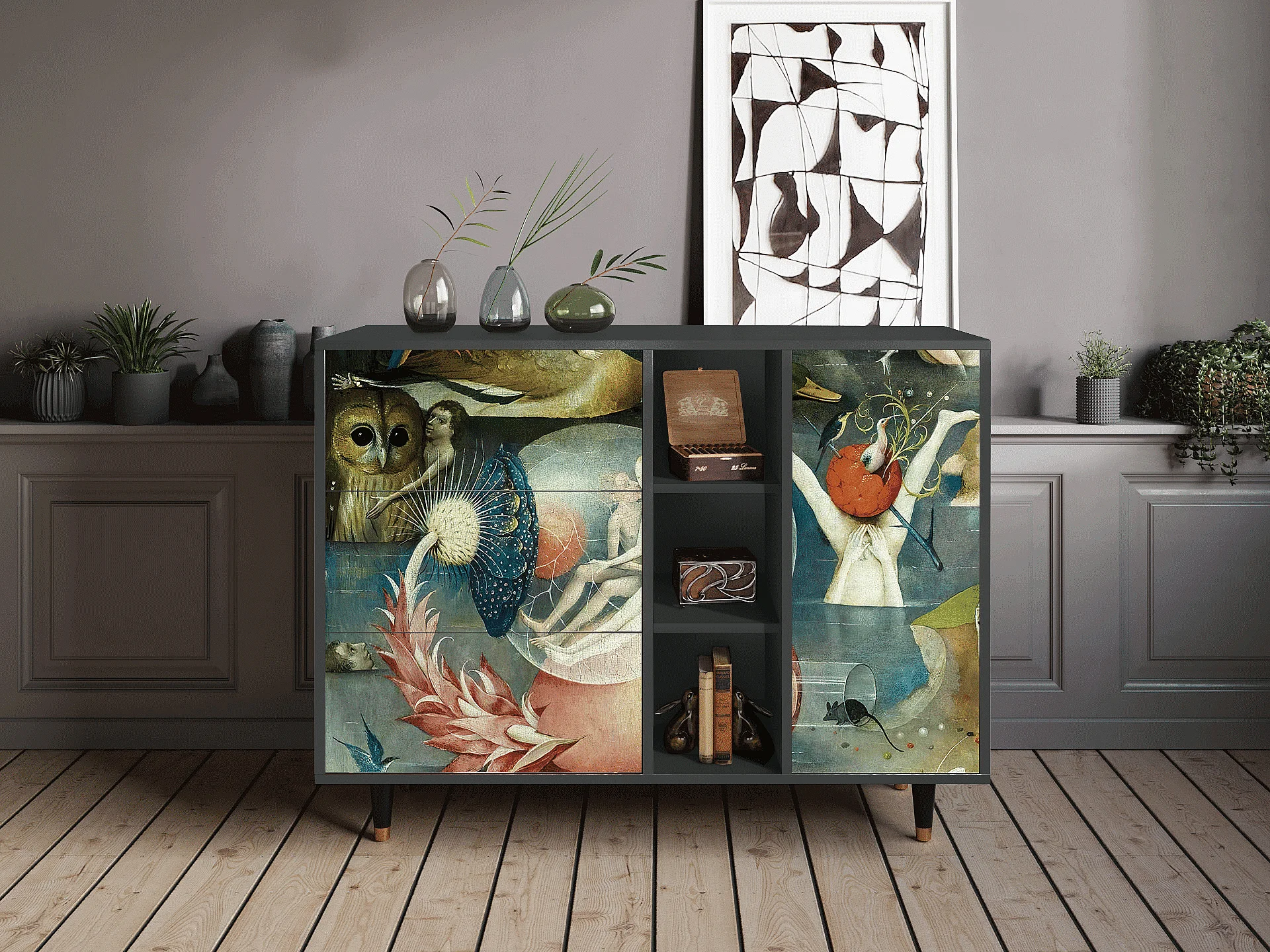 Kredens - 125x98x48 cm - BS2 - Geometric Madness, Antracyt