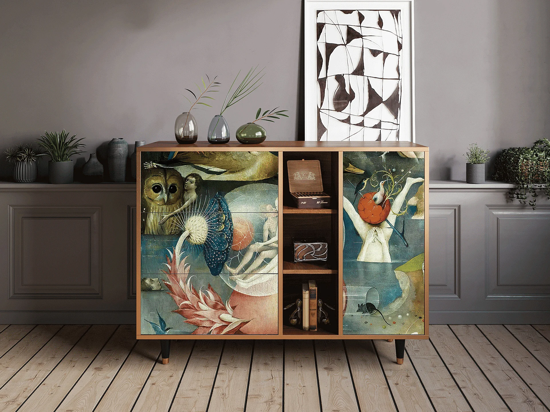 Kredens - 125x98x48 cm - BS2 - Geometric Madness, Orzech