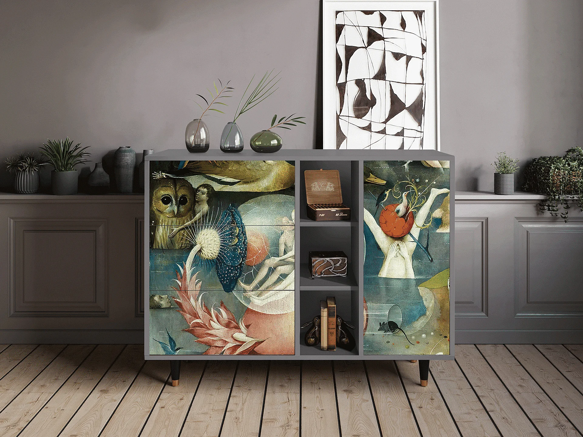 Kredens - 125x98x48 cm - BS2 - Geometric Madness, Antracyt
