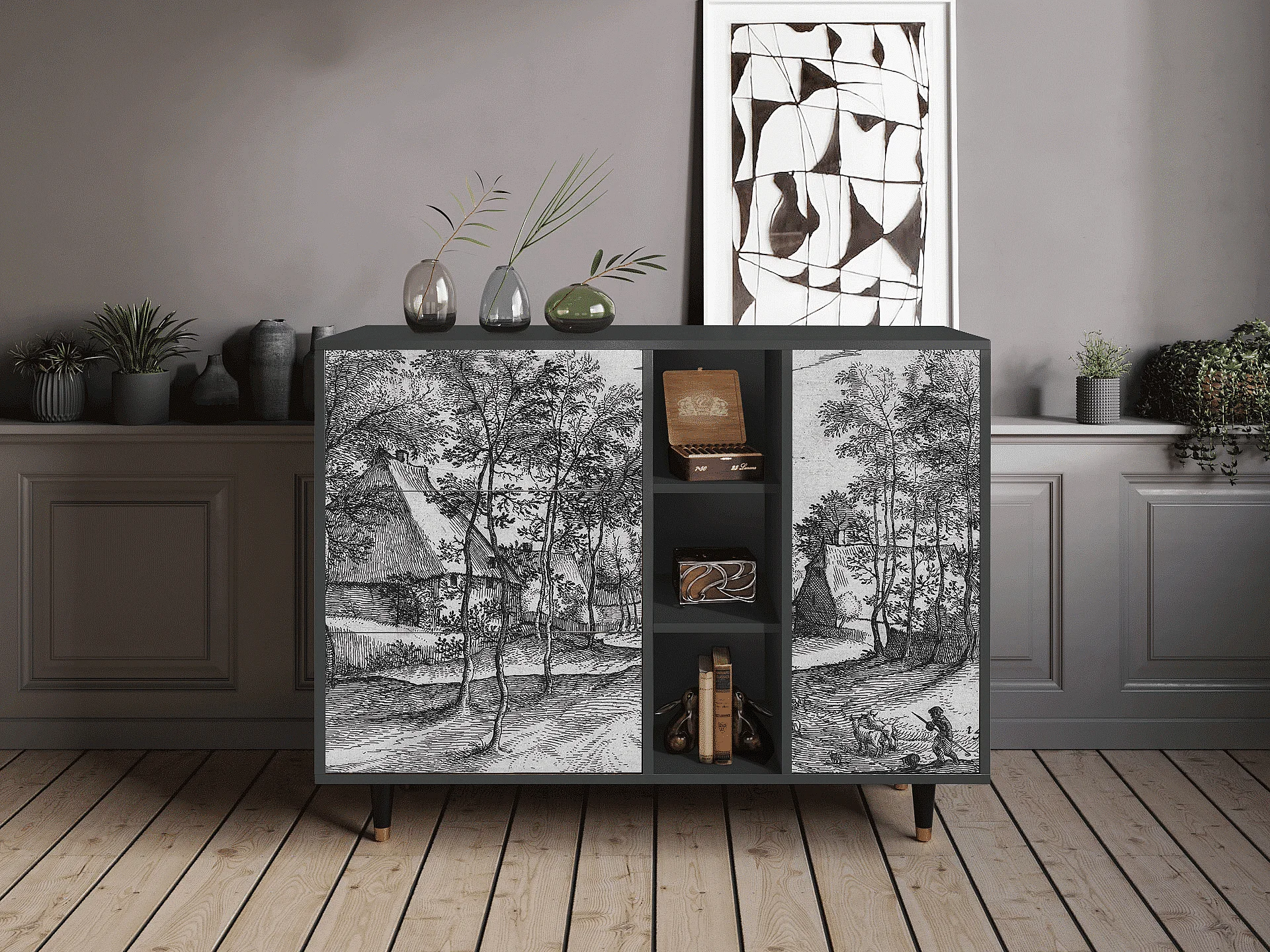 Kredens - 125x98x48 cm - BS2 - Winter Landscape, Antracyt