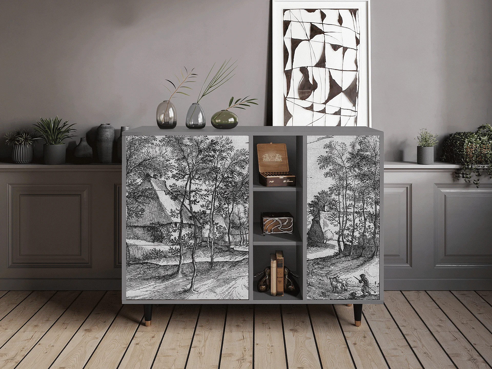 Kredens - 125x98x48 cm - BS2 - Winter Landscape, Antracyt