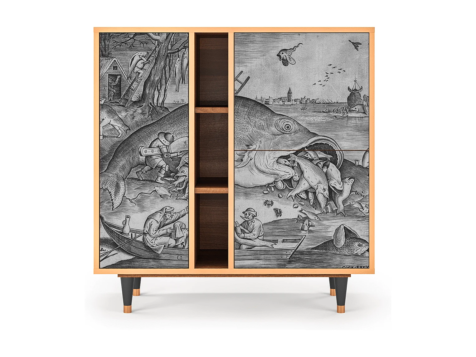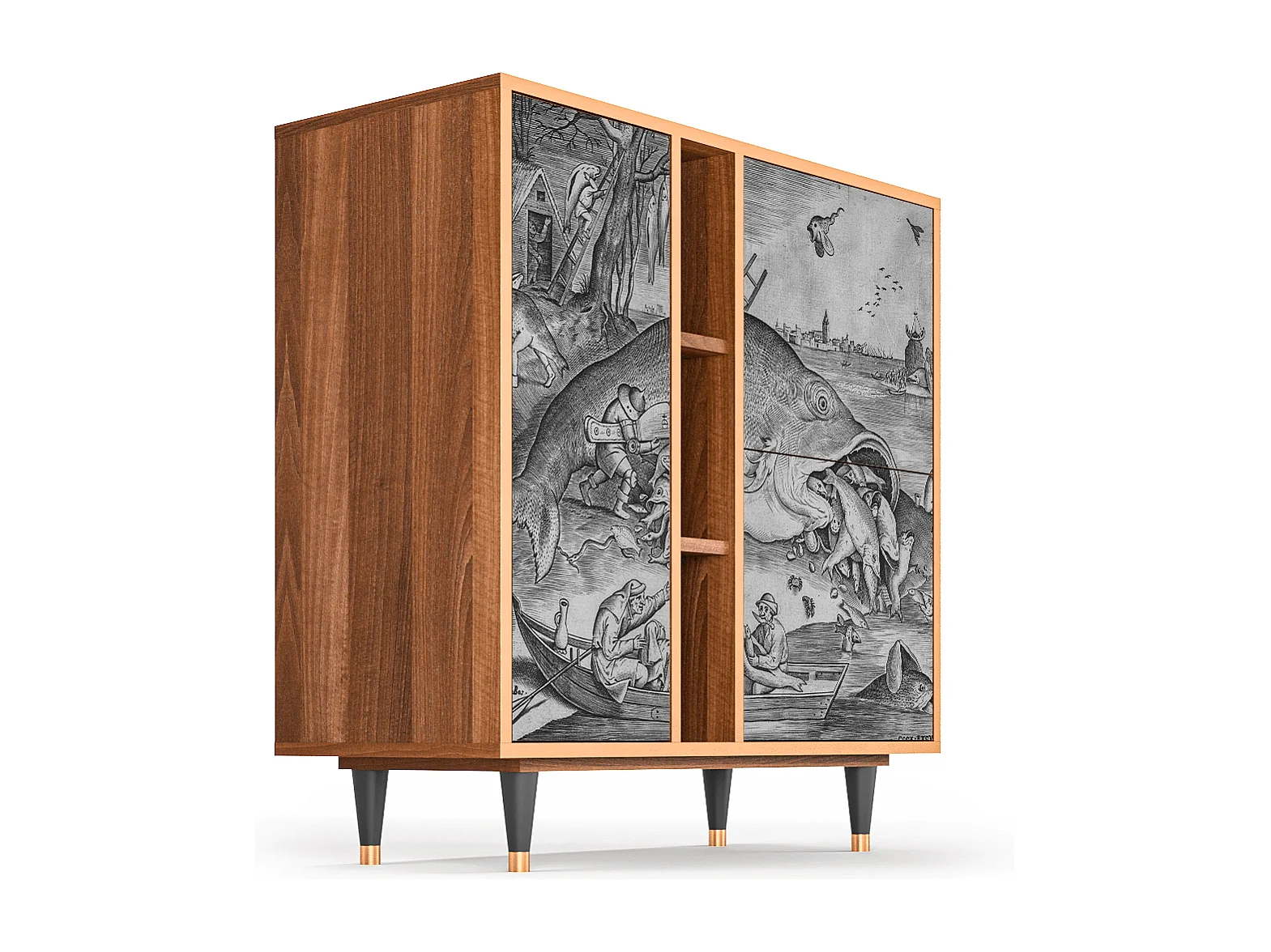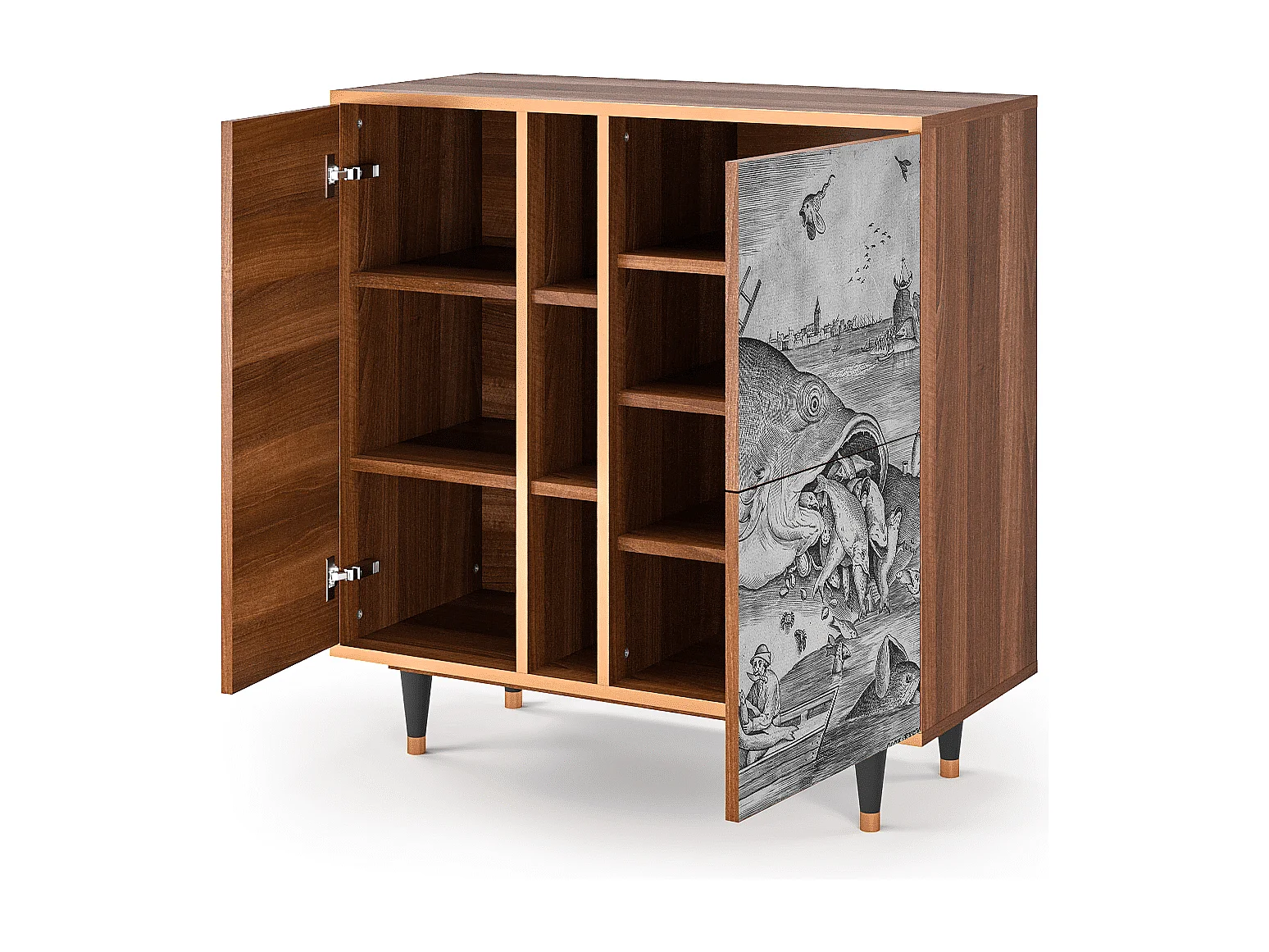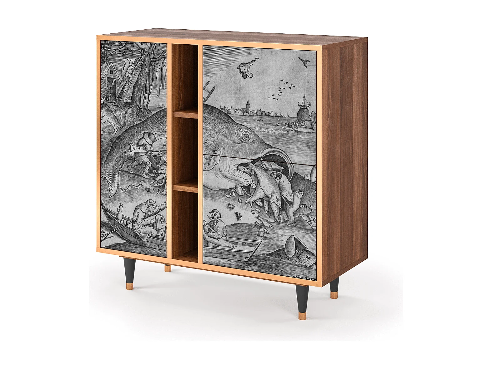 Kredens - 94х96х41 cm - BS5 - Big Fish Eat Little, Orzech