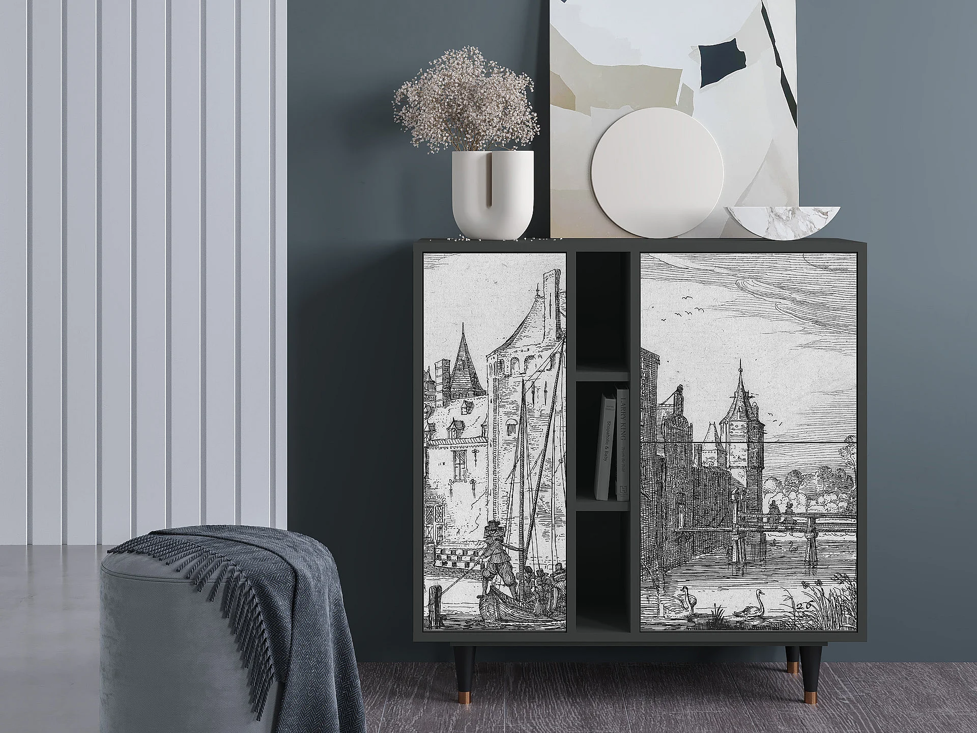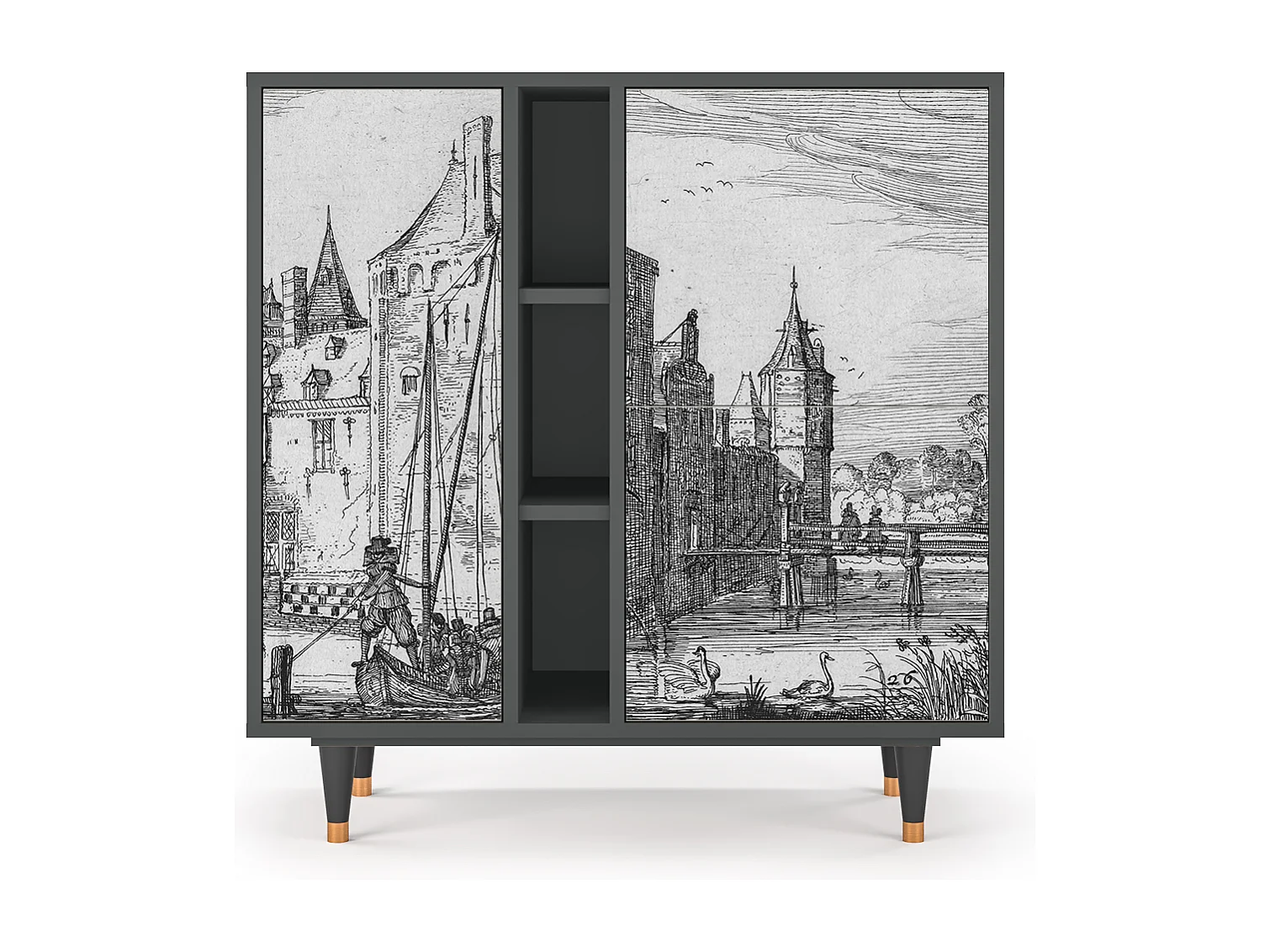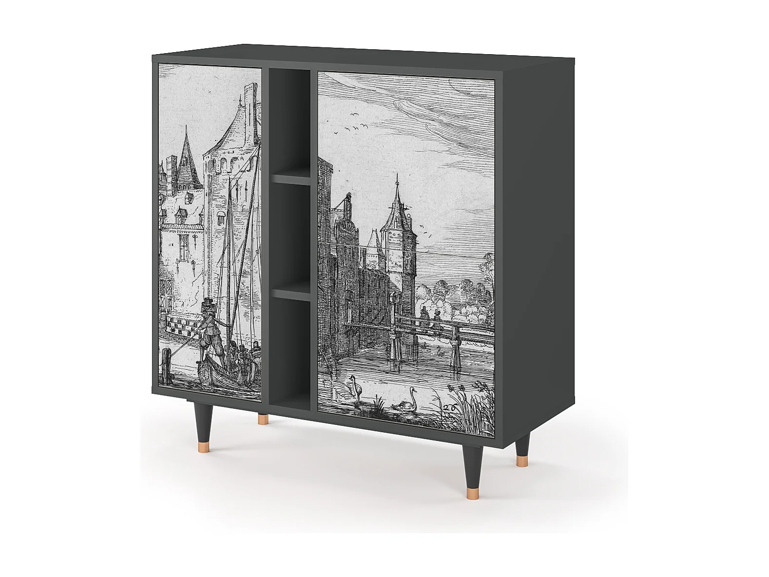 Kredens - 94х96х41 cm - BS5 - Castle with Bridge, Antracyt