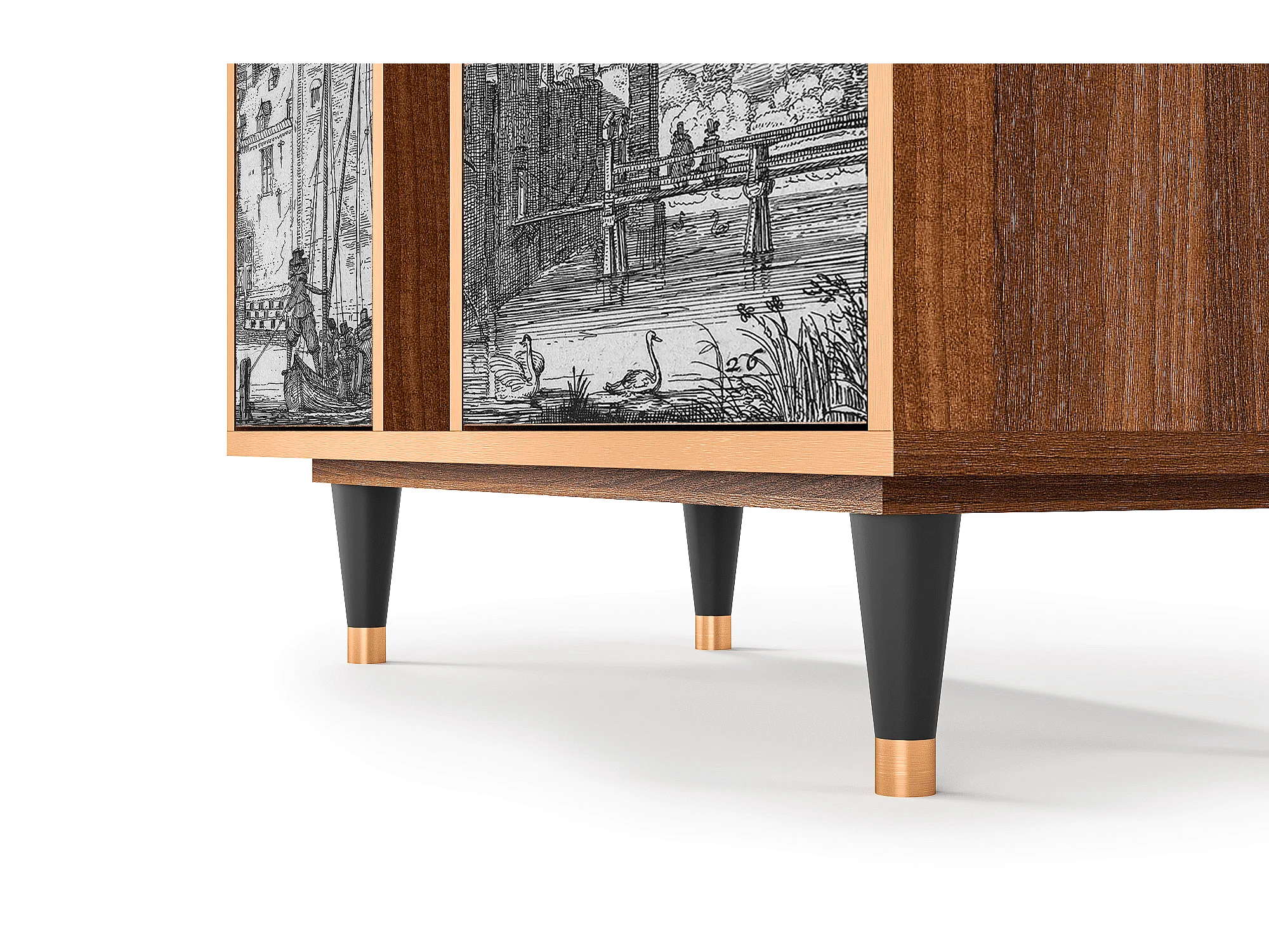 Kredens - 94х96х41 cm - BS5 - Castle with Bridge, Orzech