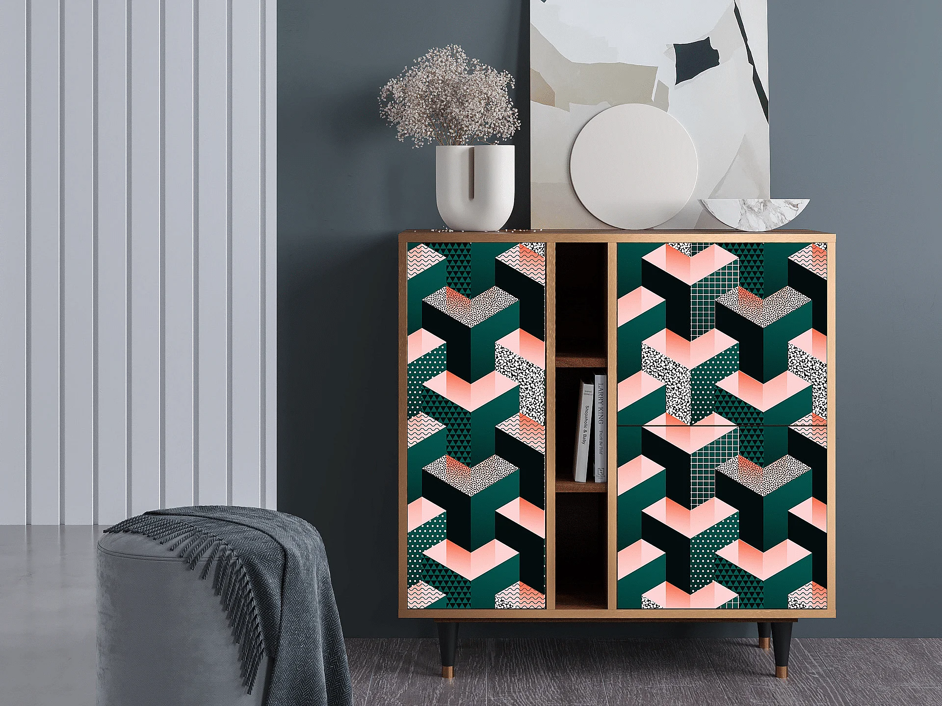 Kredens - 94х96х41 cm - BS5 - Geometric Madness, Orzech