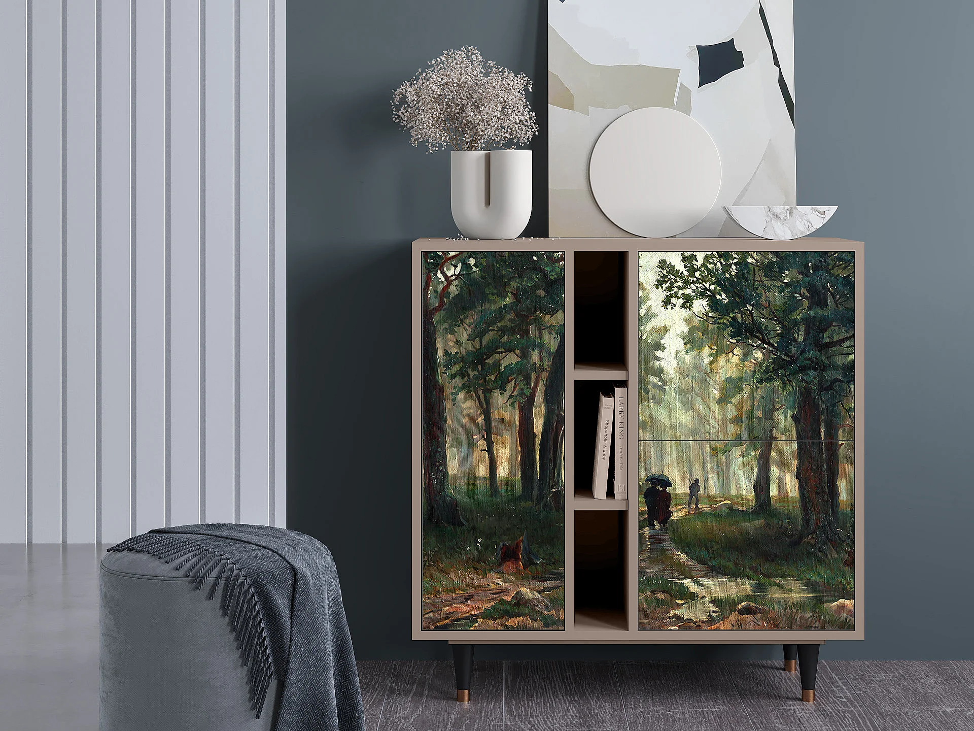 Kredens - 94х96х41 cm - BS5 - Rain in the Oak Forest, Latte