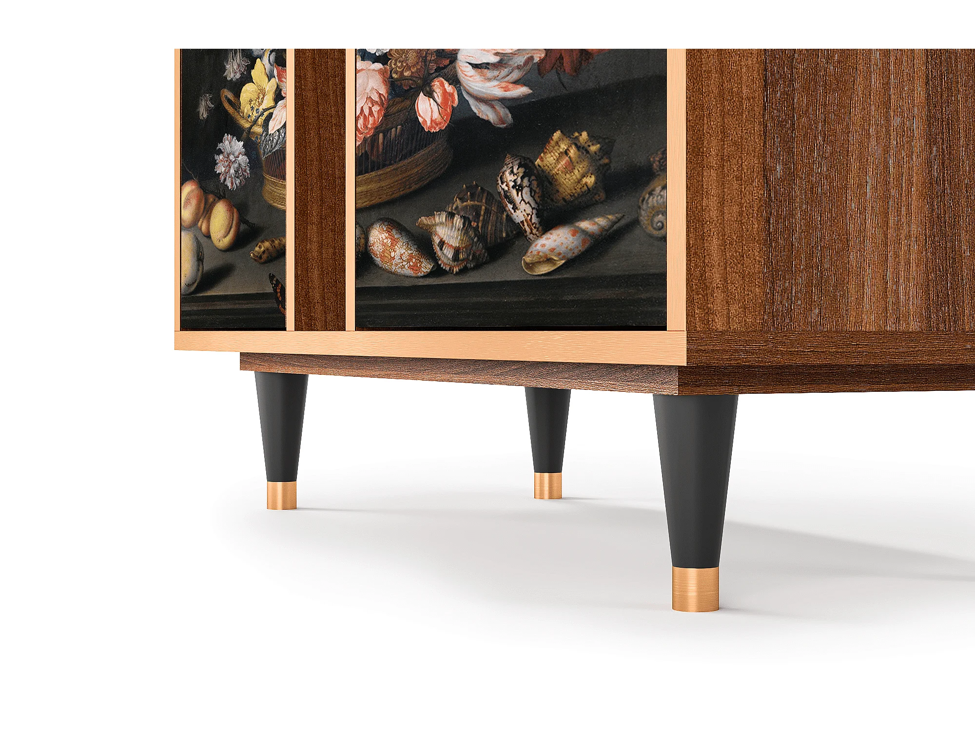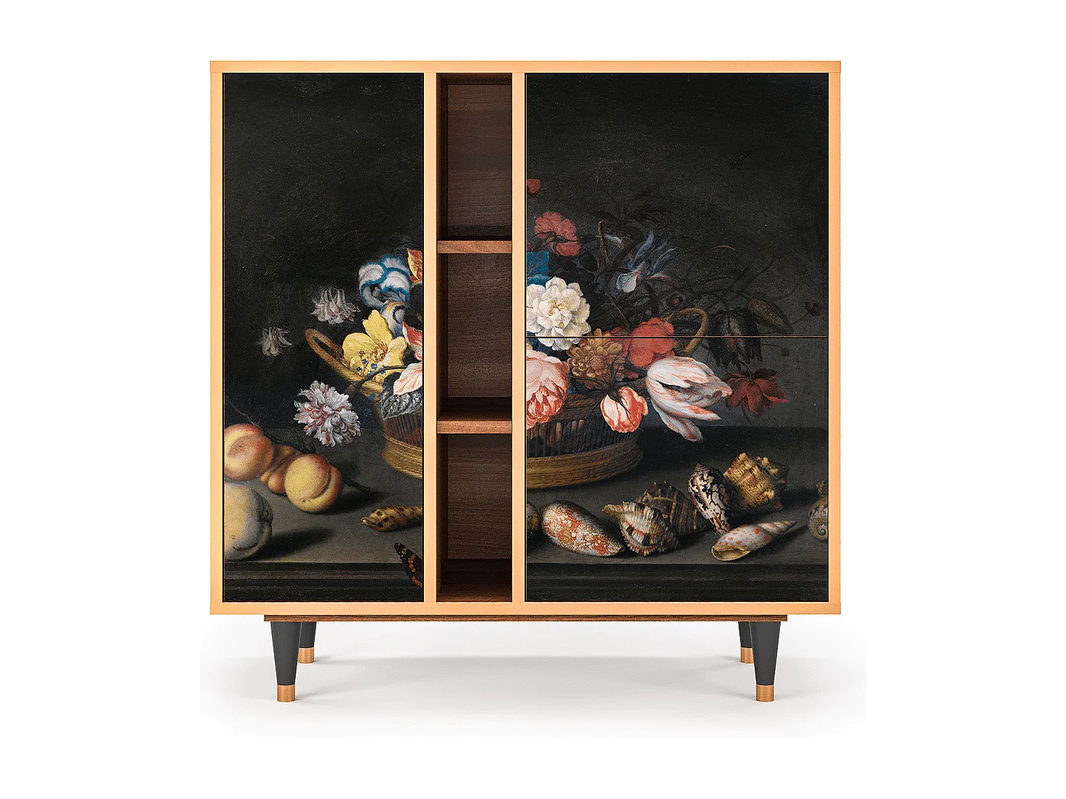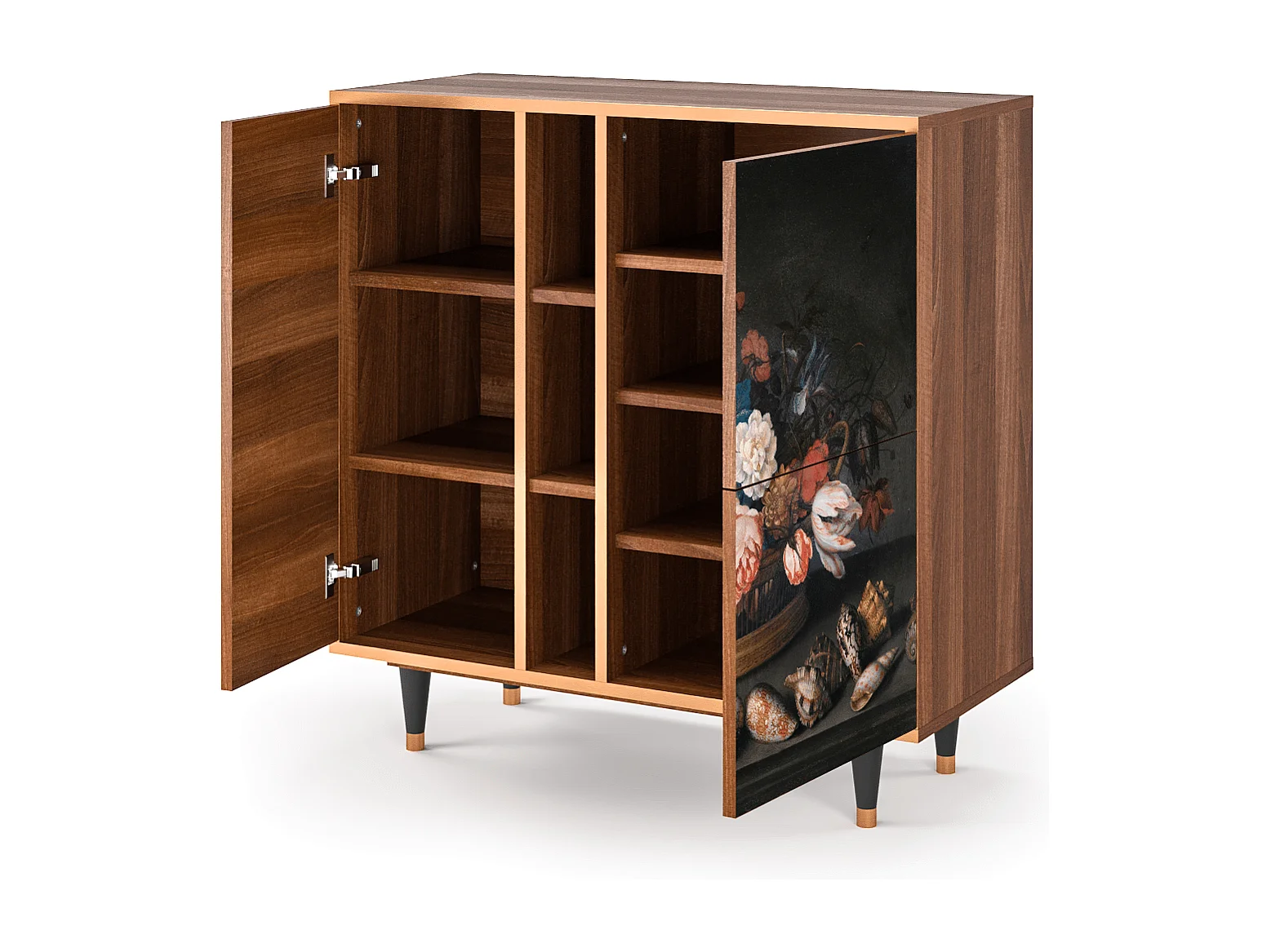 Kredens - 94х96х41 cm - BS5 - Still Life with Flowers, Orzech