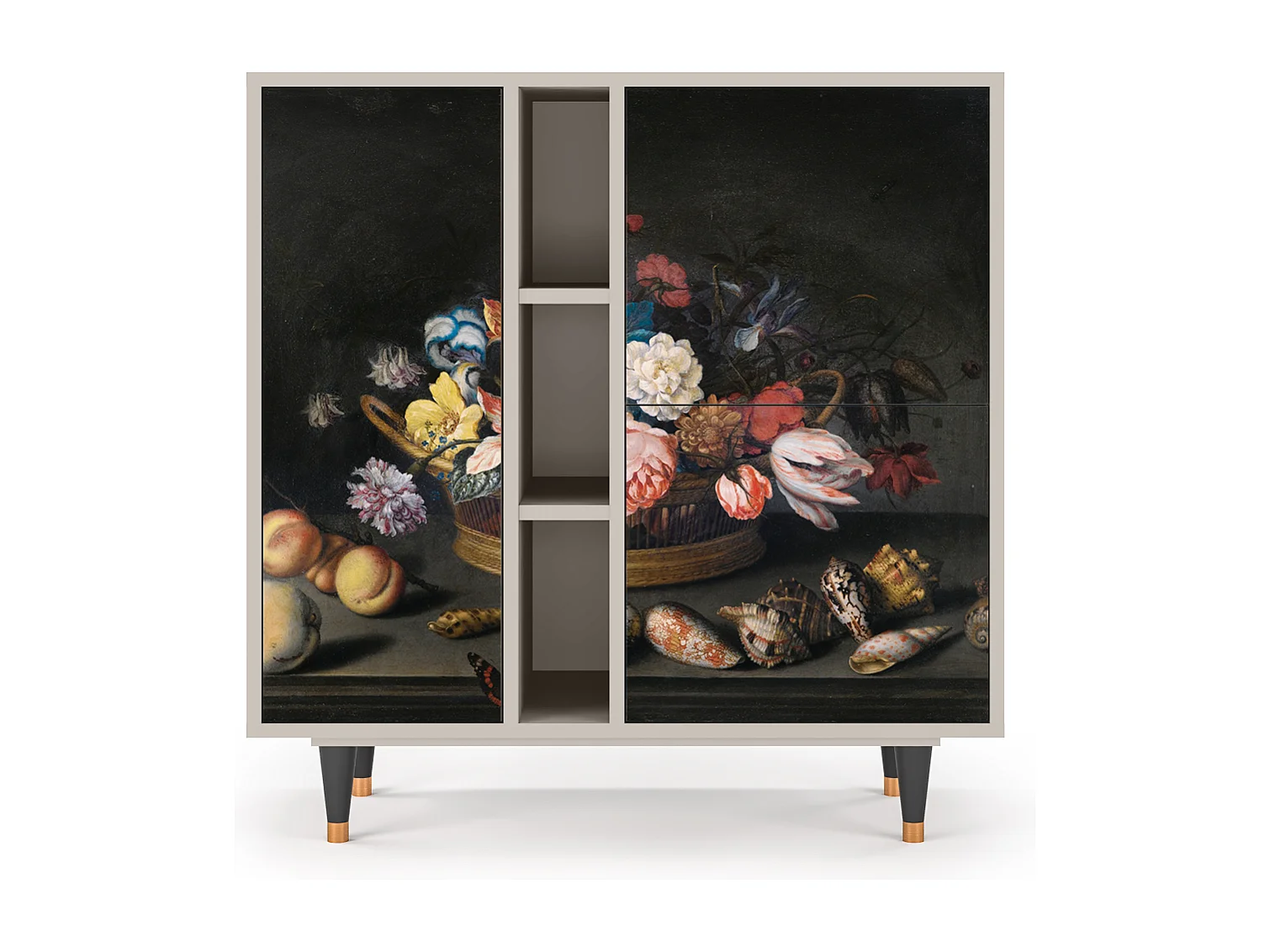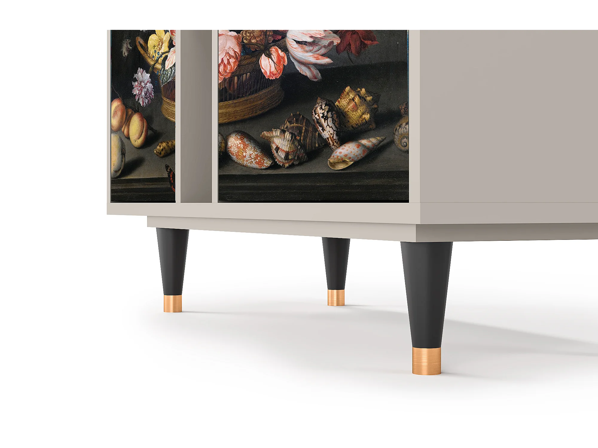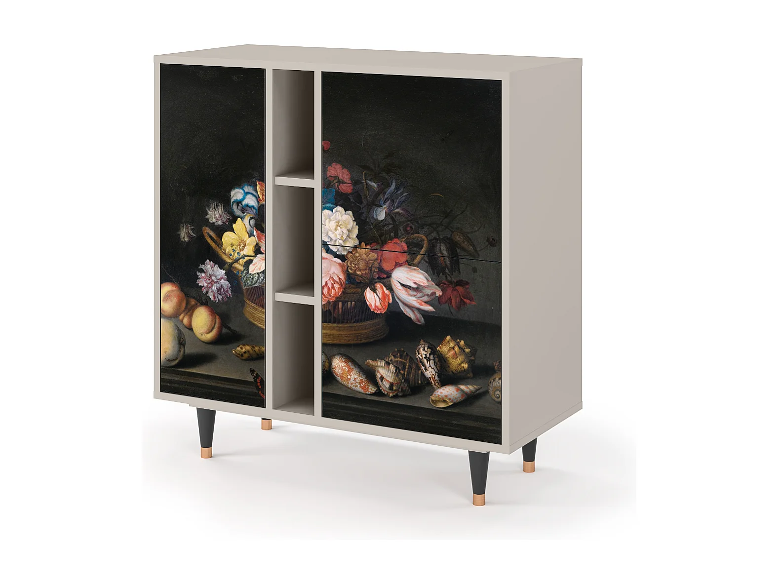 Kredens - 94х96х41 cm - BS5 - Still Life with Flowers, Piaskowy