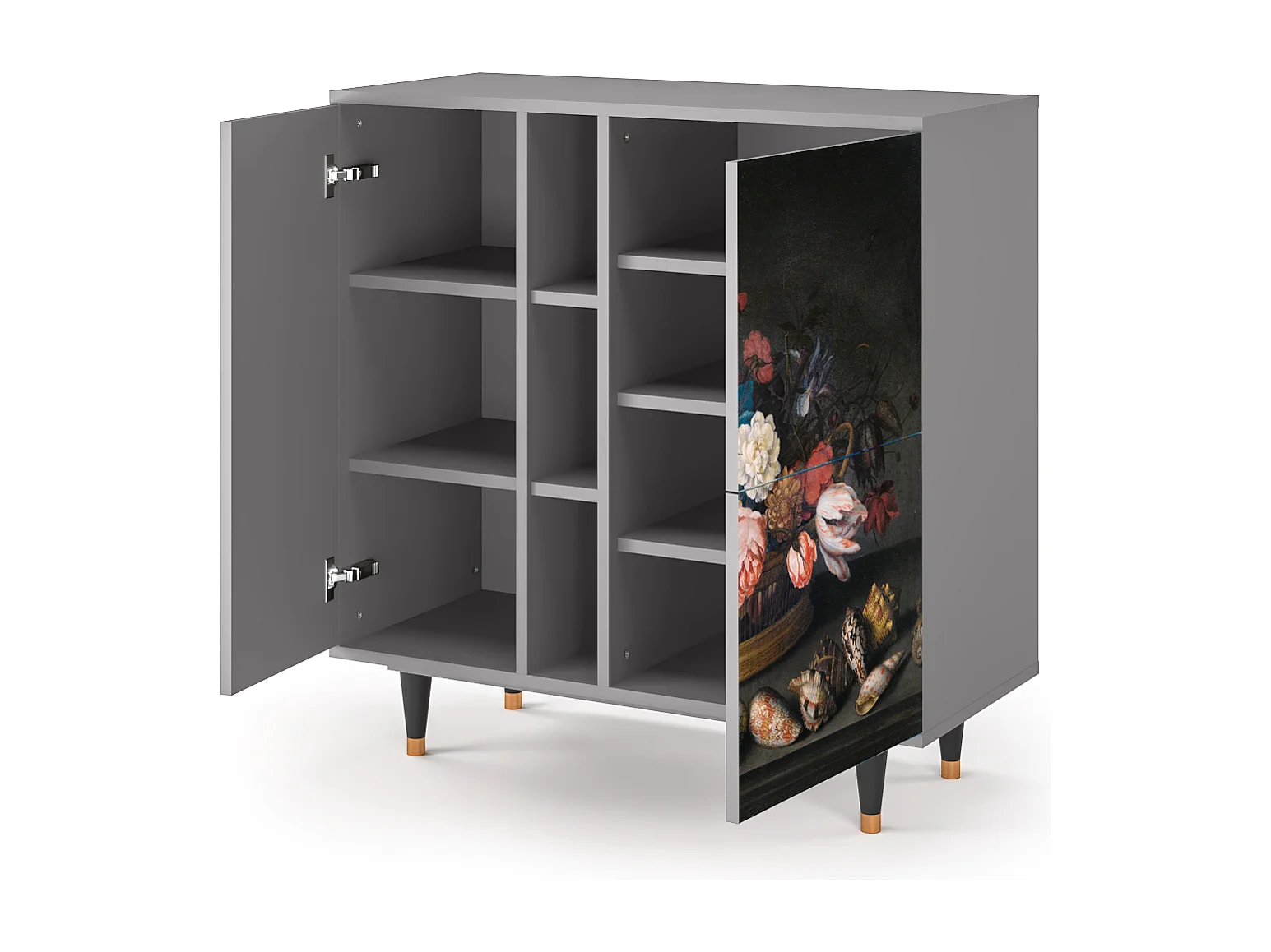 Kredens - 94х96х41 cm - BS5 - Still Life with Flowers, Szary