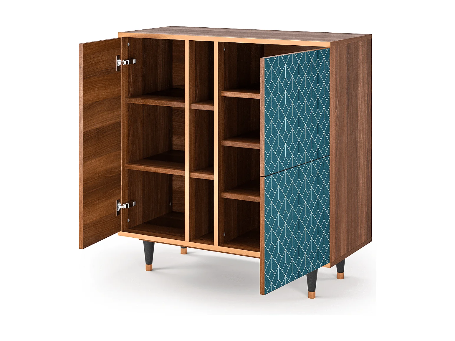 Kredens - 94х96х41 cm - BS5 - Turquoise Geometry, Orzech