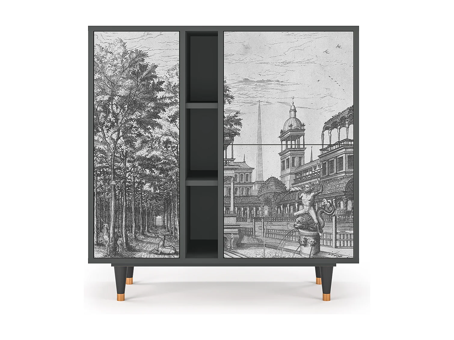 Kredens - 94х96х41 cm - BS5 - View of the Piazza, Antracyt
