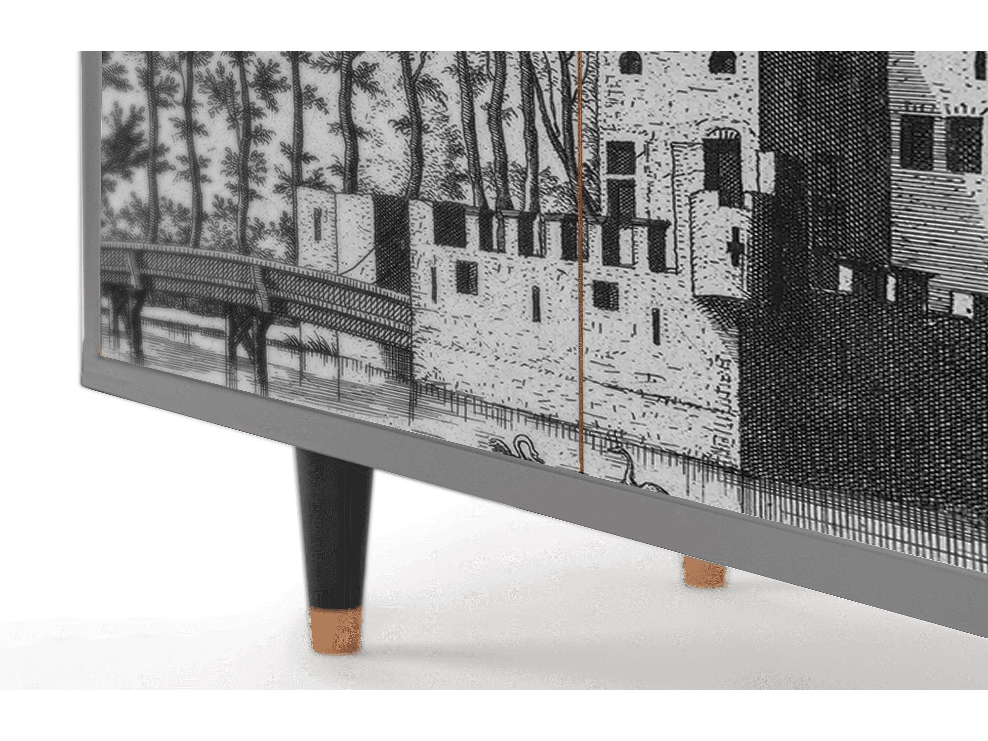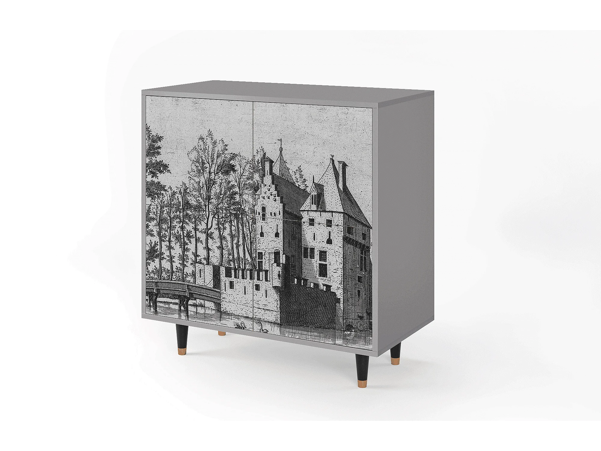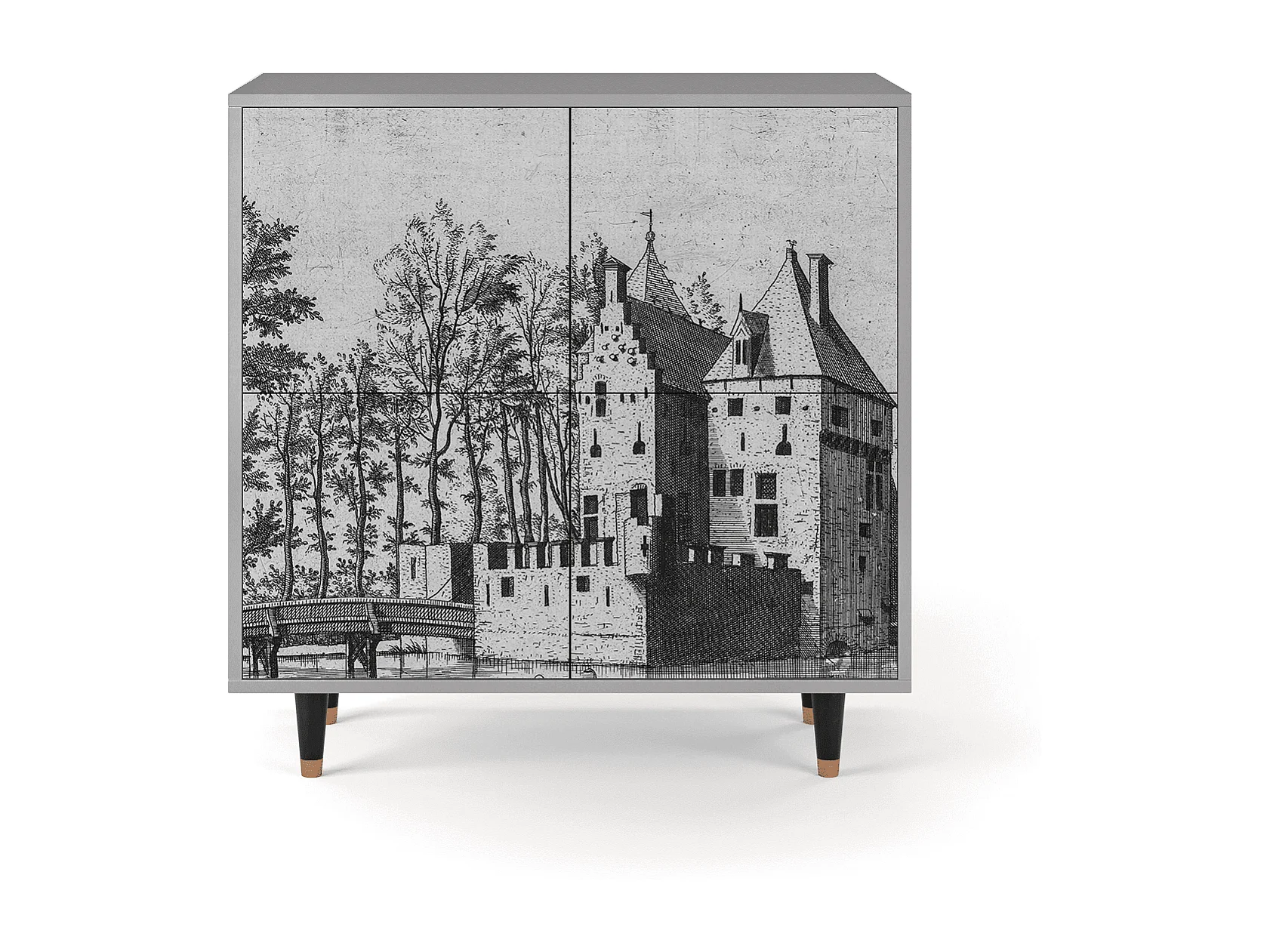 Kredens - 94x96x48 cm - BS3 - Castle with Bridge, Szary