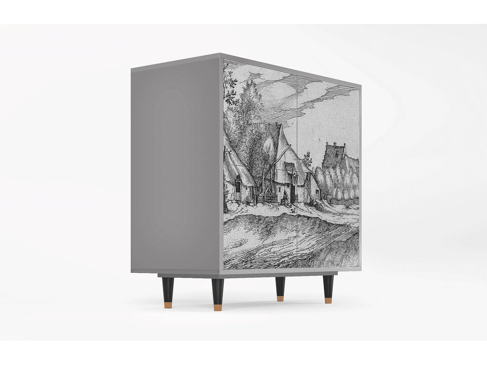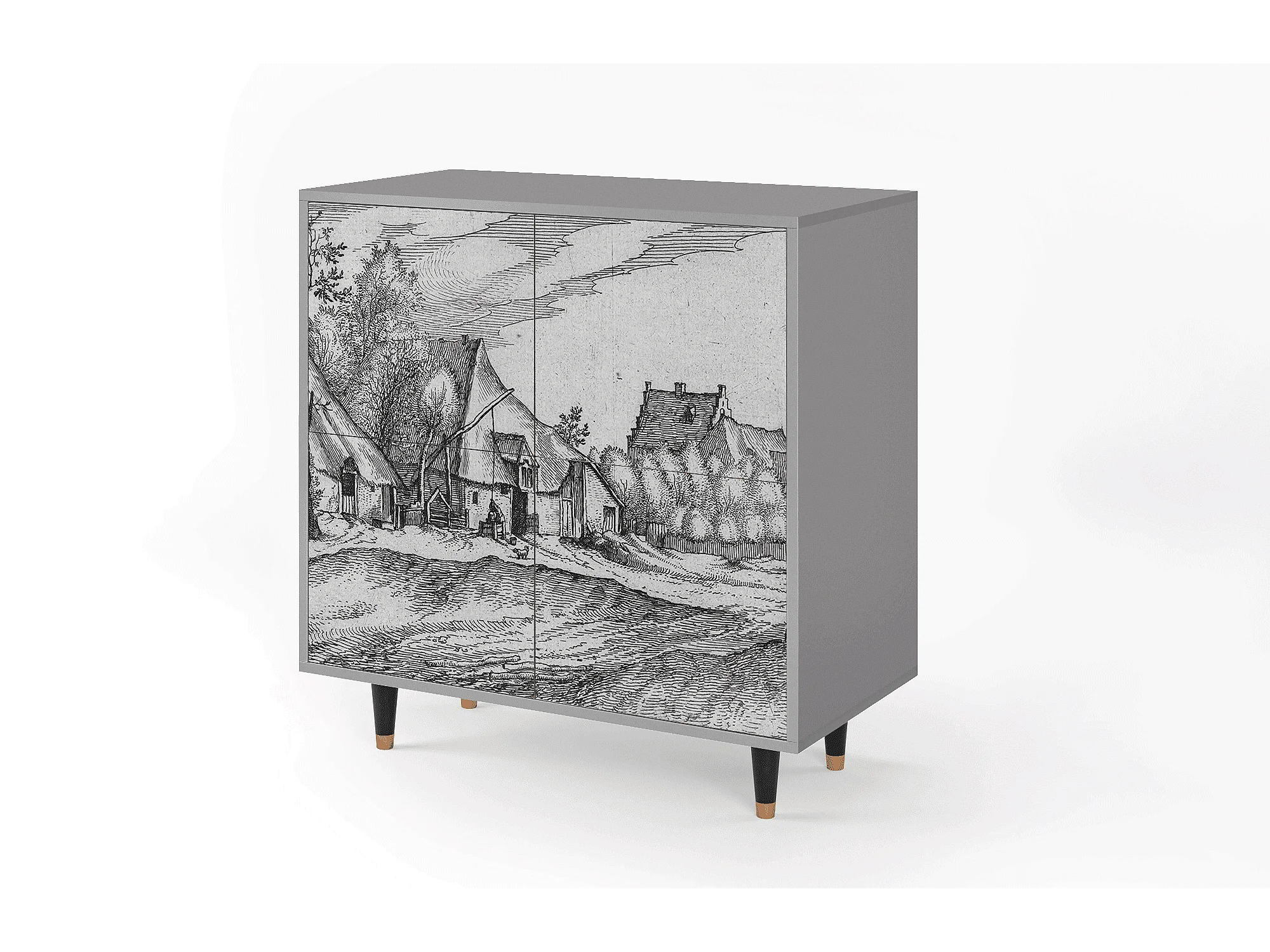 Kredens - 94x96x48 cm - BS3 - Farms in a Village, Szary