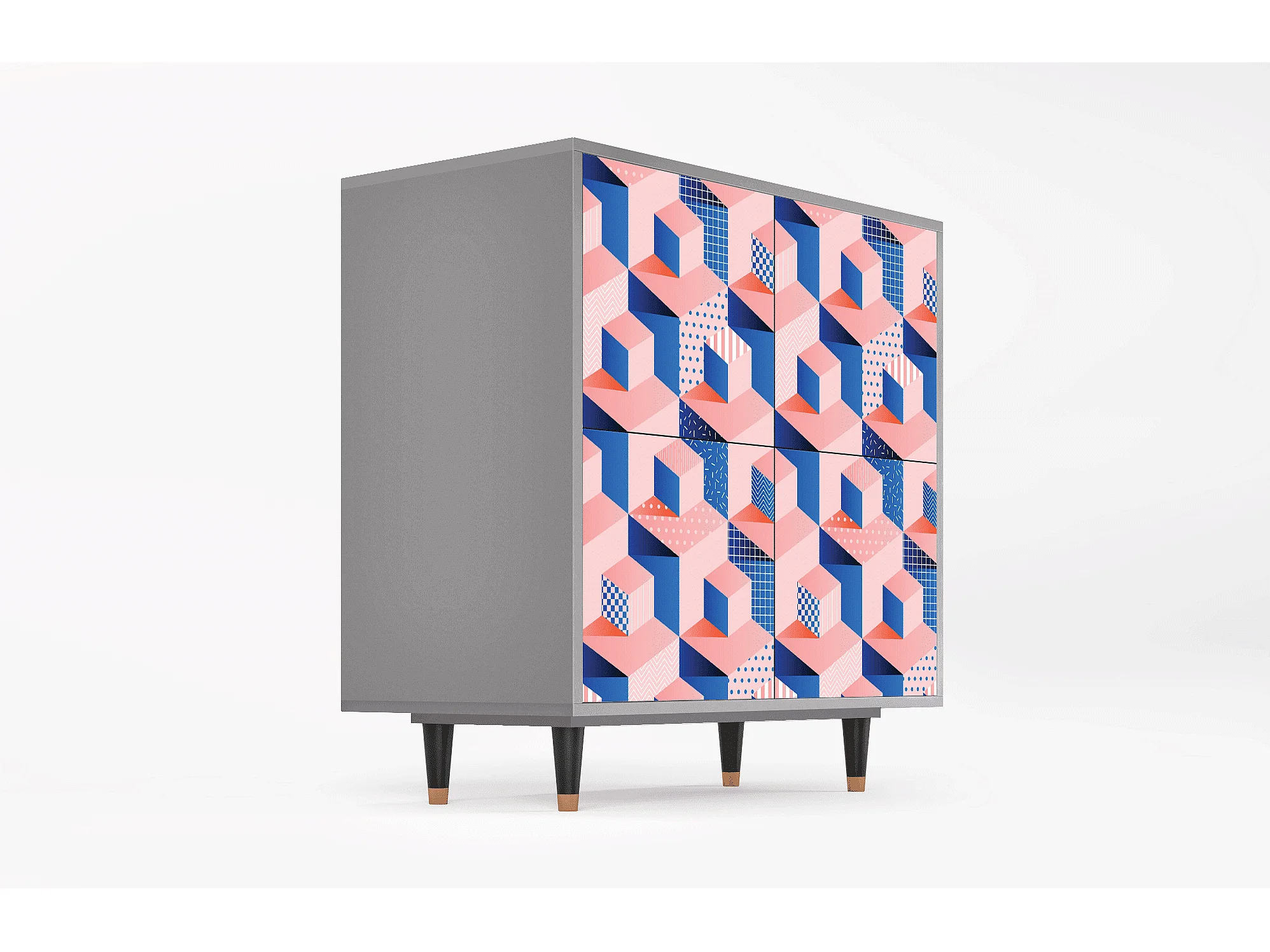 Kredens - 94x96x48 cm - BS3 - Pinky Squares, Szary
