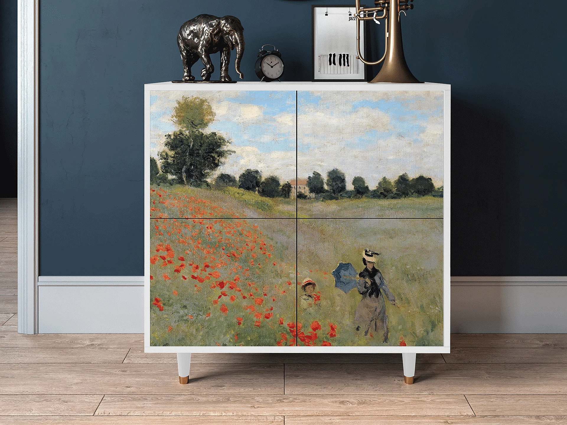Kredens - 94x96x48 cm - BS3 - Poppy field by van Gogh, Biały
